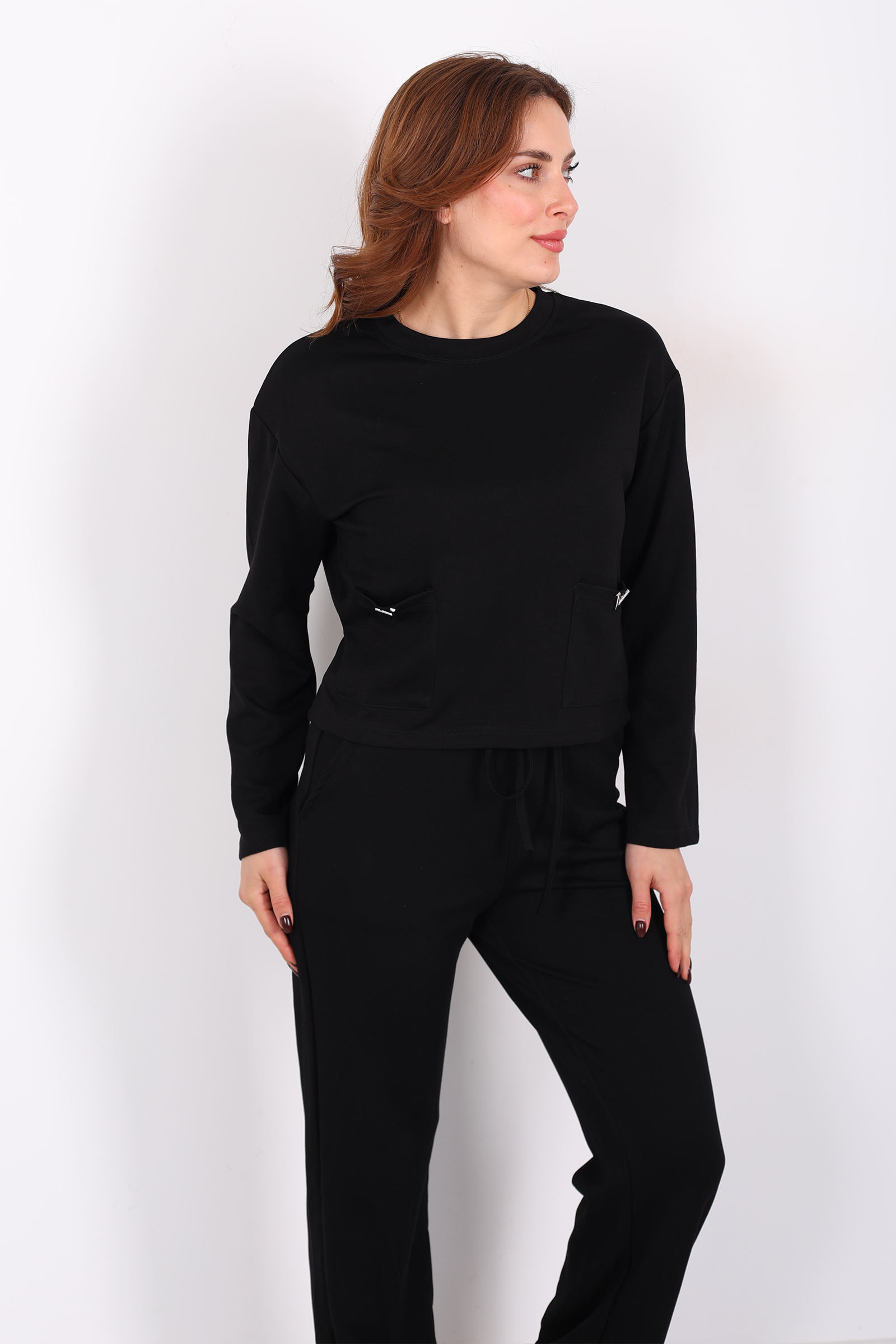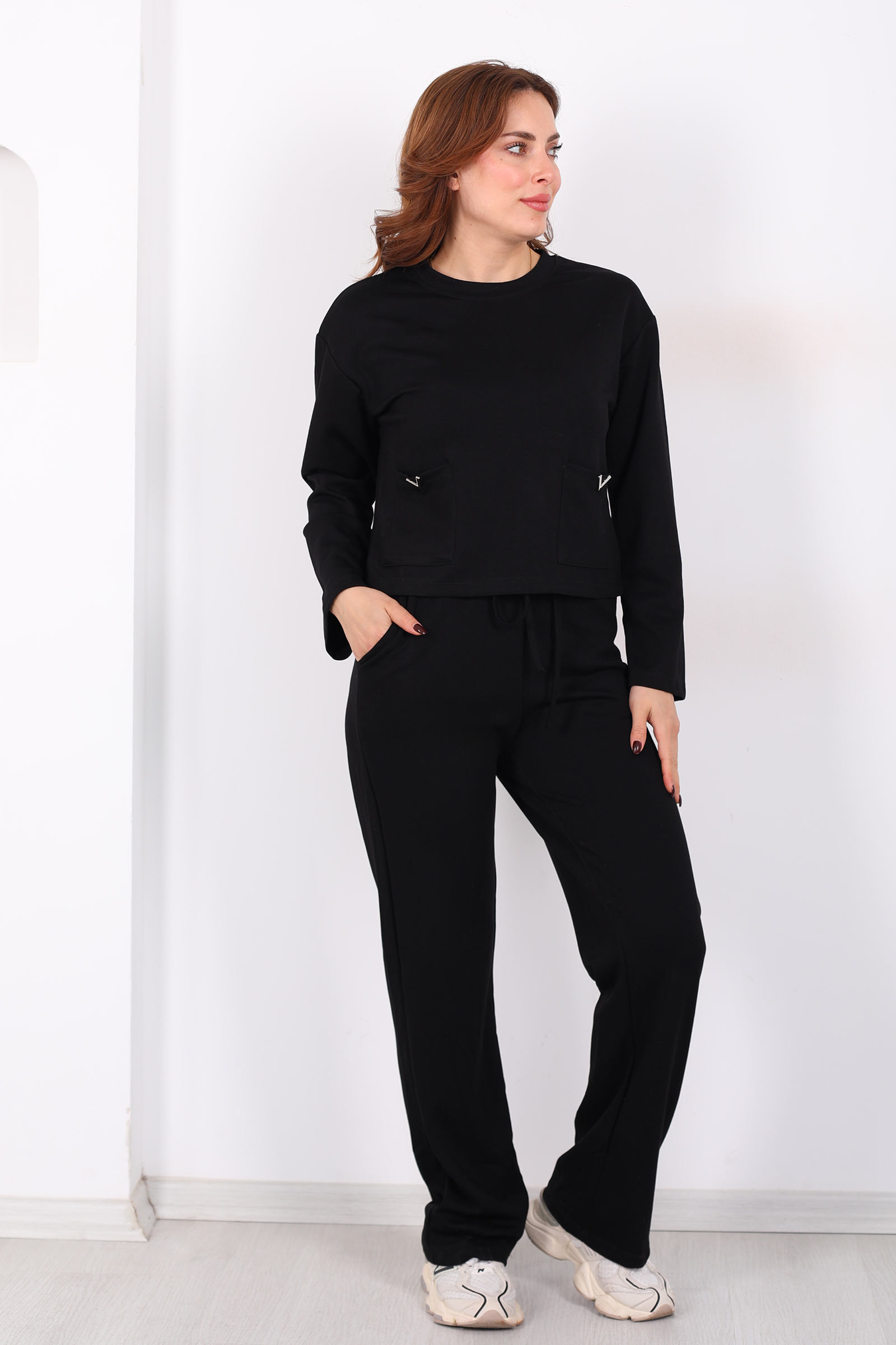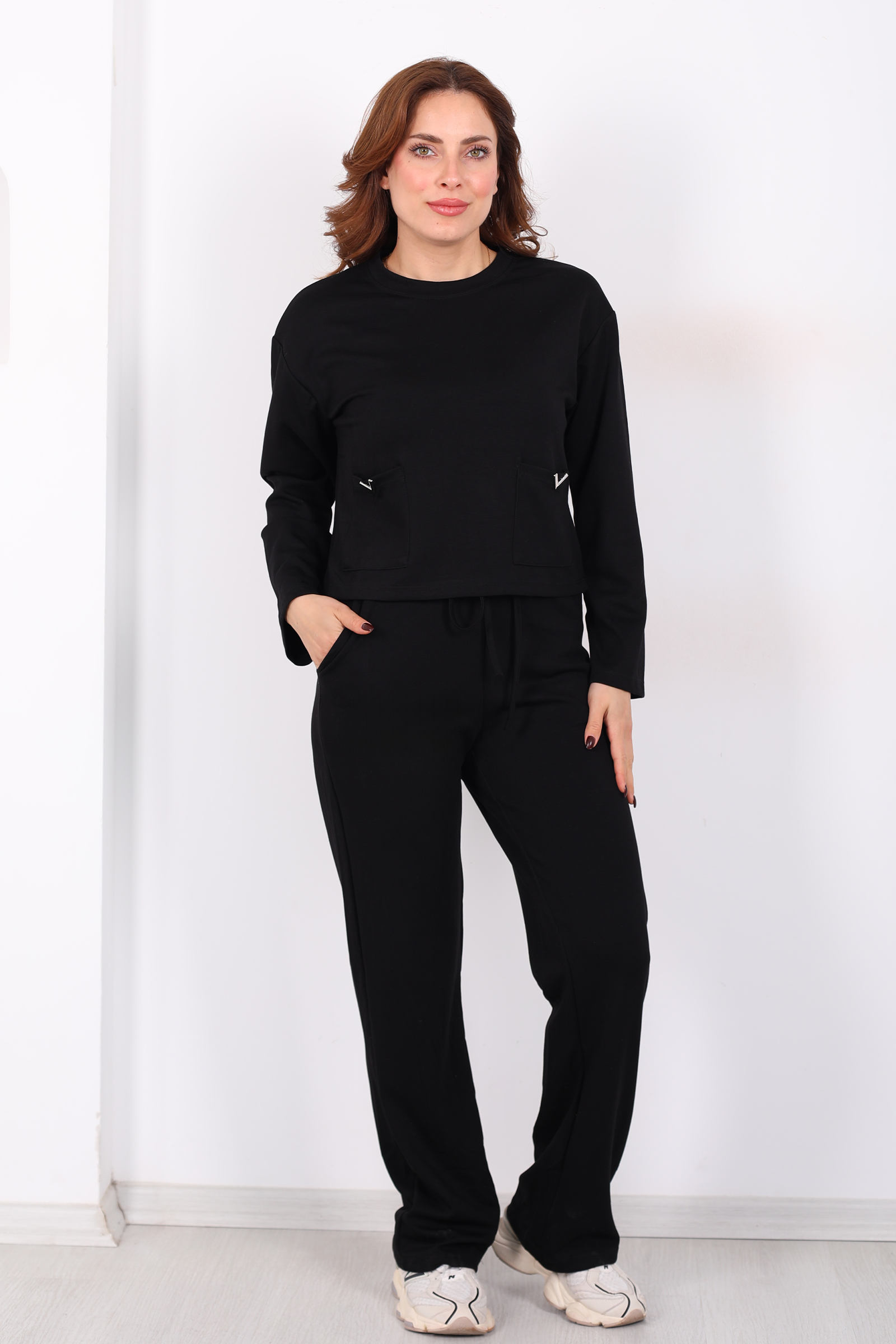 Çift Cepli Aksesuarlı Detaylı Siyah Kadın Pantolon Takım, fonksiyonelliği modern tasarım çizgileriyle buluşturarak günlük stilinizi yükselten göz alıcı bir settir. Çift cepli yapısı, pratik kullanım ve sade bir şıklık sunarken, aksesuar detayları tasarıma özgün bir karakter kazandırır. Siyahın zamansız duruşu, takımın sofistike çizgisiyle birleşerek hem gündelik kombinlerde hem de şehirli stilinizde güçlü bir ifade yaratır.