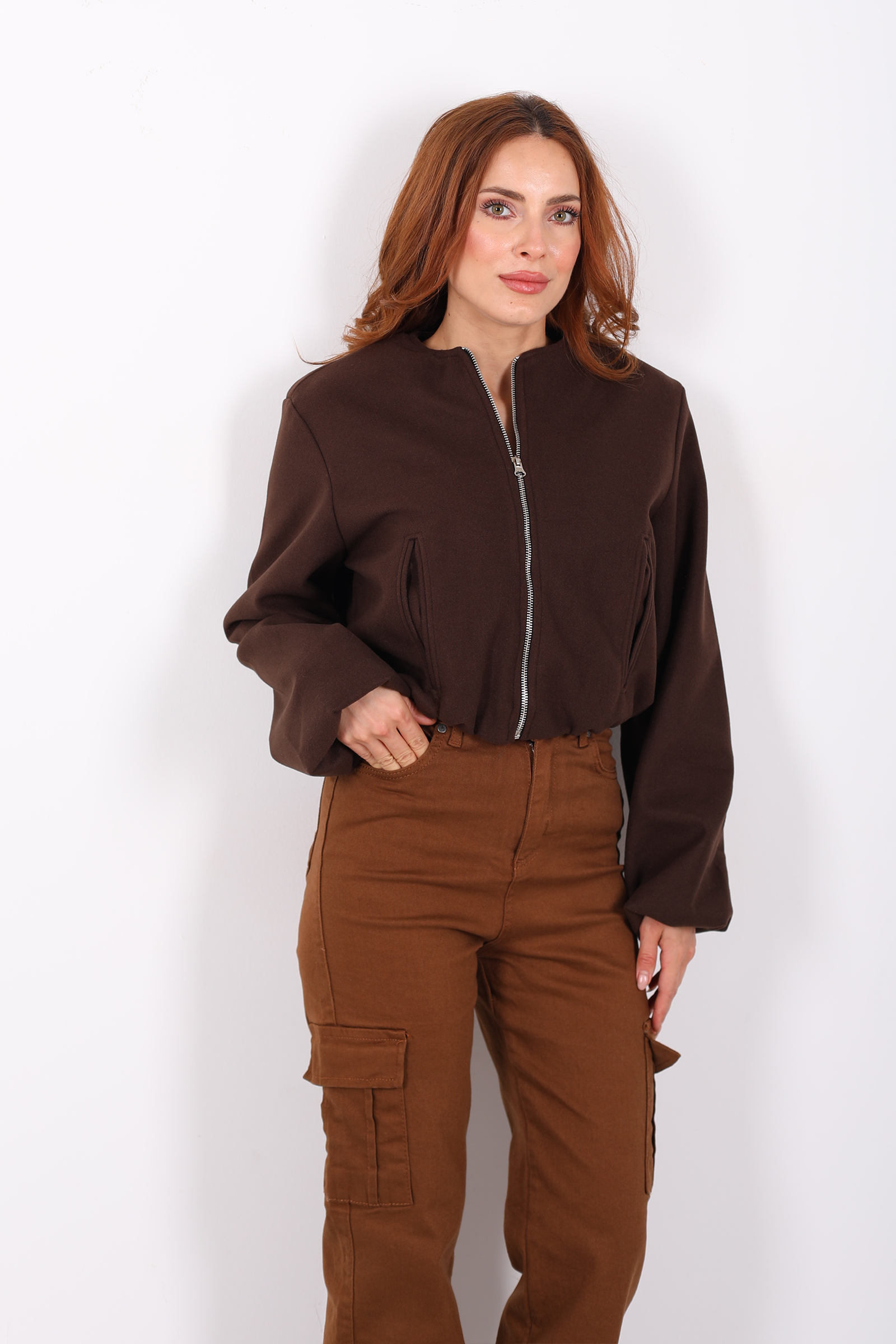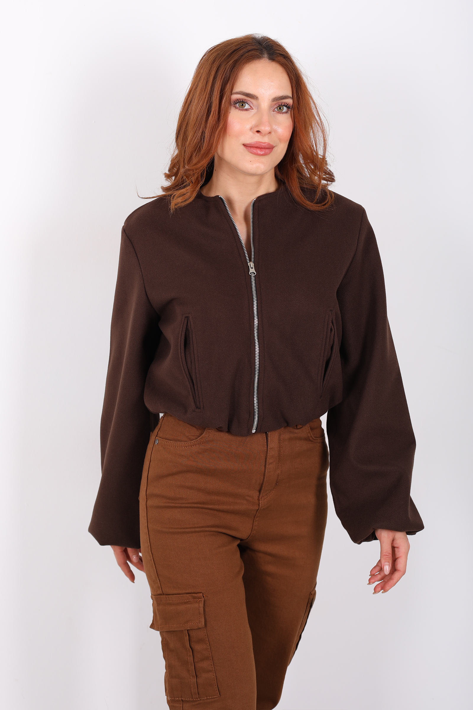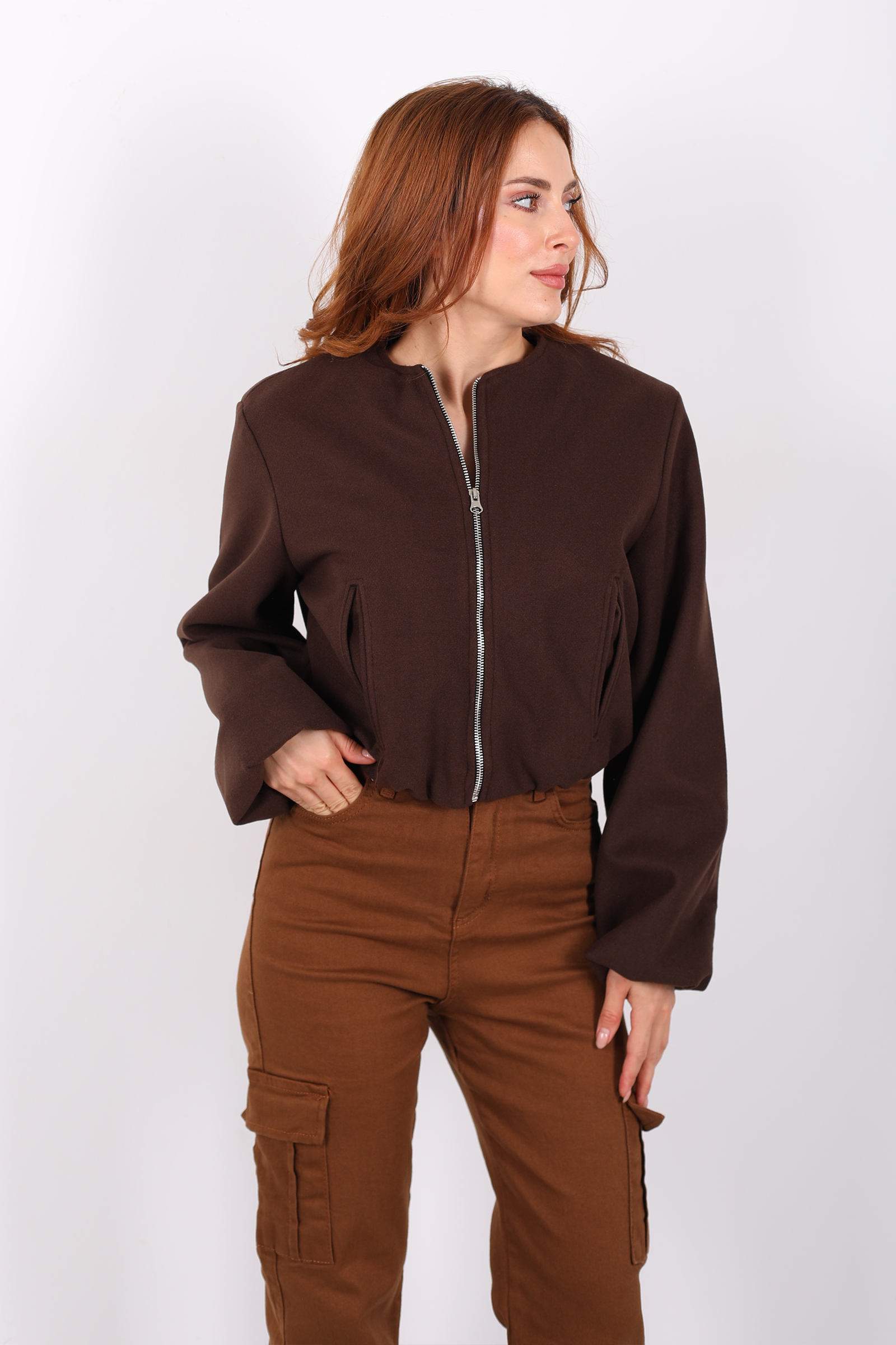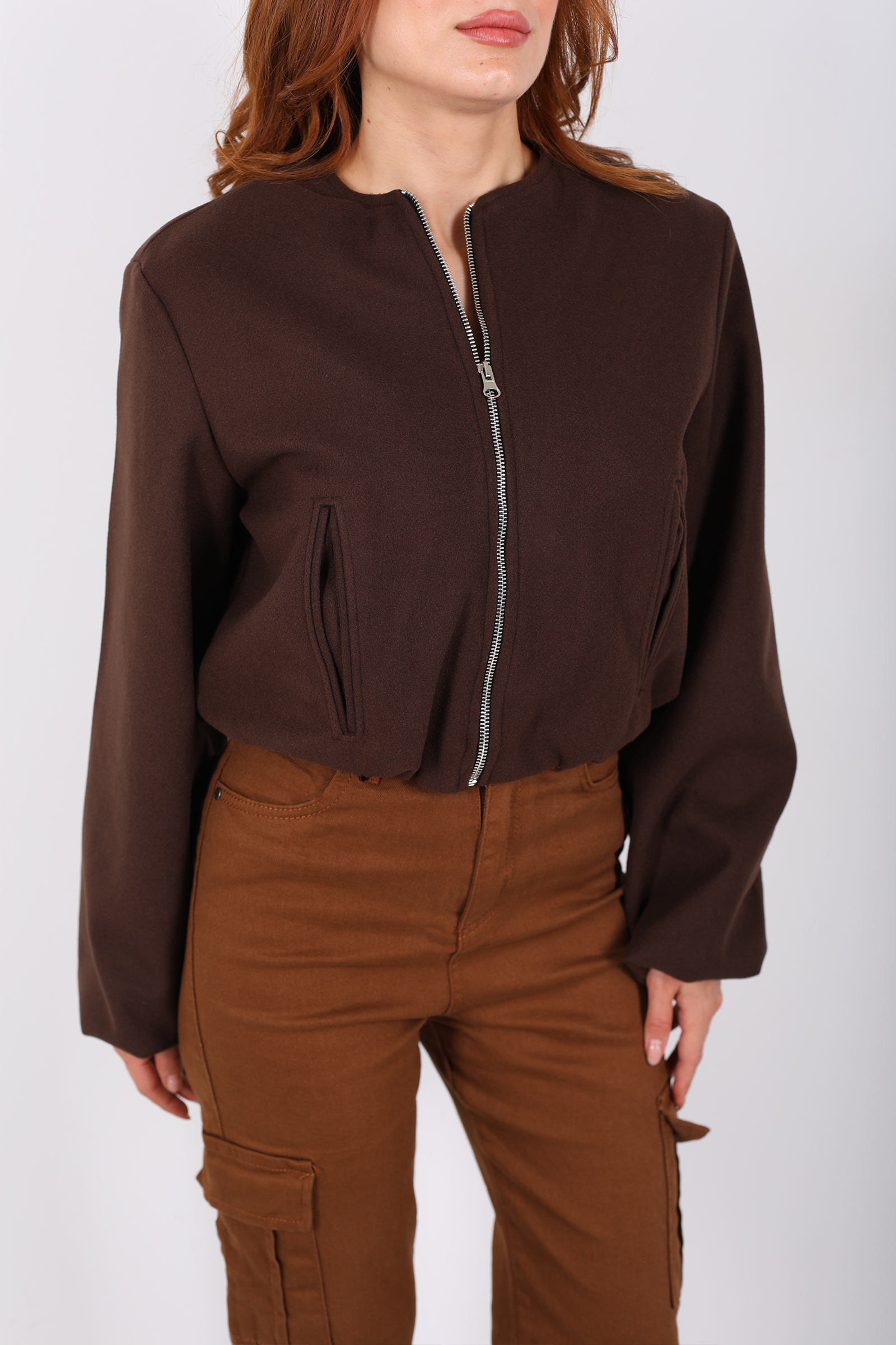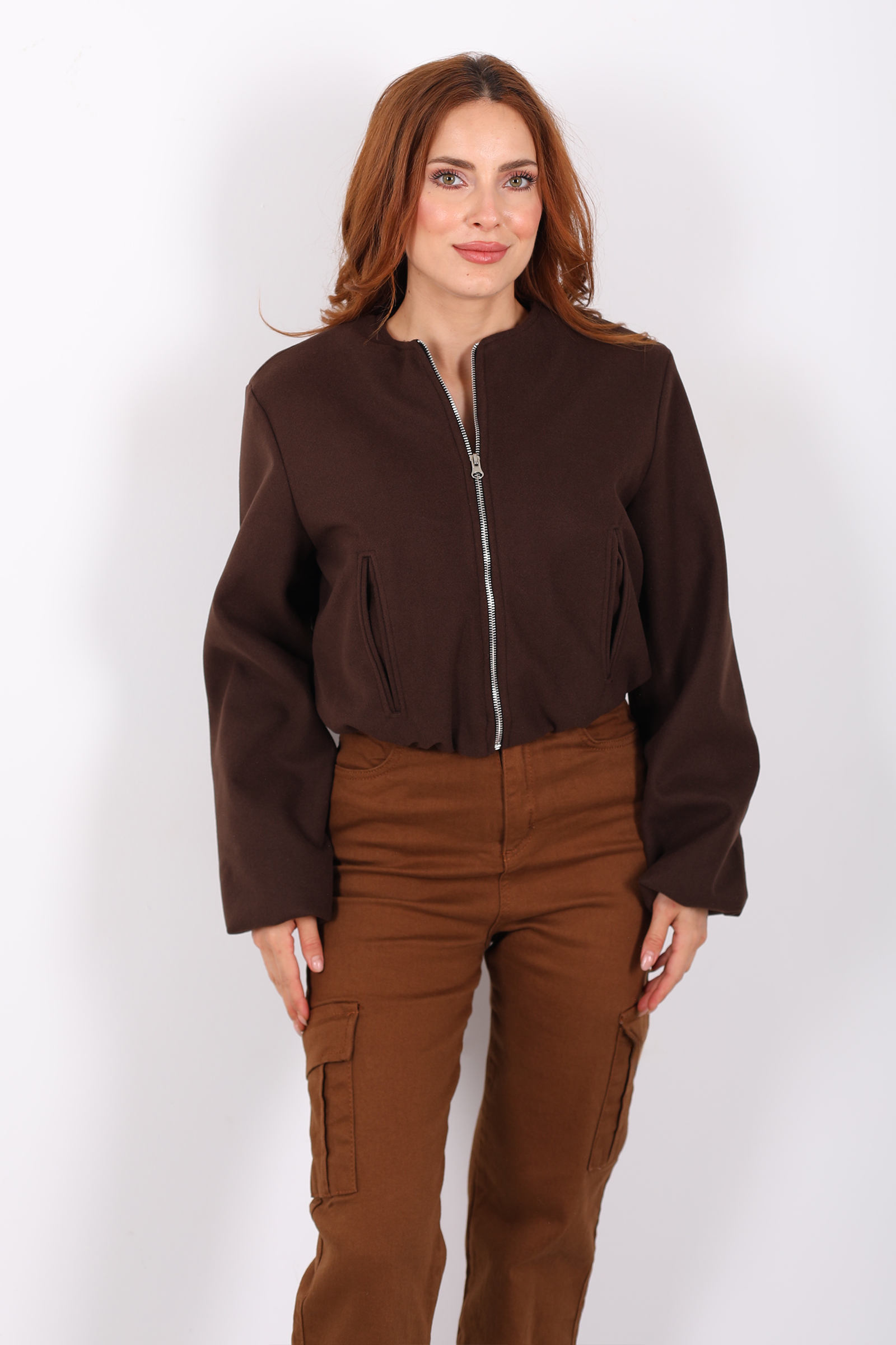 Çift Cepli Bomber Acı Kahve Kadın Kaşe Ceket
