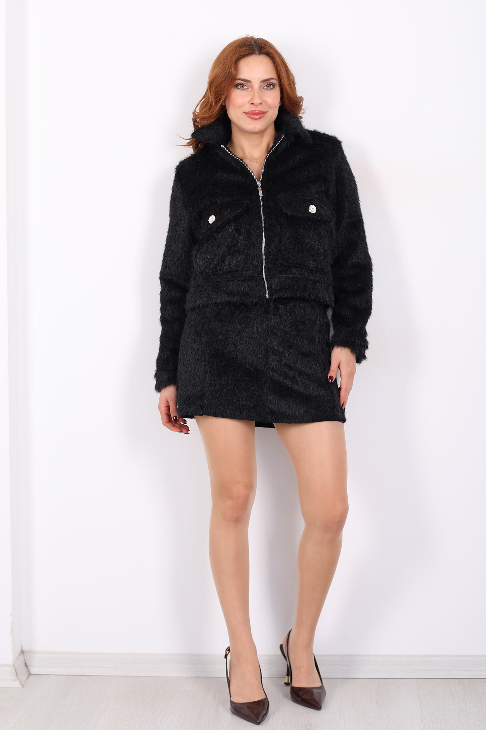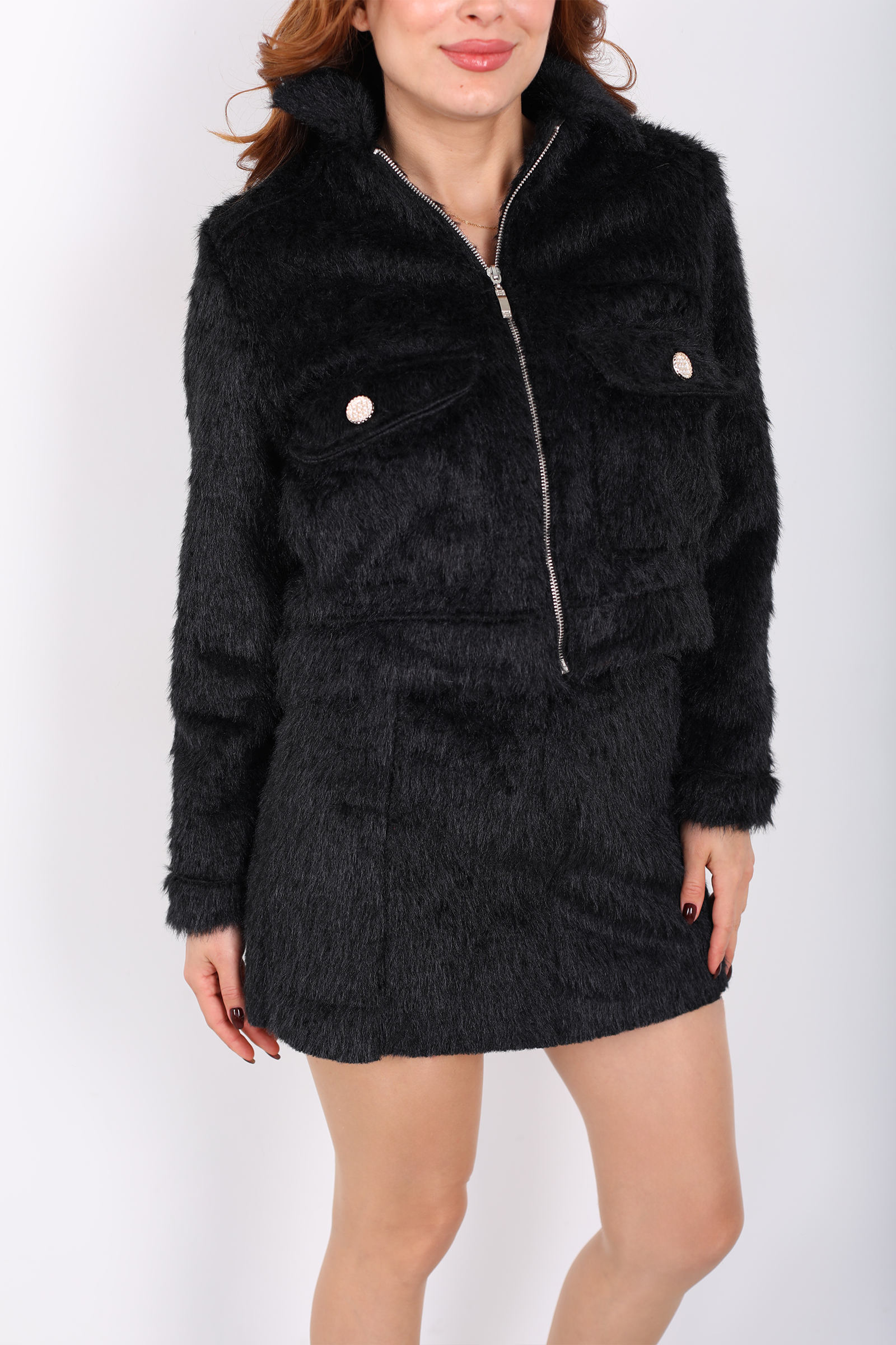 Çift Cepli Siyah Kadın Suni Kürk Ceket