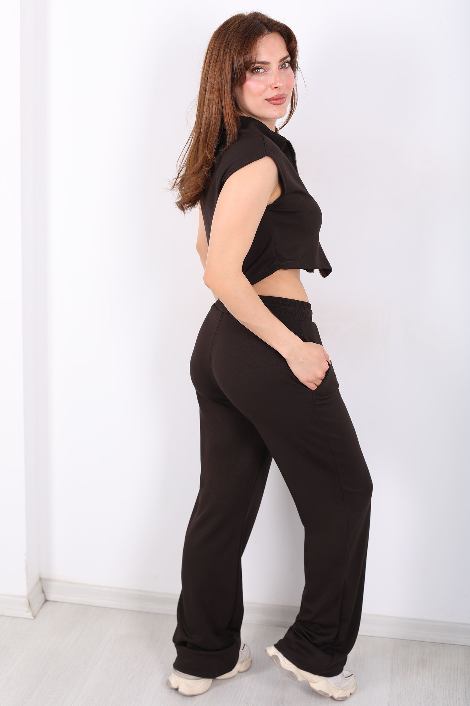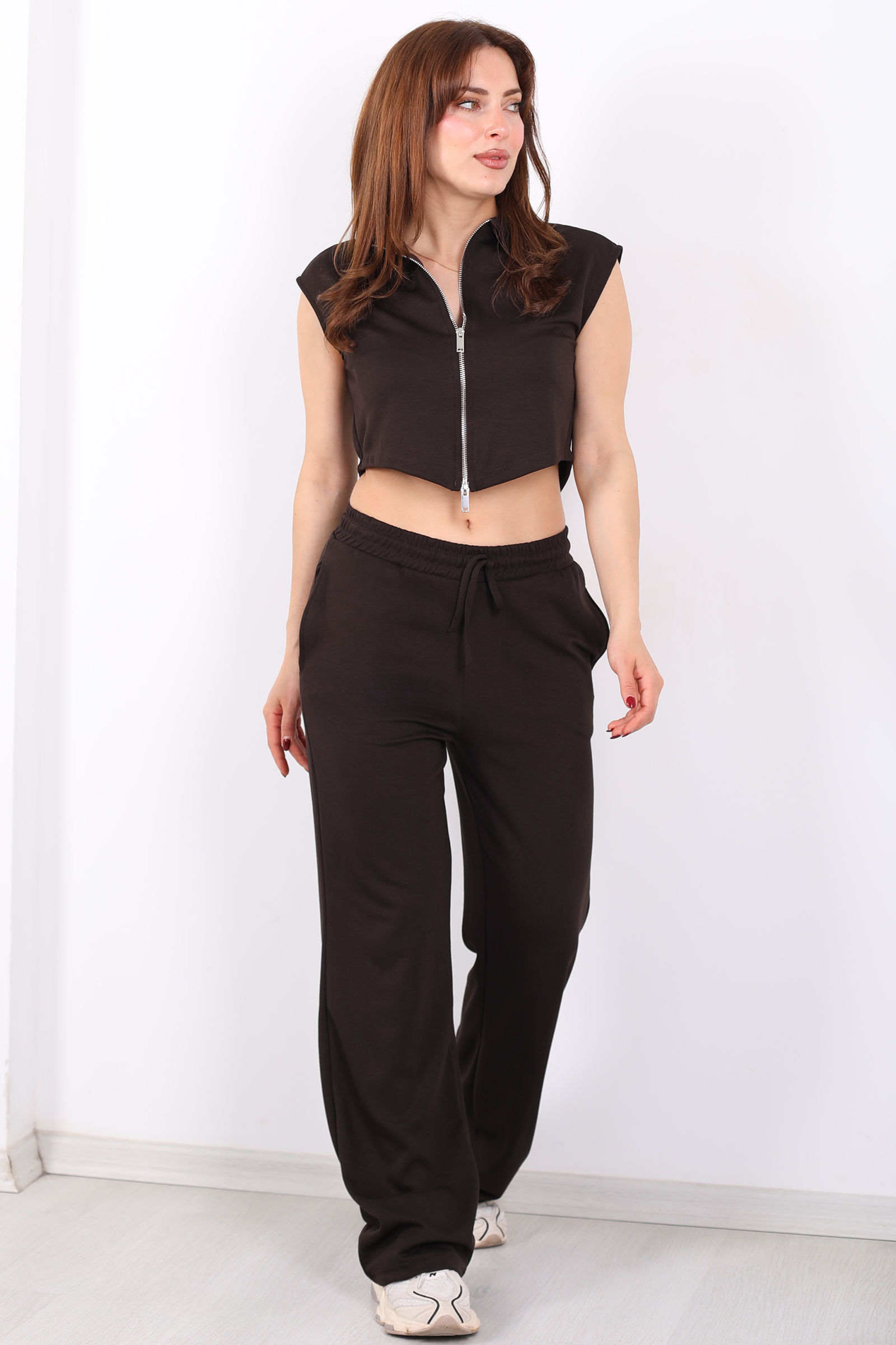 Çift Fermuarlı Kadın Acı Kahve Modal Yelek - Pantolon Takım