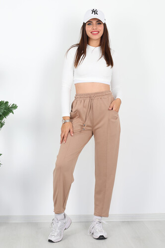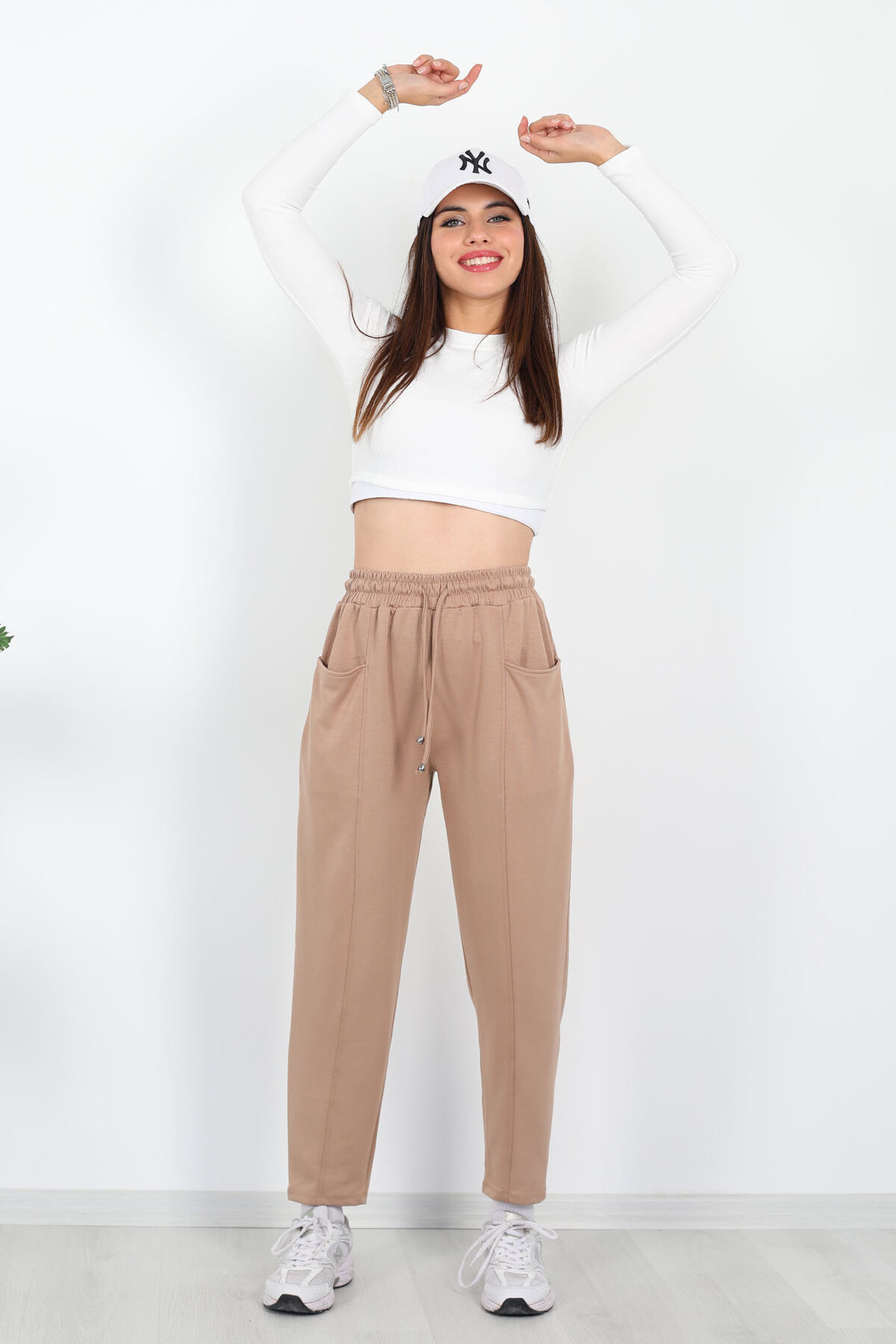 Bej renginin zarafeti ve modal kumaşın yumuşaklığıyla tasarlanmış bu pantolon, günlük şıklığınızı tamamlamak için ideal bir seçenek. Önden bağlamalı detayı ve çift cepli tasarımıyla hem pratik hem de stil sahibi bir görünüm sunar.Salaş bir kazak ve düz ayakkabılarla hafta sonu şıklığı sağlayın.
