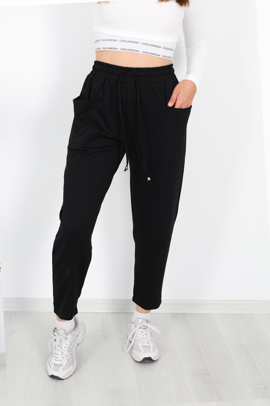 Siyahın asaleti ve modal kumaşın yumuşaklığıyla tasarlanmış bu pantolon, günlük şıklığınızı tamamlamak için ideal bir seçenek. Önden bağlamalı detayı ve çift cepli tasarımıyla hem pratik hem de stil sahibi bir görünüm sunar.Siyah kadın modal pantolon. %100 modal kumaş ve önden bağlamalı tasarımıyla şıklığı konforla buluşturur. Türkiye üretimi. Şimdi keşfedin!