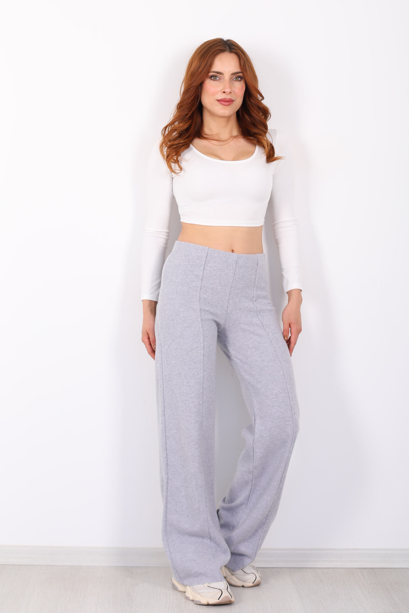 Çimalı Örme Gri Melanj Kadın Pantolon