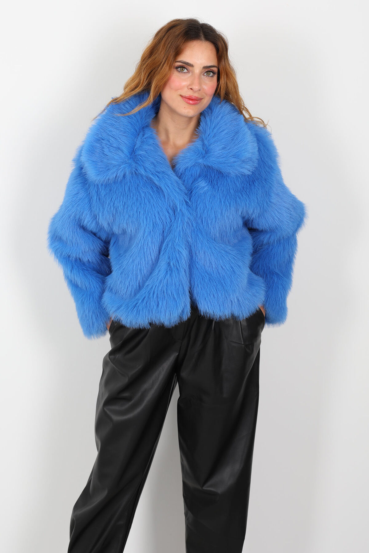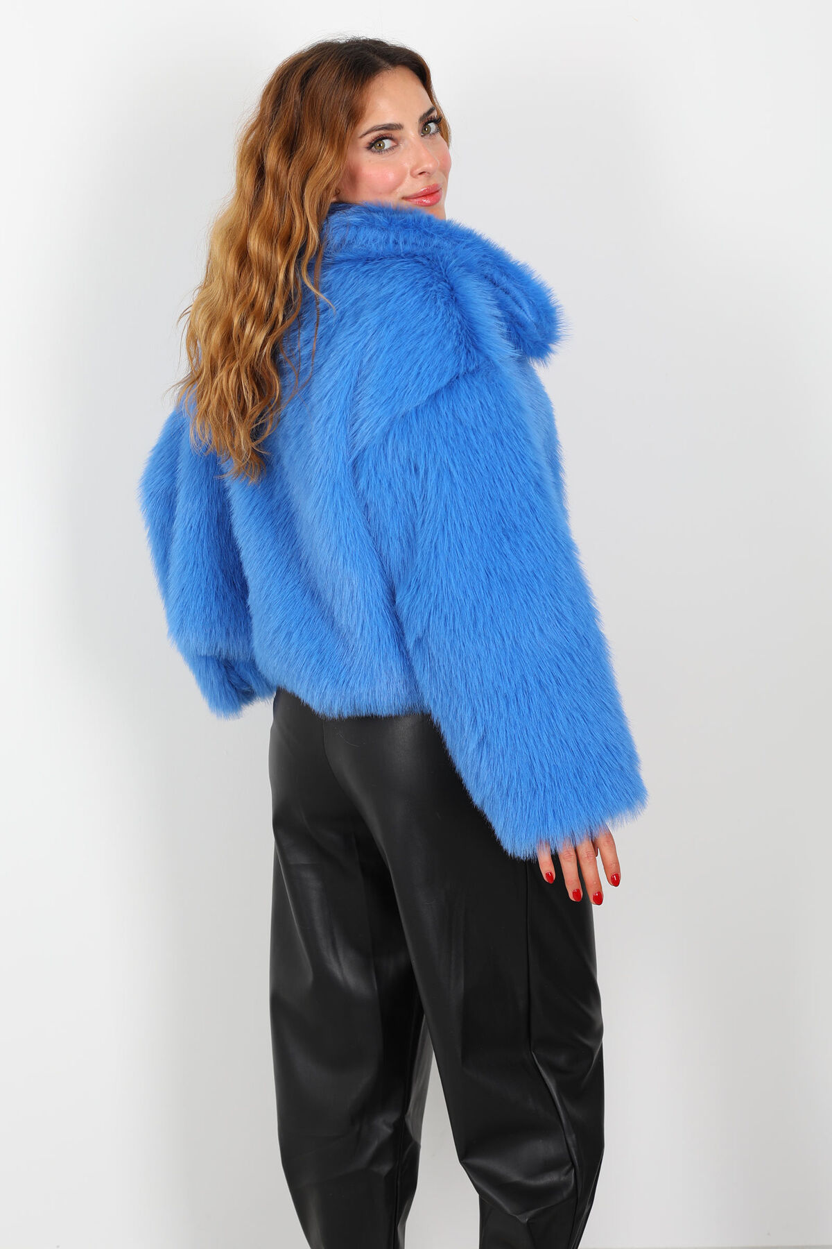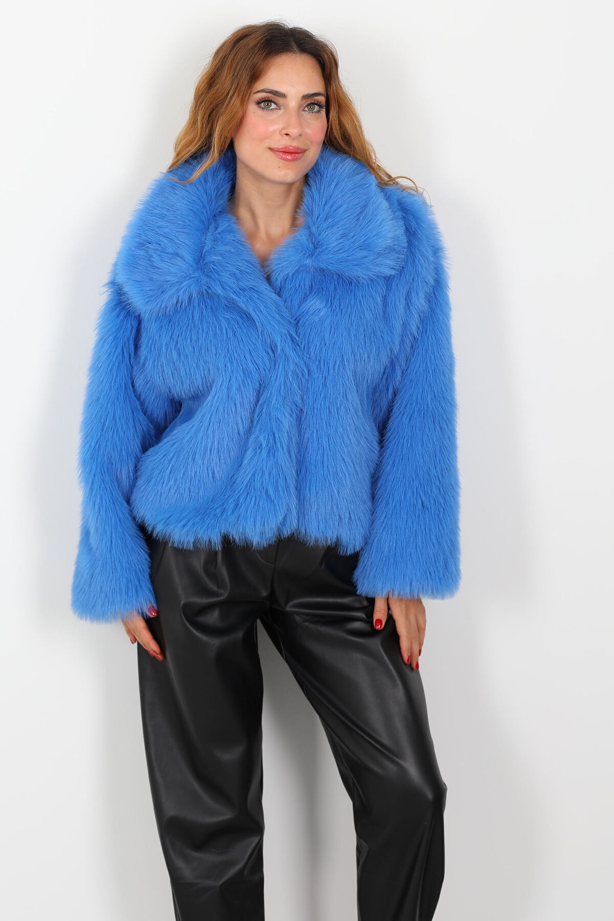 Çıtçıtlı Yakalı Sakallı İndigo Kadın Kürk