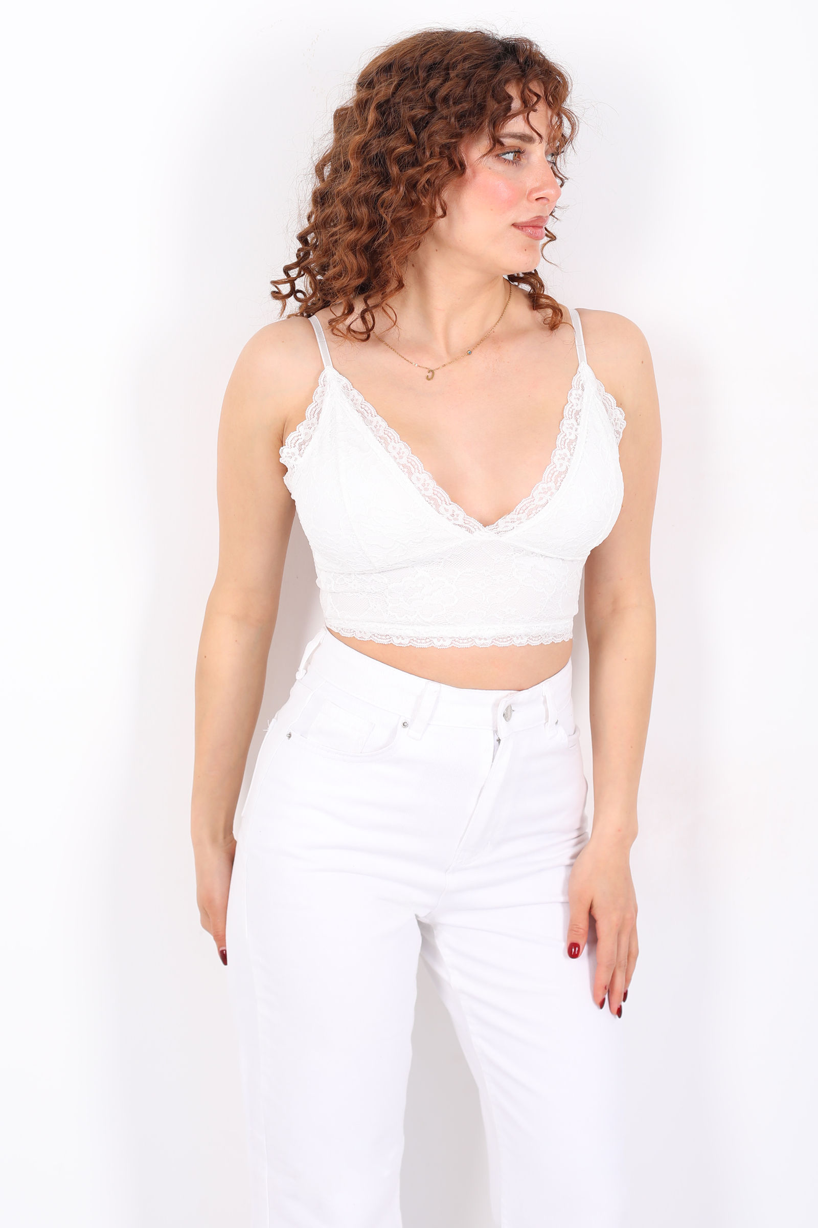 İp Askılı Kaşkorse Beyaz Kadın Crop