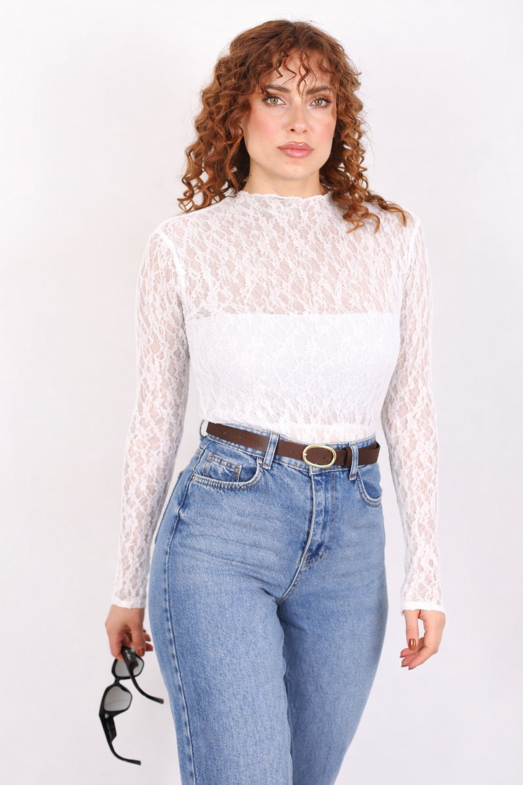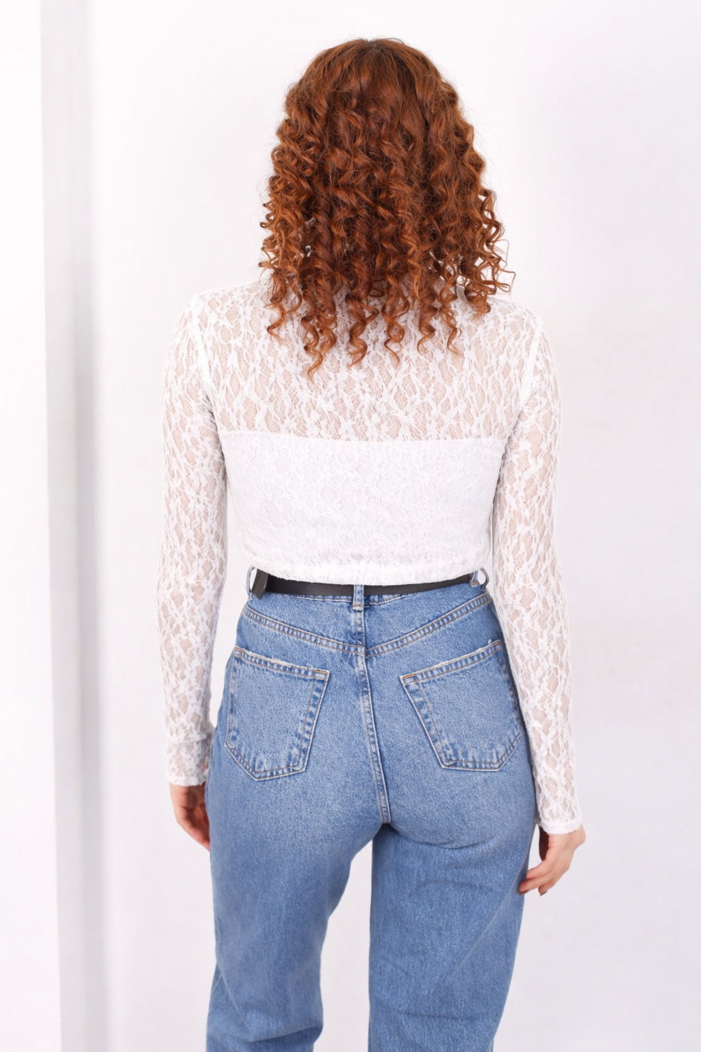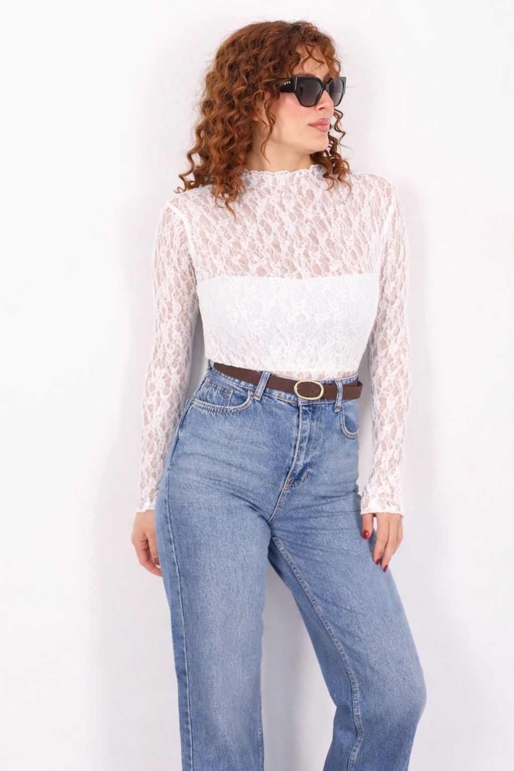 Dik Yaka Beyaz Kadın Dantel Bluz