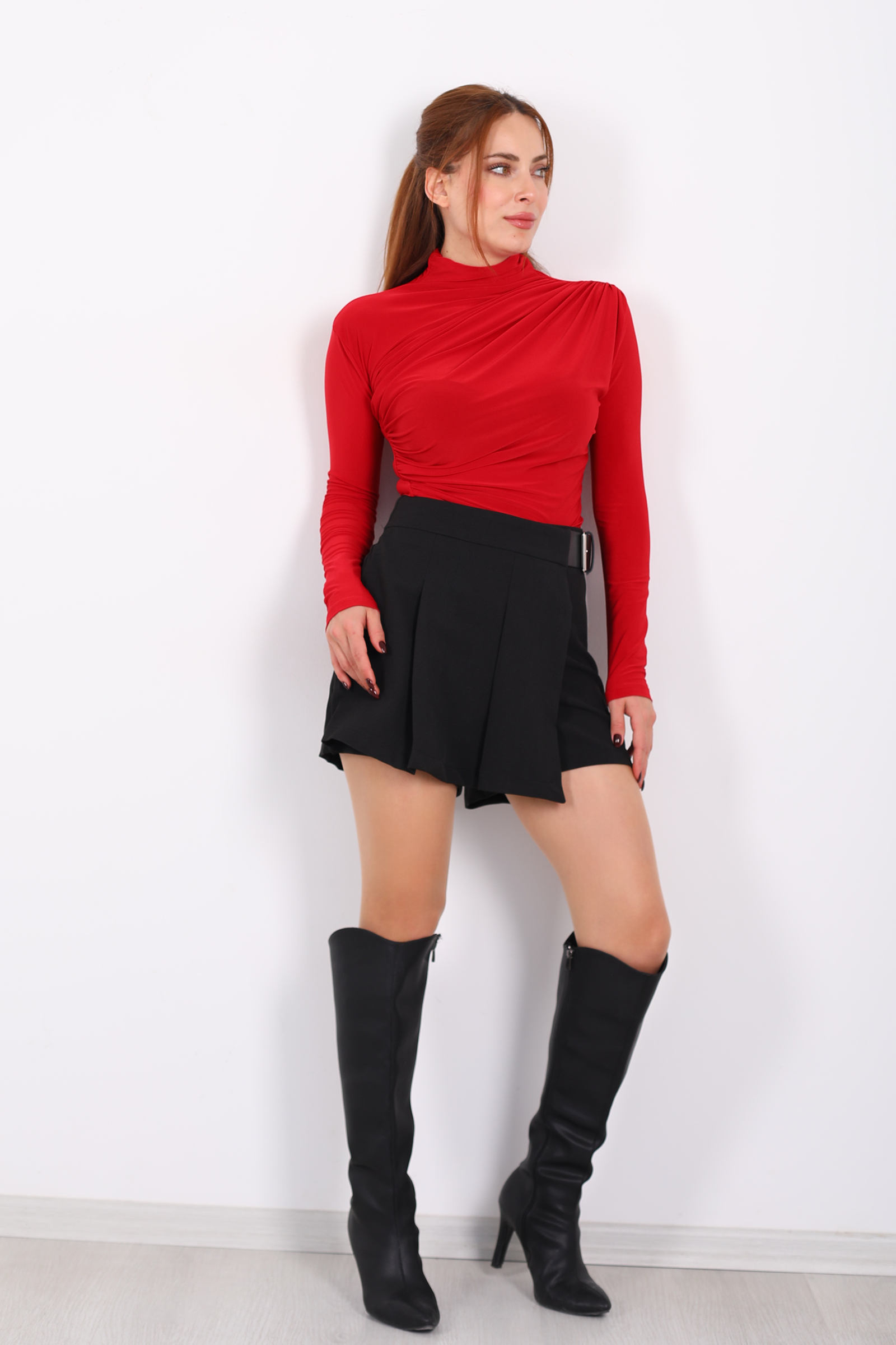 Dik Yaka Büzgü Detaylı Kırmızı Kadın Sandy Bluz