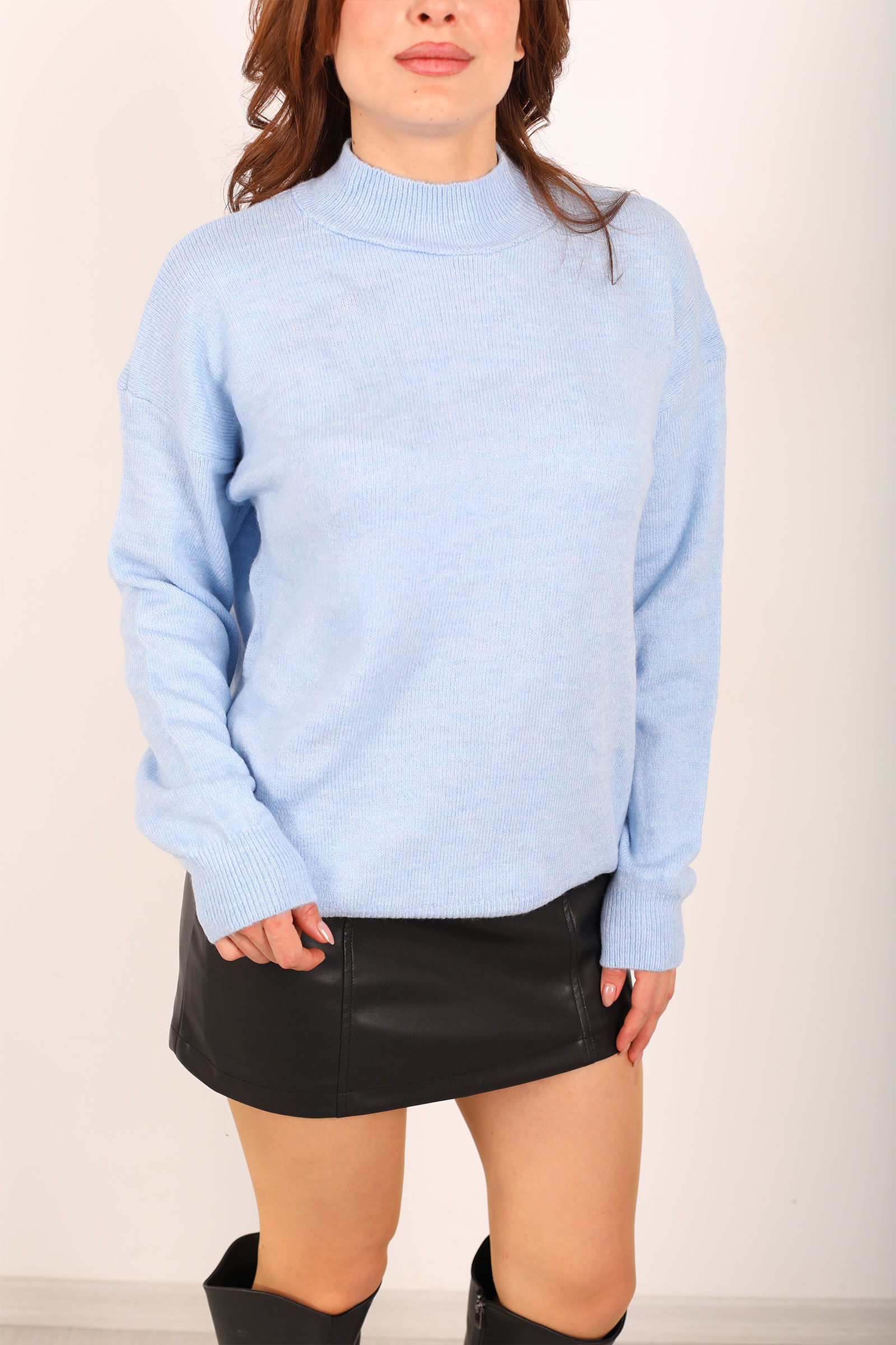 Bebe mavisi dik yaka triko kazak, yumuşak triko dokusuyla konforu ve modern çizgiyi buluşturur. Dik yaka tasarımı boyun hattını zarifçe çerçevelerken, rahat kesimi gündelik stilinize şık bir hava katar. Nötr ama canlı bebe mavisi rengi, jean, kumaş pantolon veya eteklerle kolay kombinlenir ve günün her anında hem casual hem minimalist bir şıklık sağlar. Triko kumaşın nefes alabilir yapısı, mevsim geçişlerinde de rahat kullanım sunar. Bu kazak, gardırobunuzun klasik parçalarından biri olarak her tarza uyum sağlar.