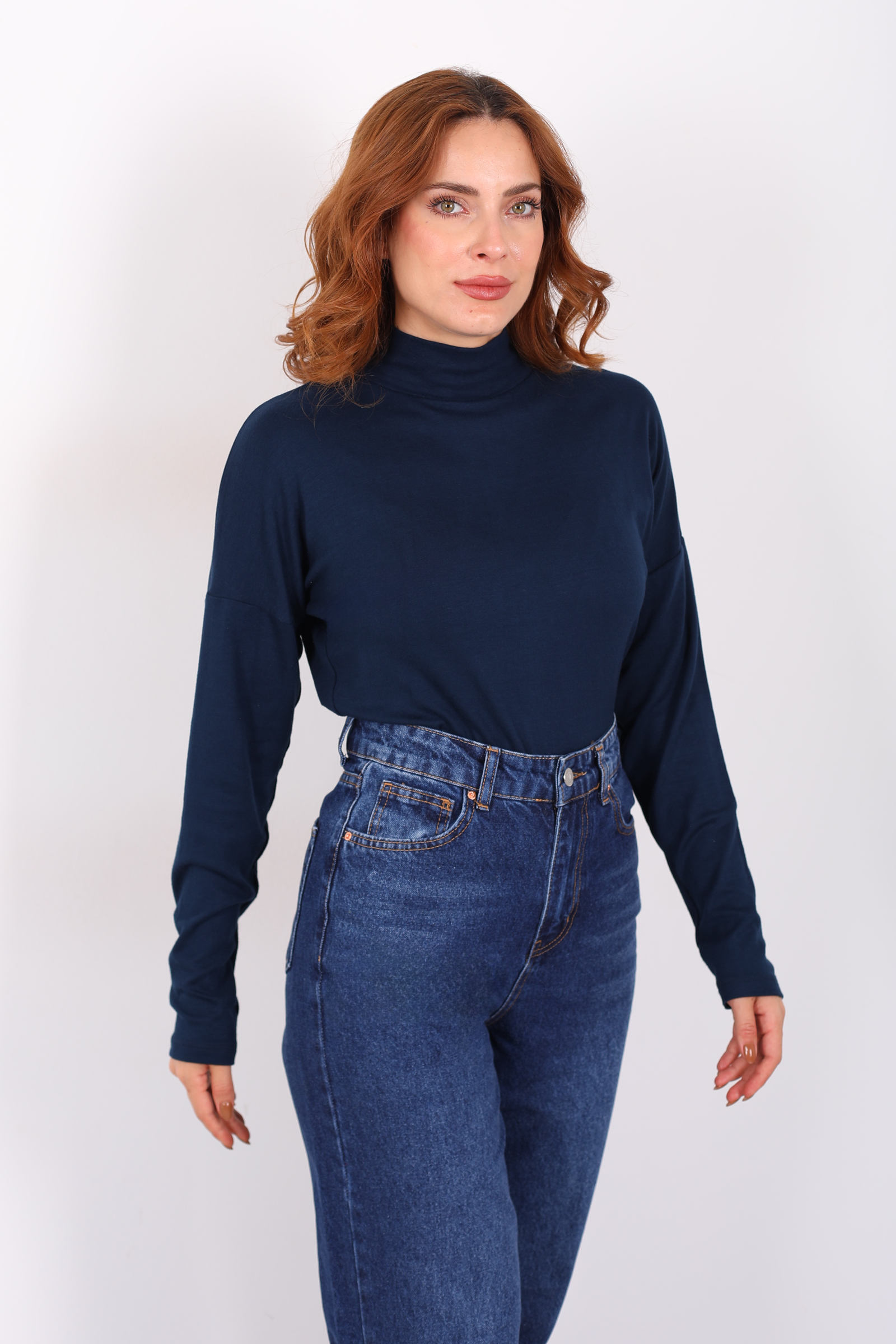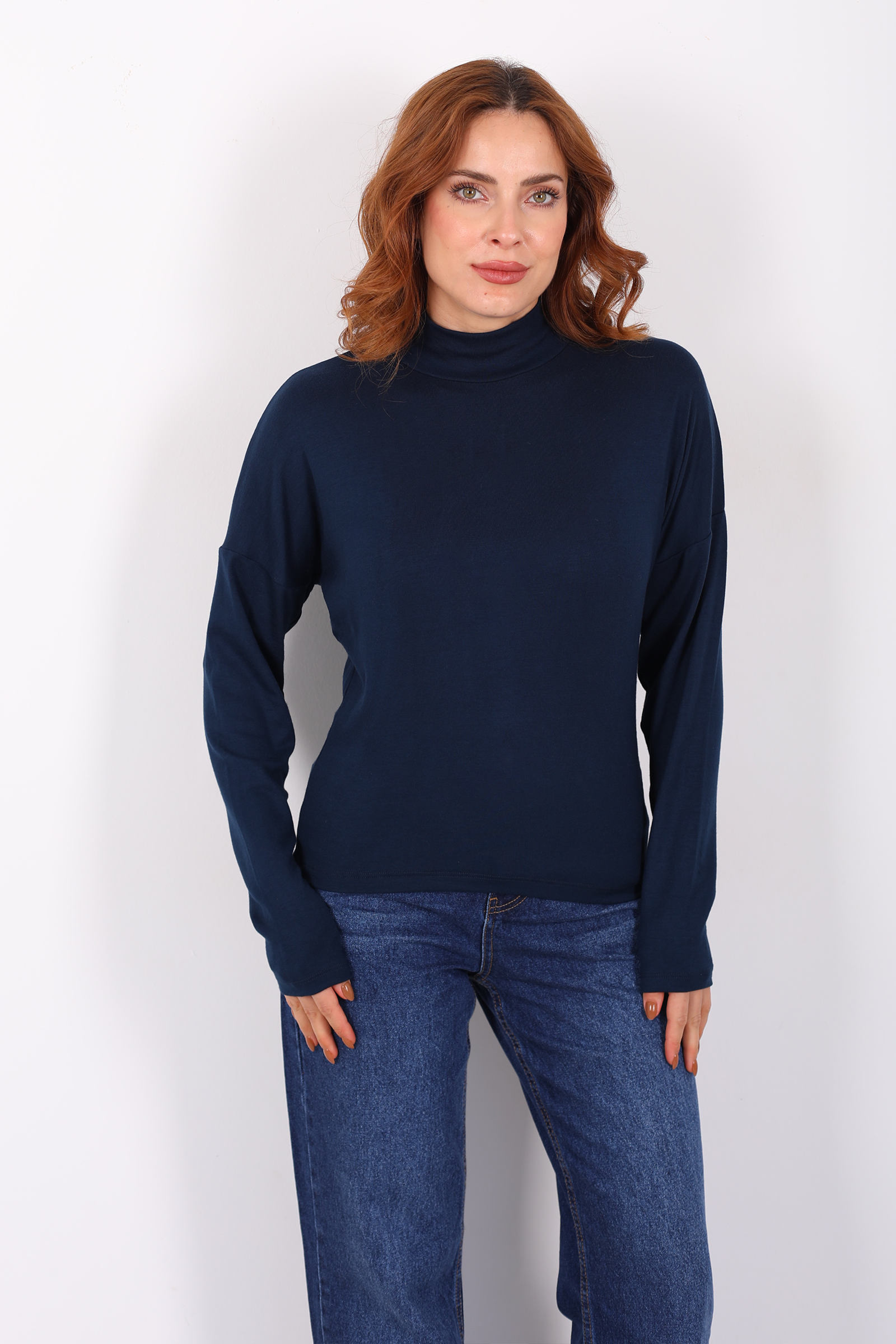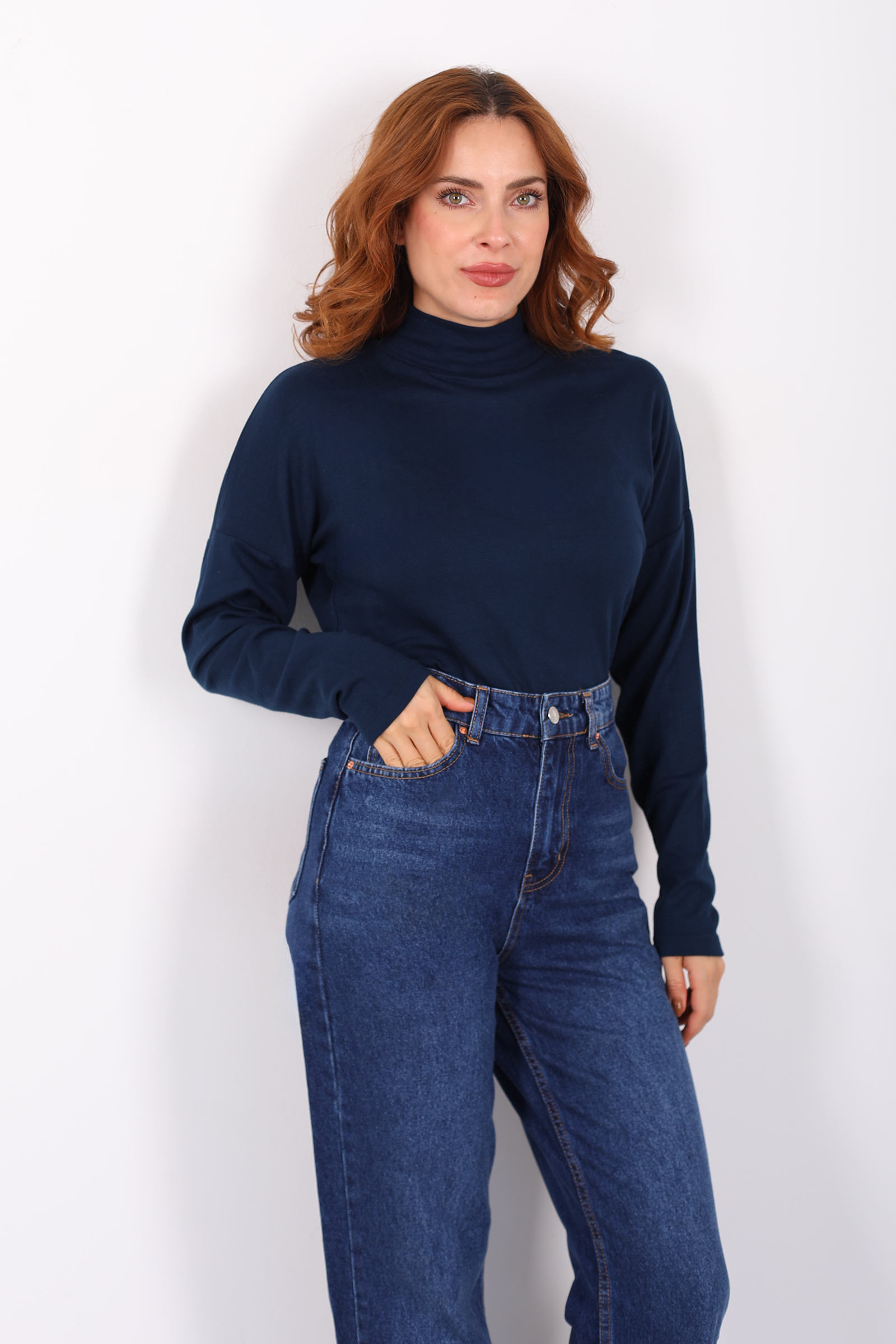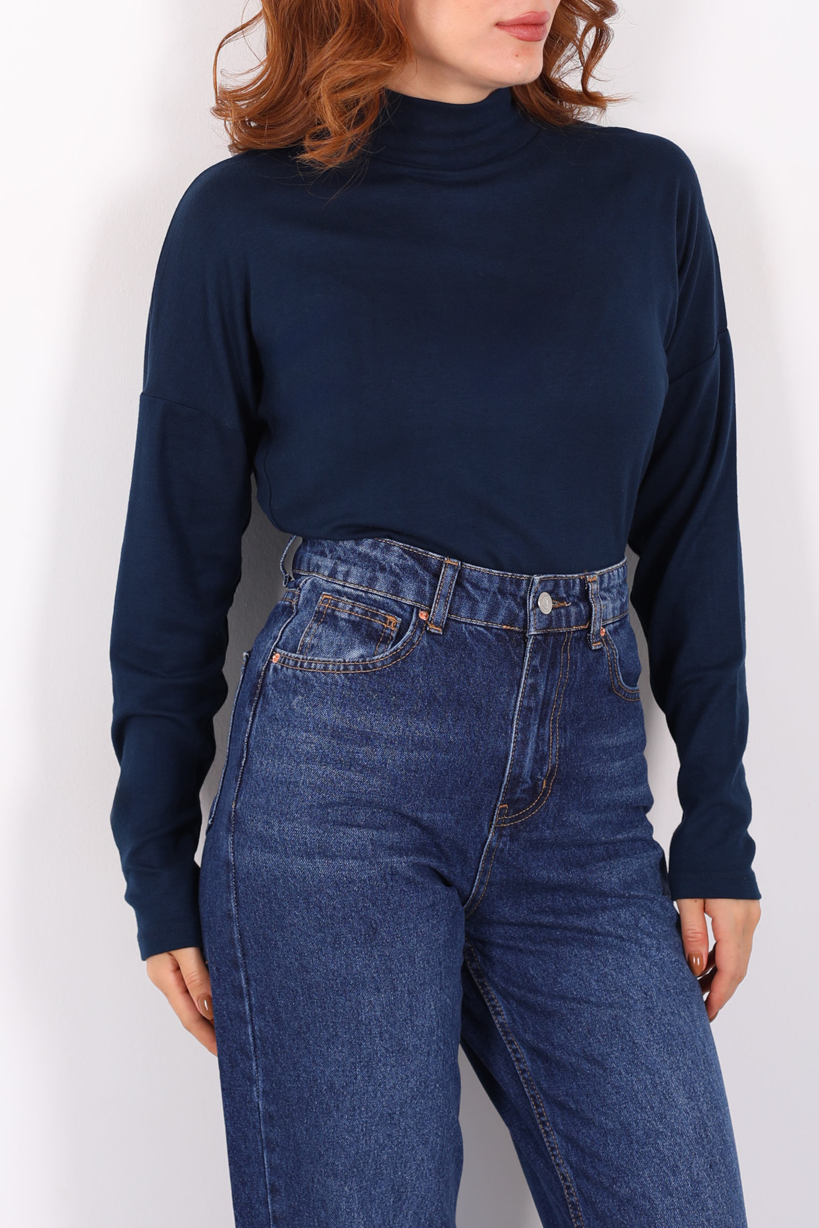 Dik Yaka Lacivert Kadın Buzi Bluz