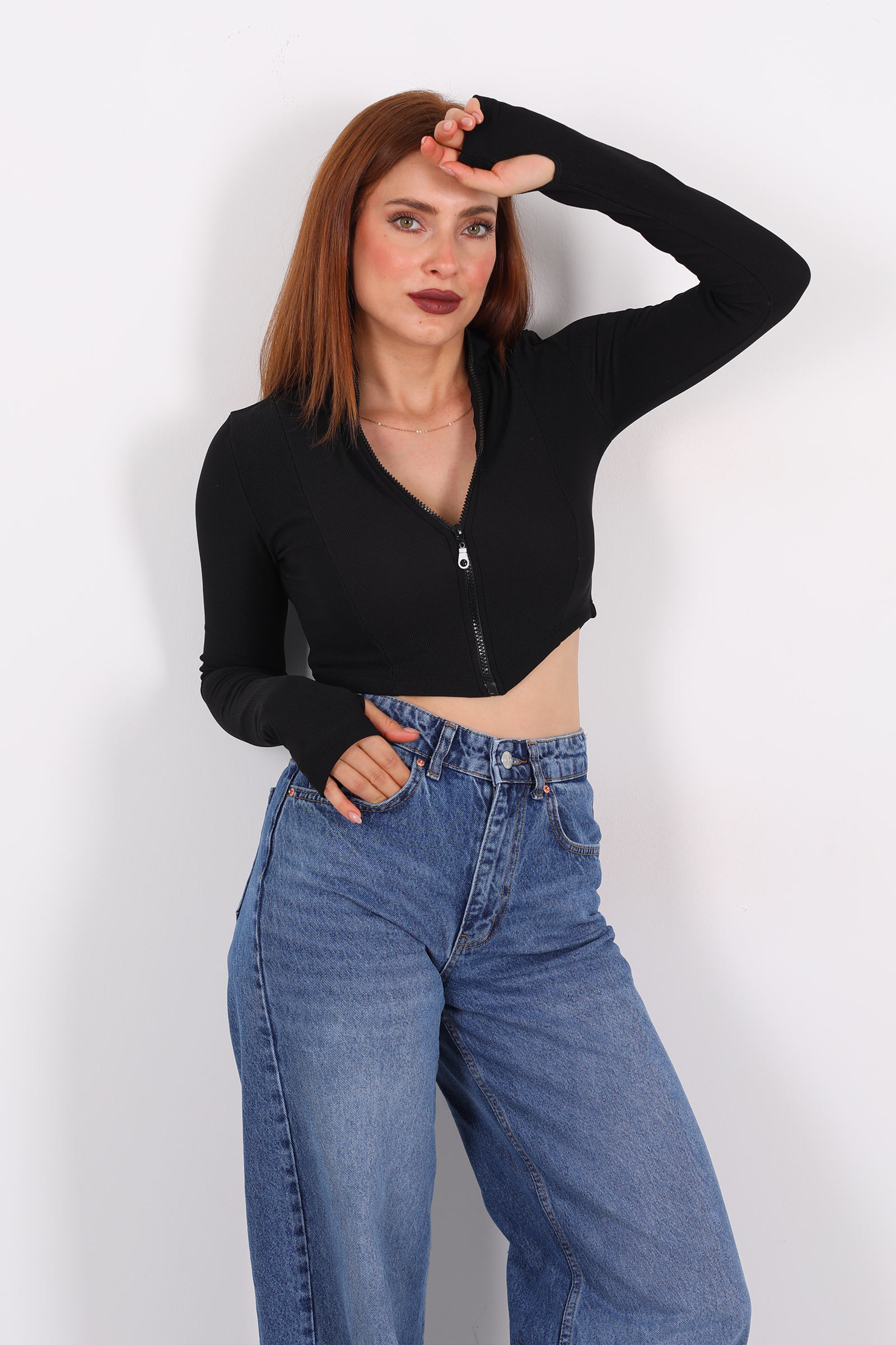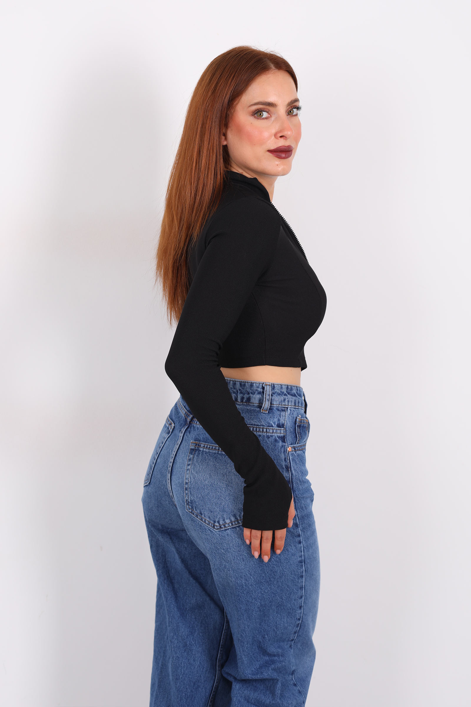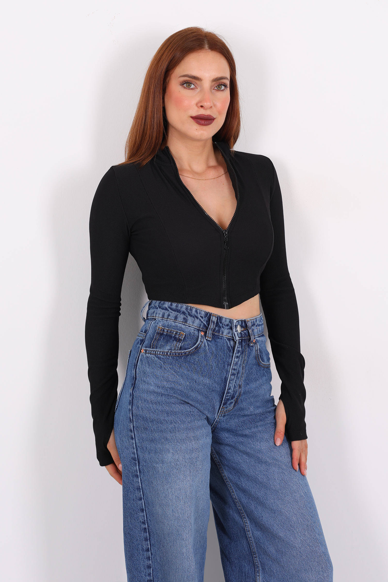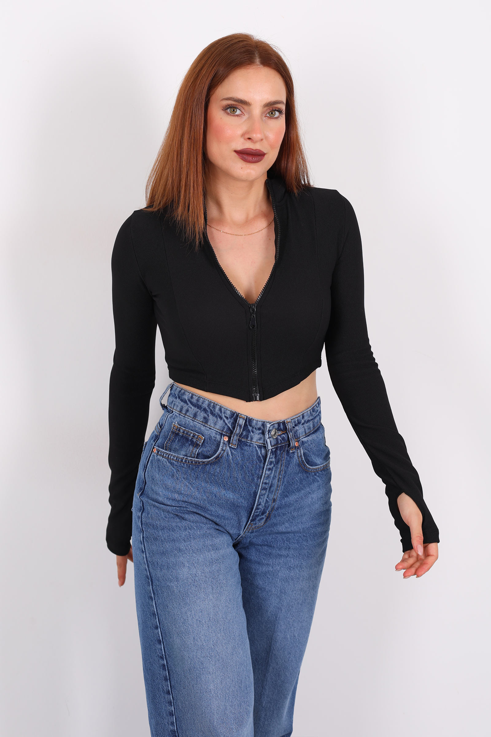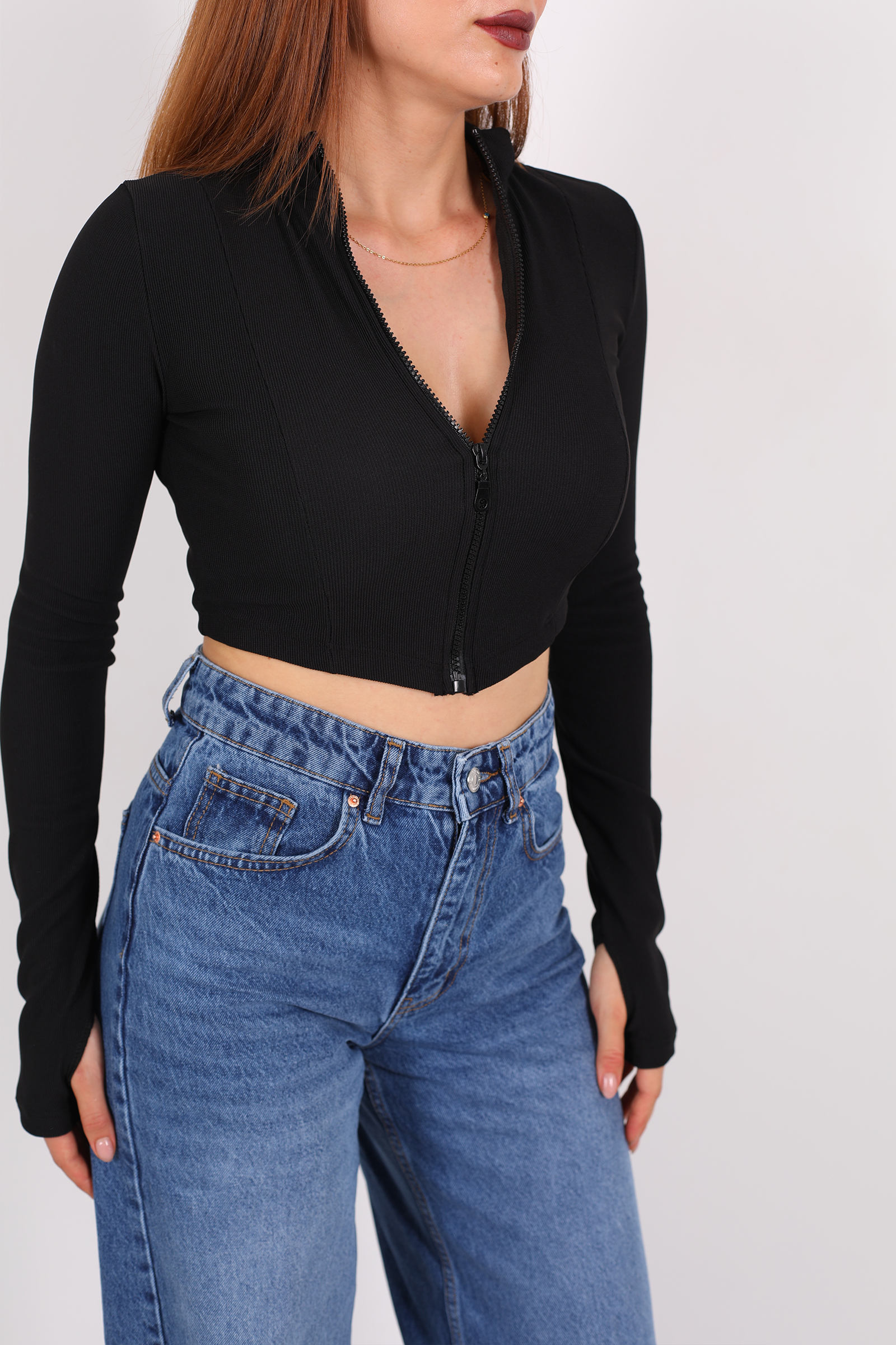 Dik yaka, parmak geçirilmeli siyah Ottoman crop ceket, hem modern hem klas bir etki bırakıyor. Ottoman kumaşın karakteristik kaburga dokusu , cekete hem tok bir yapı kazandırıyor hem de şık bir görünüm sunuyor.Kol kısımlarındaki parmak geçirme detayı, ceketin sportif ve onksiyonel yönünü güçlendirirken; crop kesimi bele vurgu yaparak gün boyu enerjik bir siluet sağlar.
