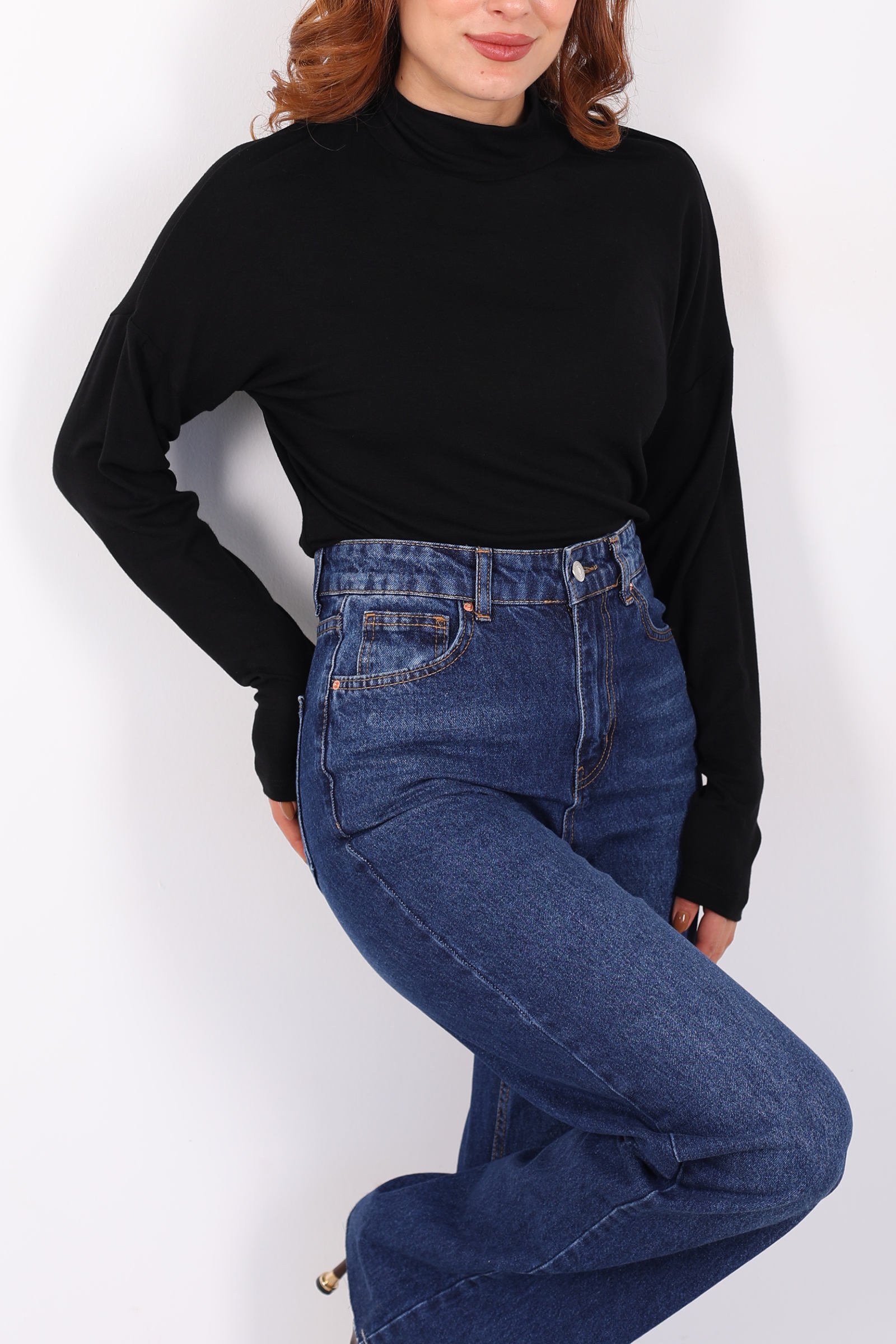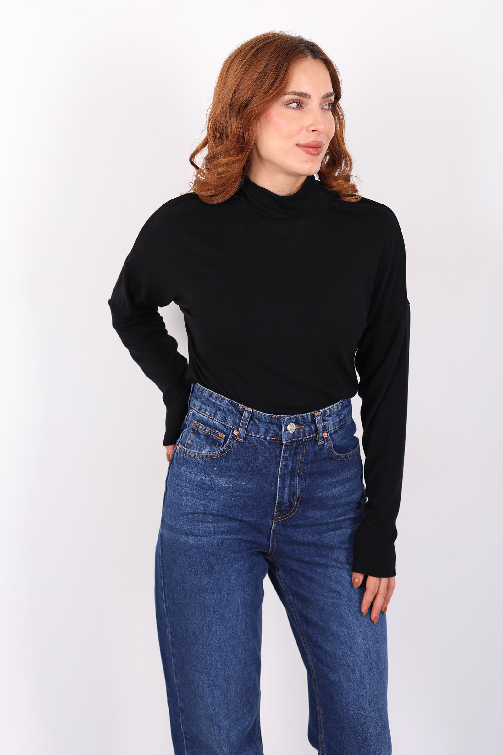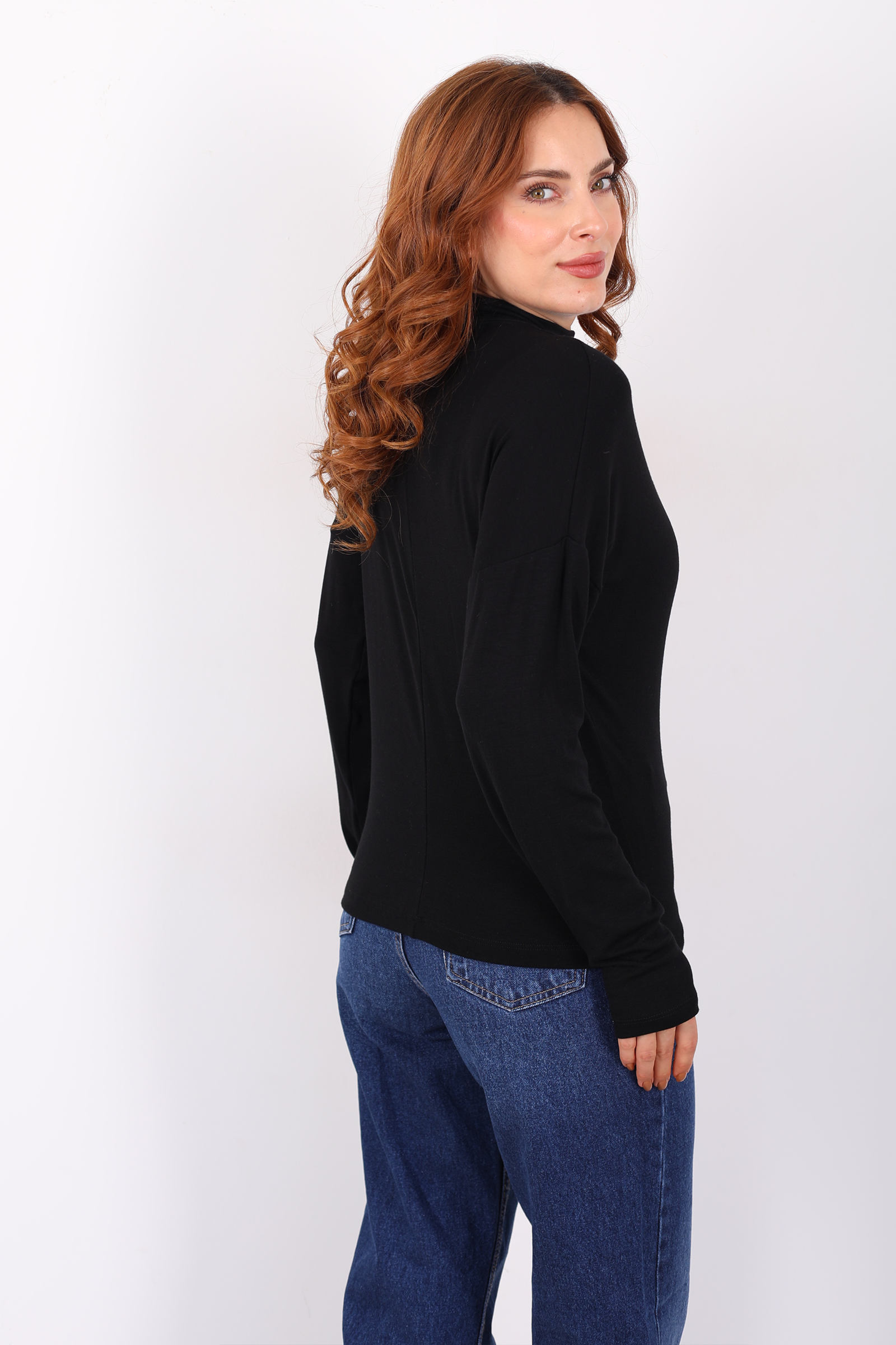 Dik Yaka Siyah Kadın Buzi Bluz