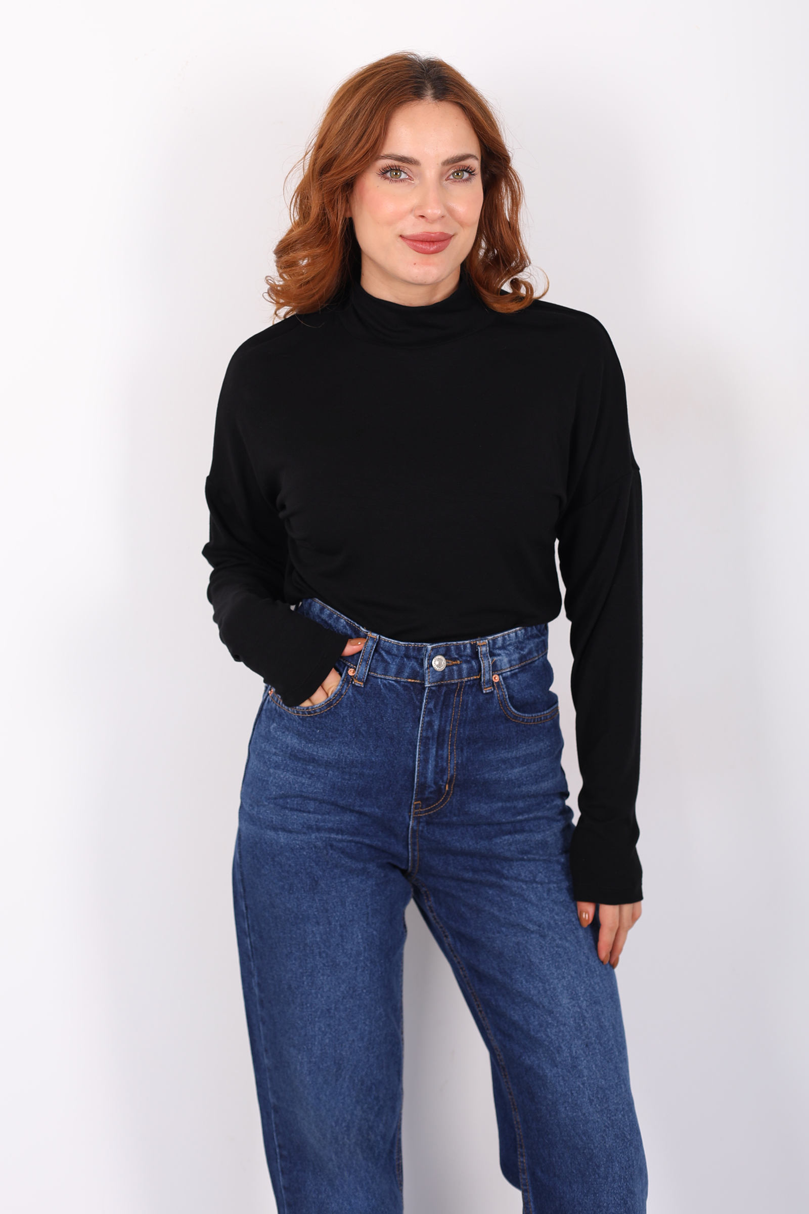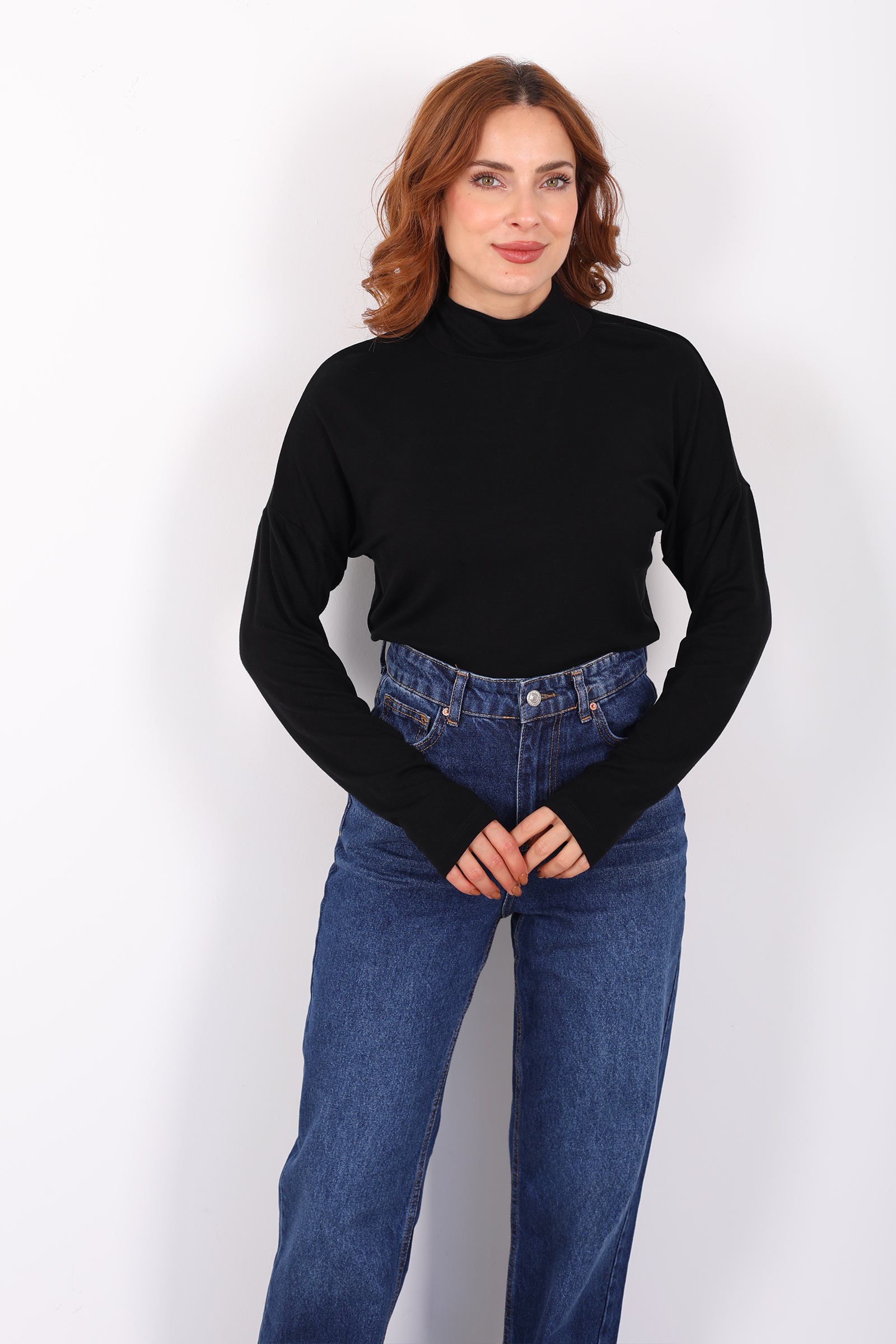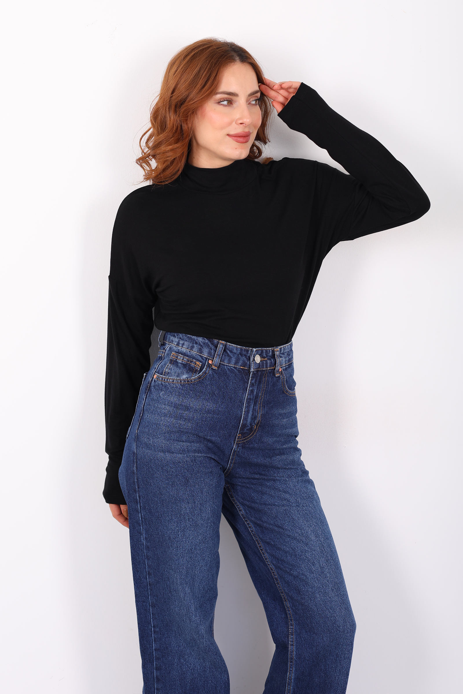 Dik Yaka Siyah Kadın Buzi Bluz