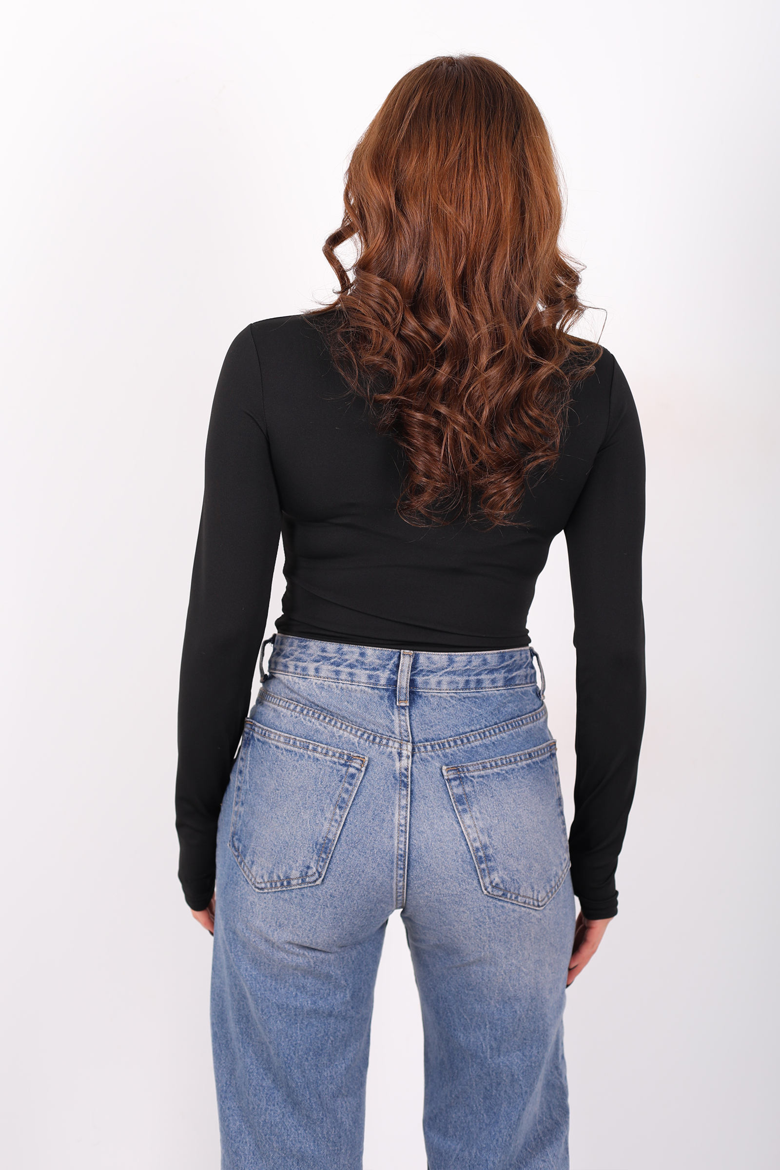 Uzun Kol Kare Yaka Siyah Çıtçıtlı Body