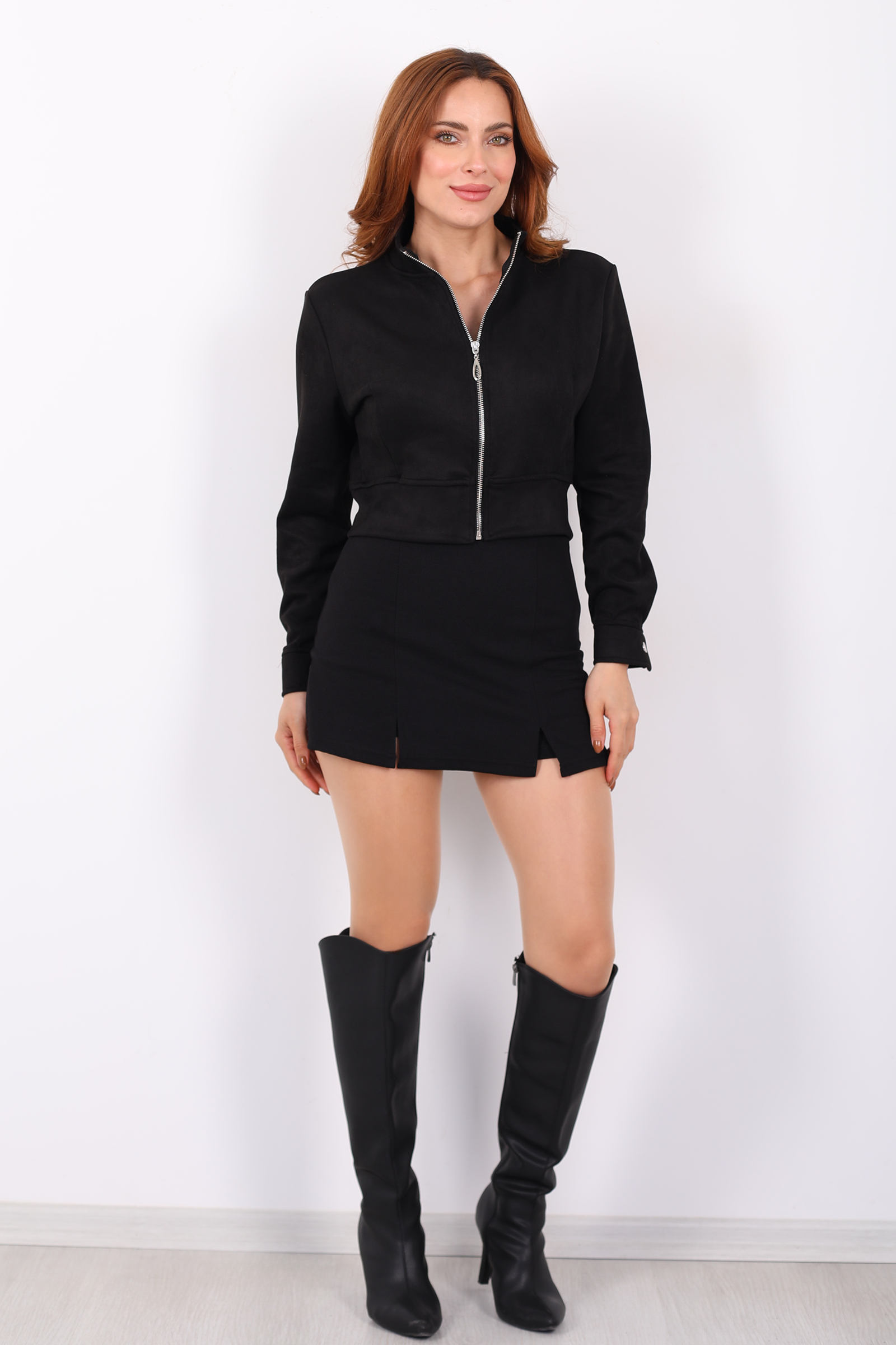 Hakim Yaka Cep Kapaklı İçi Astarlı Siyah Kadın Bomber Ceket