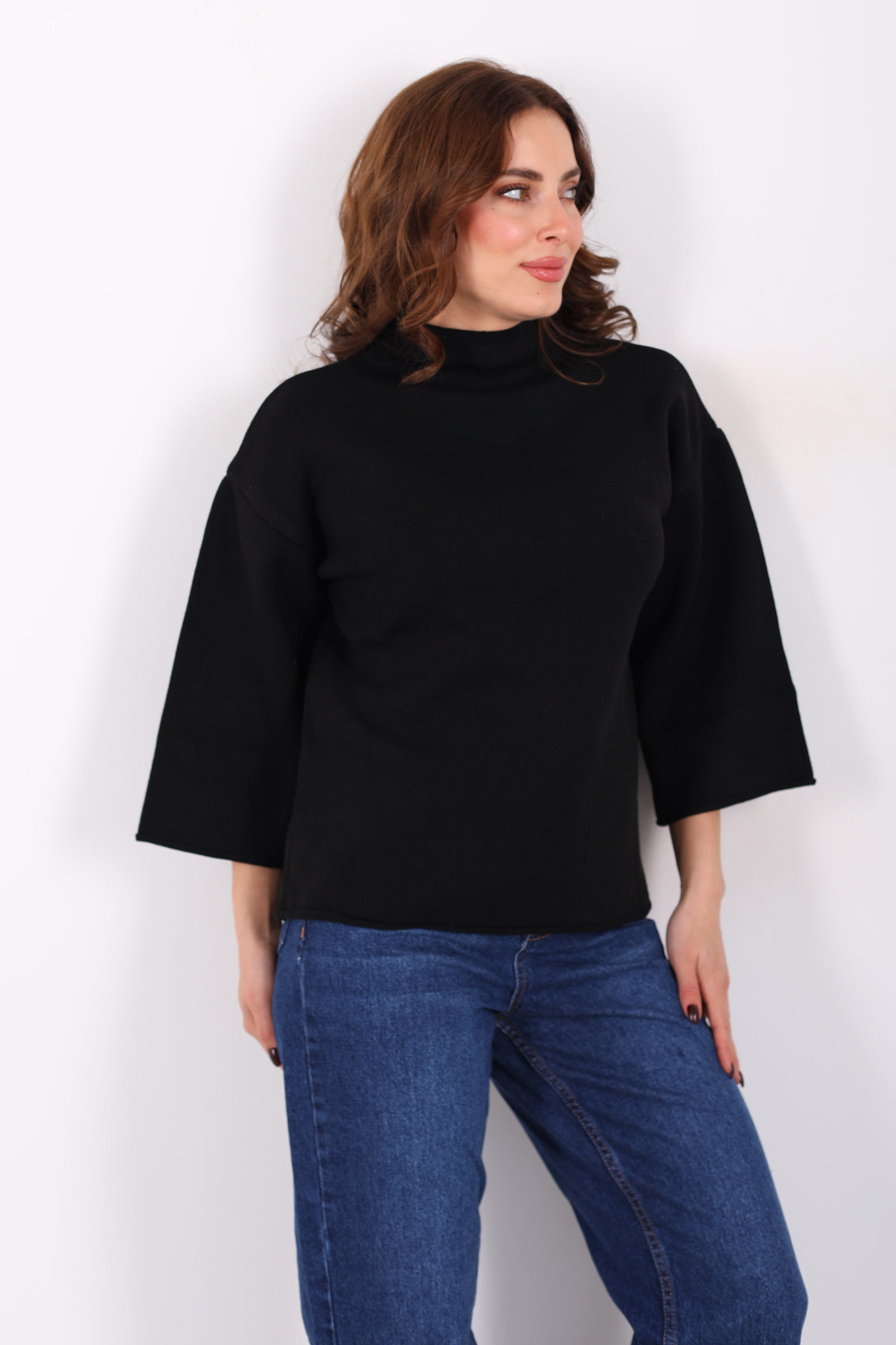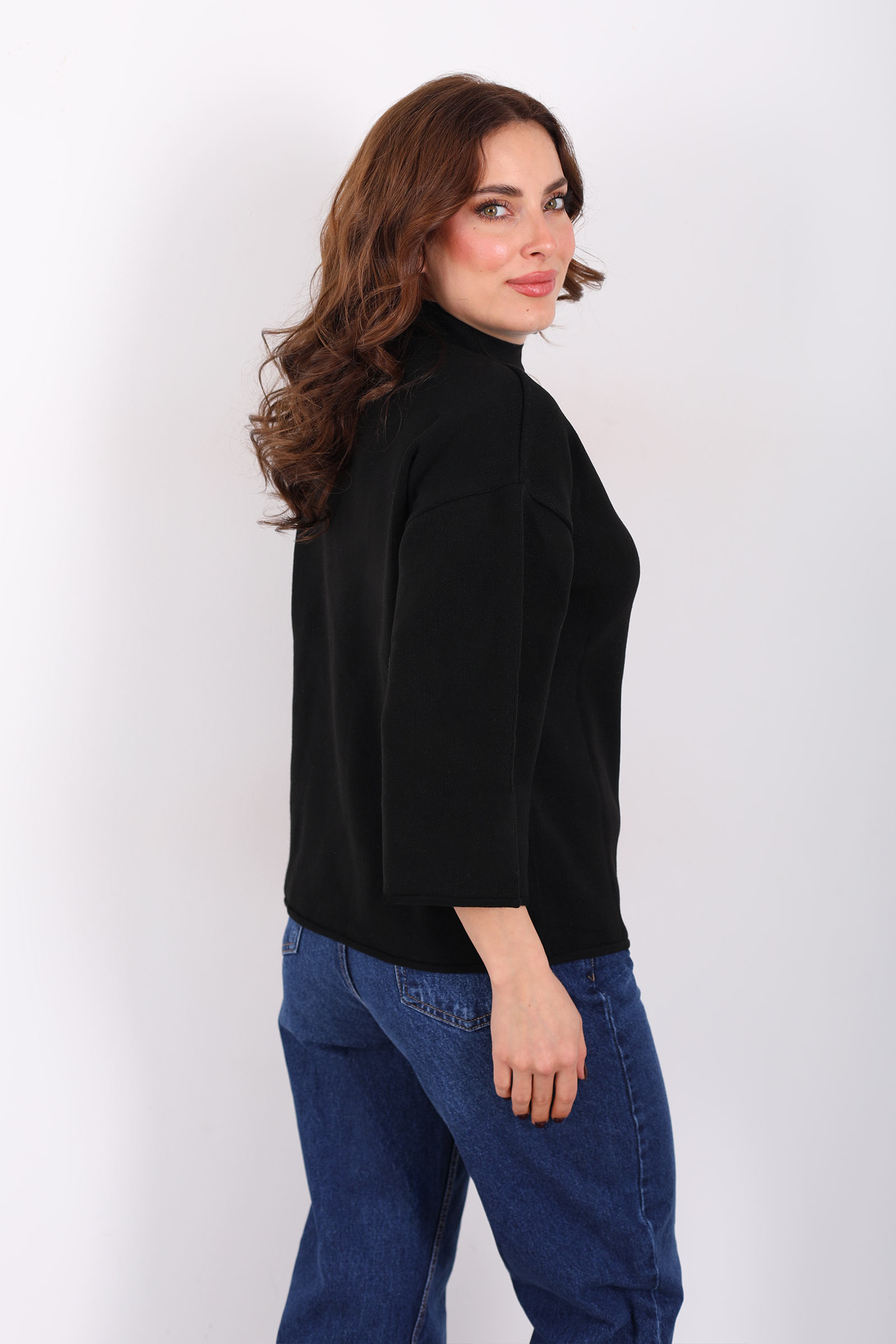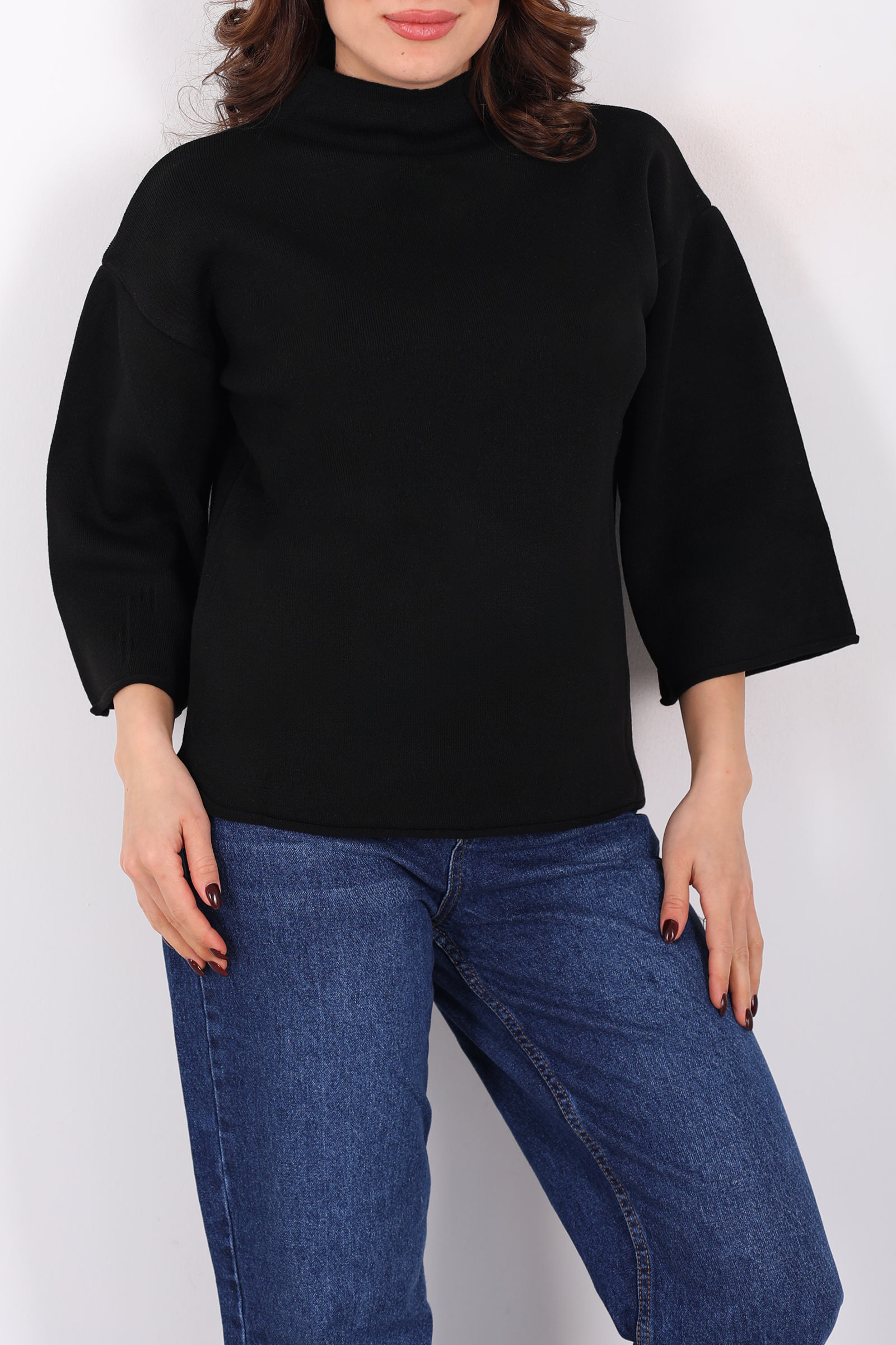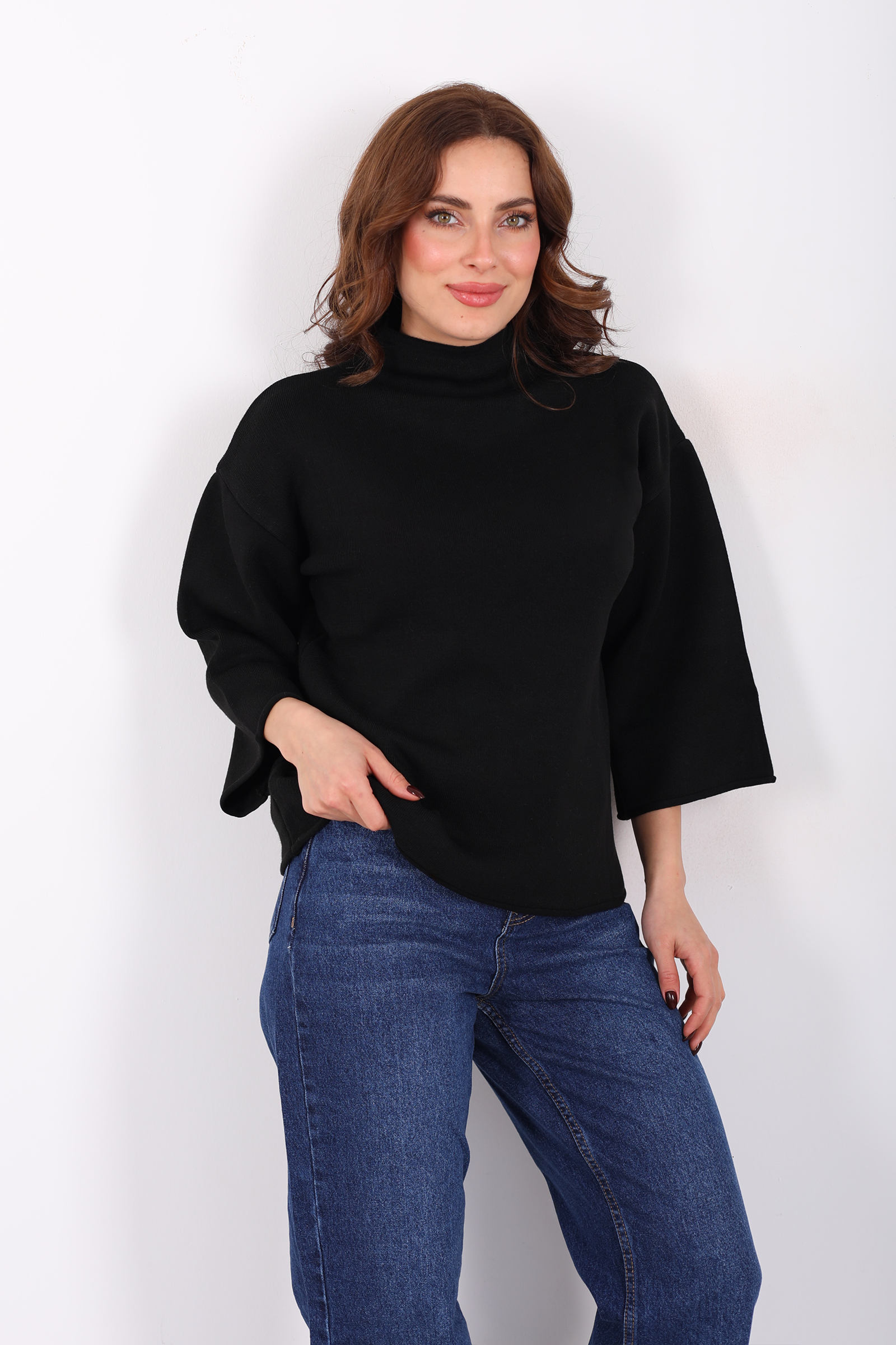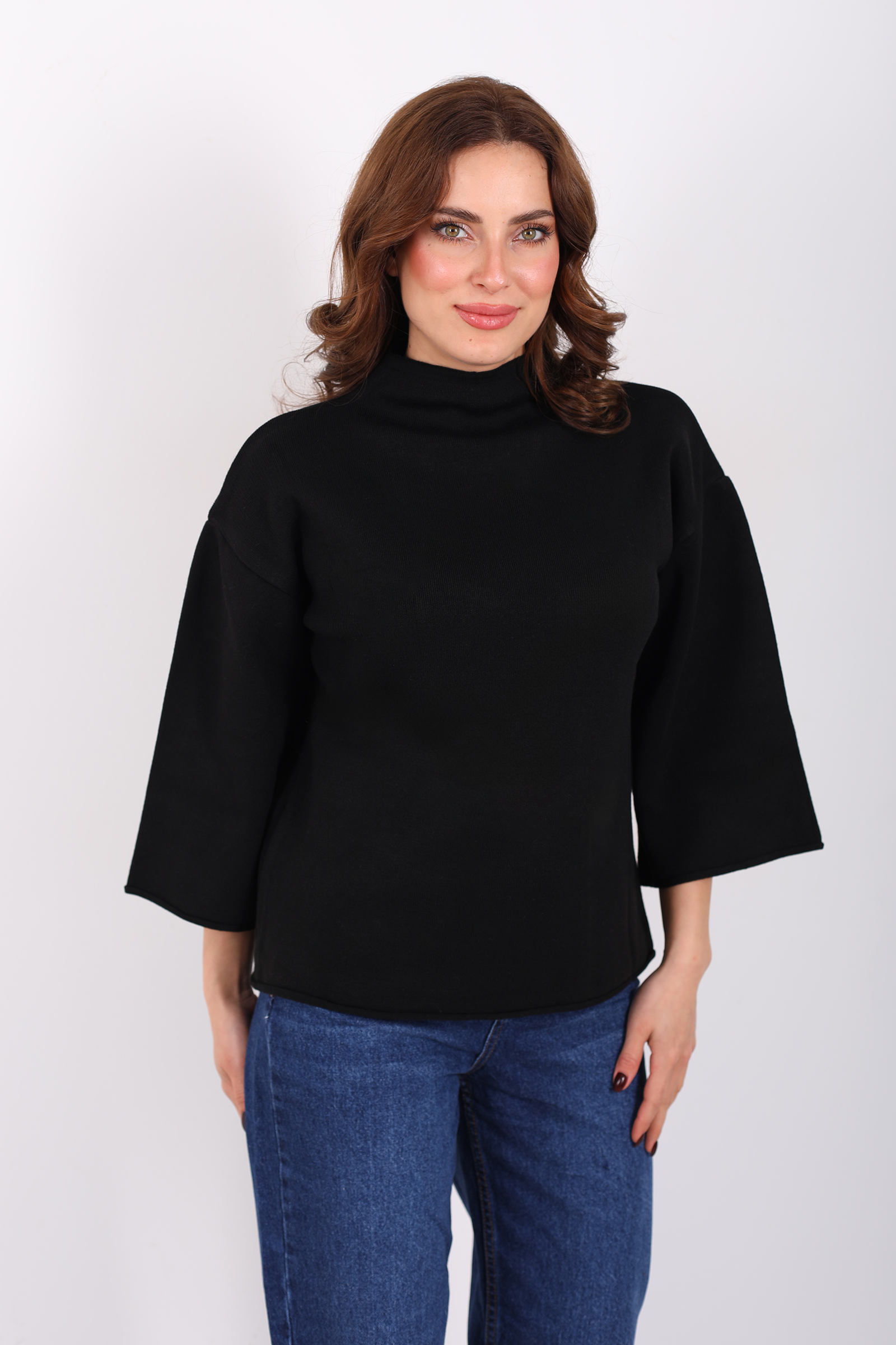 Dik Yaka Yarasa Kol Siyah Kadın Kazak