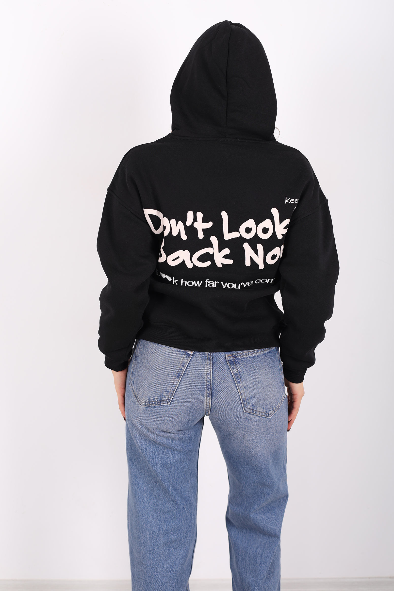 Sıradan sweatshirt’ün ötesinde bir kimlik taşıyan bu arka baskılı siyah hoodie, sadece giymek için değil göz alıcı bir tavır için tasarlandı. Arkadaki büyük “Don’t Look On” ifadesi, klasik minimalizmin dışına çıkarak stilini açıkça duyuran bir mesaj haline gelir: Etrafındaki dünyaya bakışının bir parçası olarak kendi ifadenle yürüyorsun.