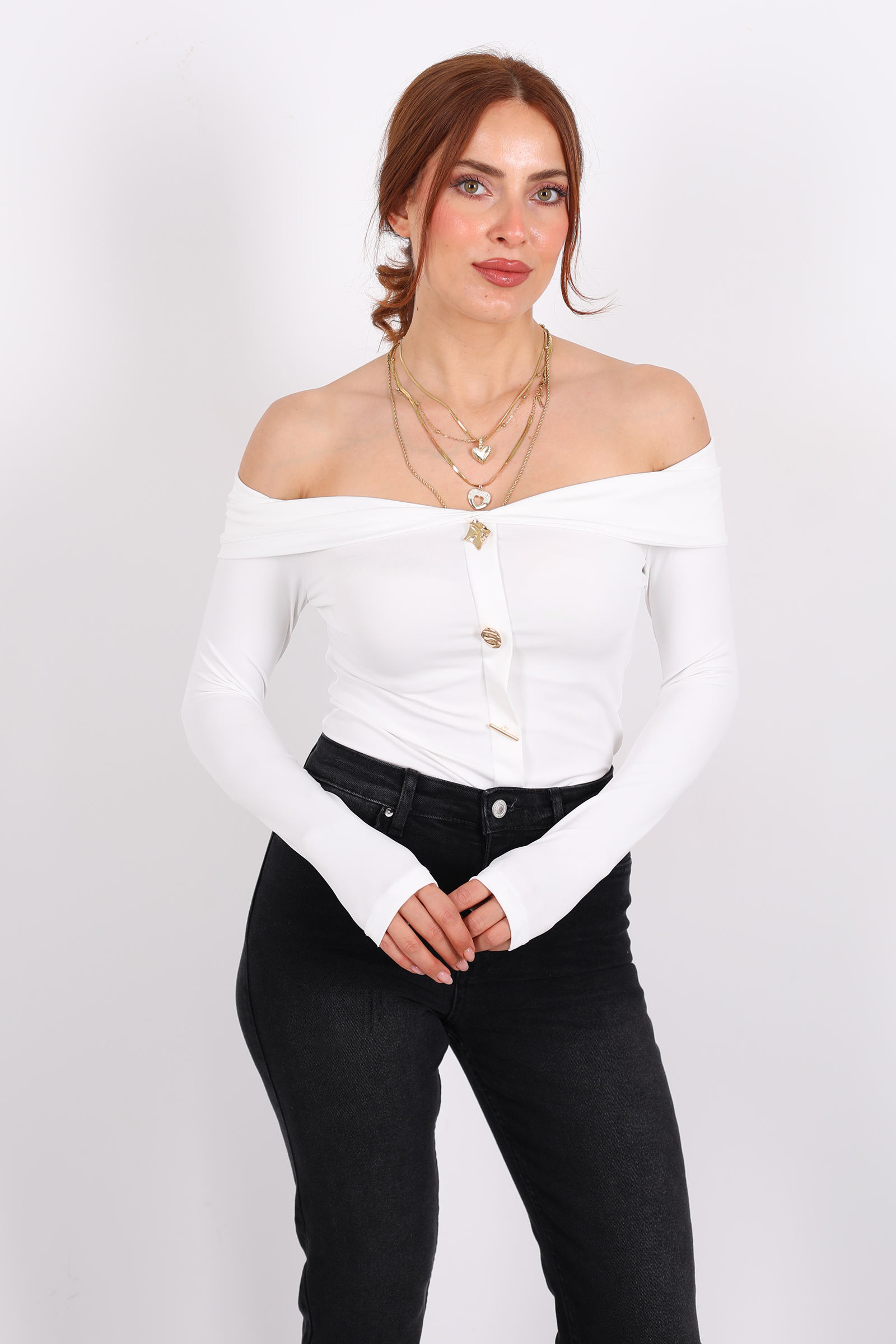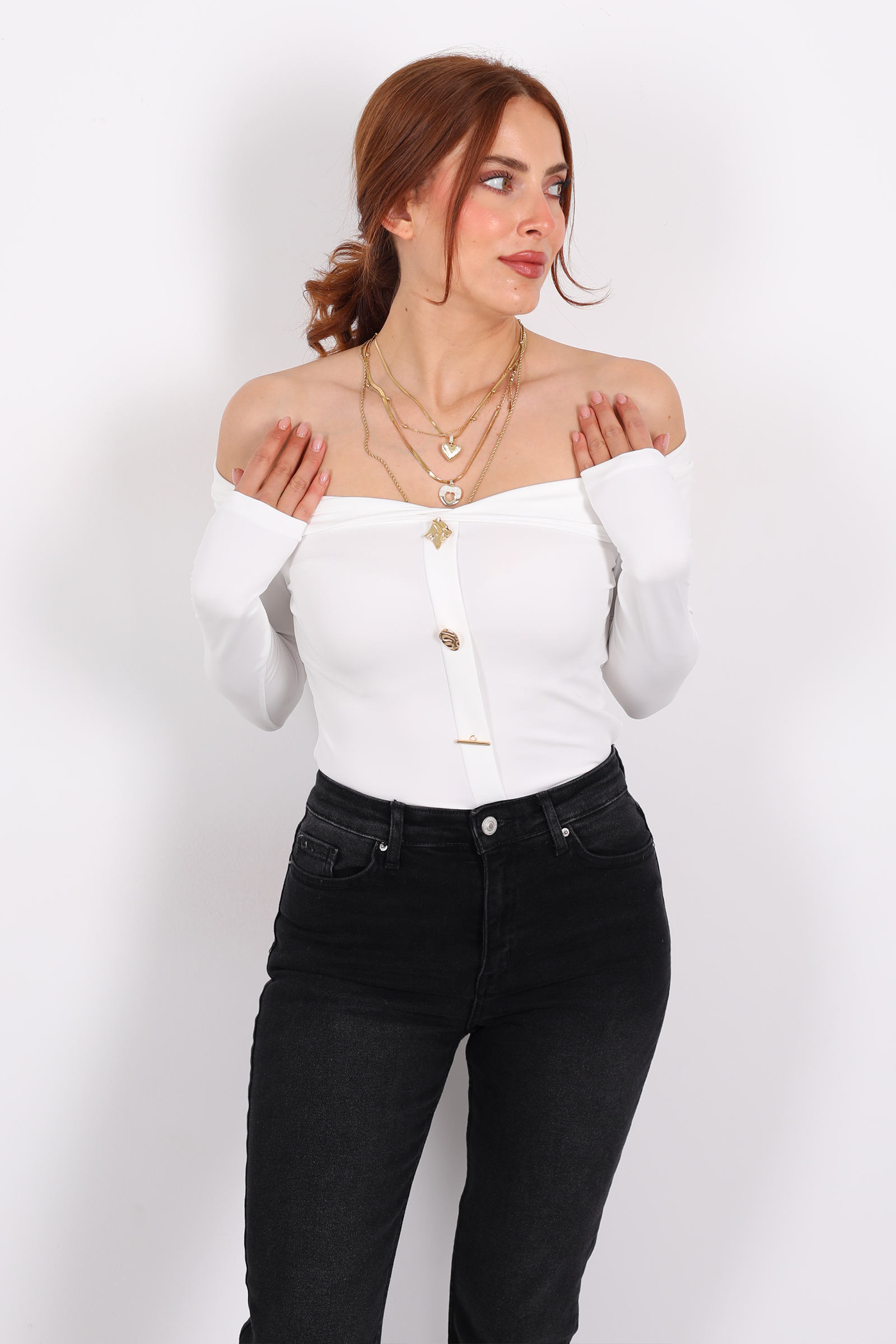 Zarafetin sadeliğiyle dikkat çeken bu beyaz Madonna yaka crop, omuz hattını zarafetle ön plana çıkaran klasik bir kesime sahip. Düğme aksesuarı, modern ve feminen bir dokunuş kazandırırken, crop boyu bele hafif vurgu yaparak stilinize enerjik bir hava getiriyor.Bu parçayı yüksek bel pantolonlarla kombinleyerek gündüz için şehirli ve rahat bir hava yaratabilir, akşam içinse şık bir etek ve topuklu ayakkabılarla iddialı bir görünüm elde edebilirsiniz.