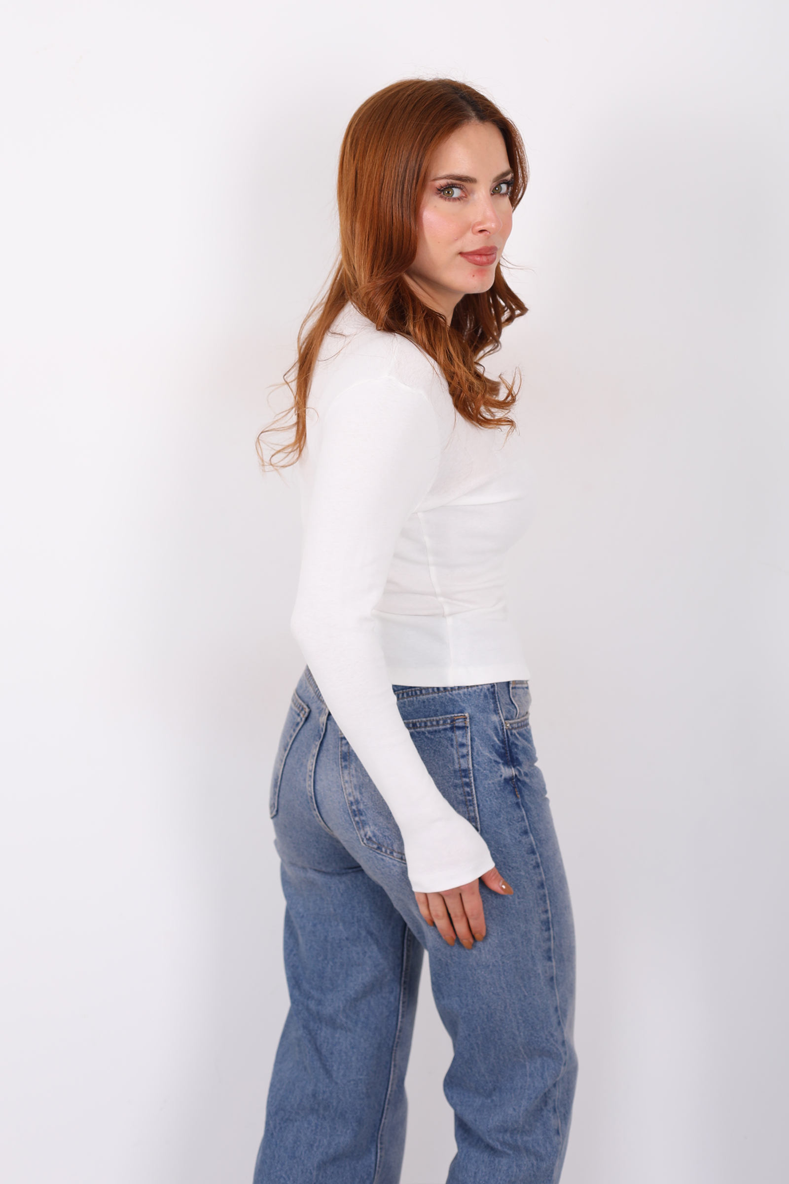 Bisiklet Yaka Yanları Büzgülü Beyaz Kadın Body