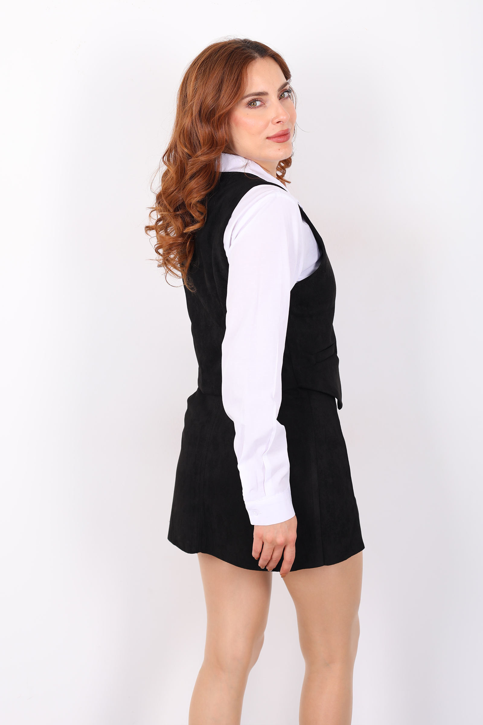 Kalp Yaka Siyah Kadın Düğmeli Yelek