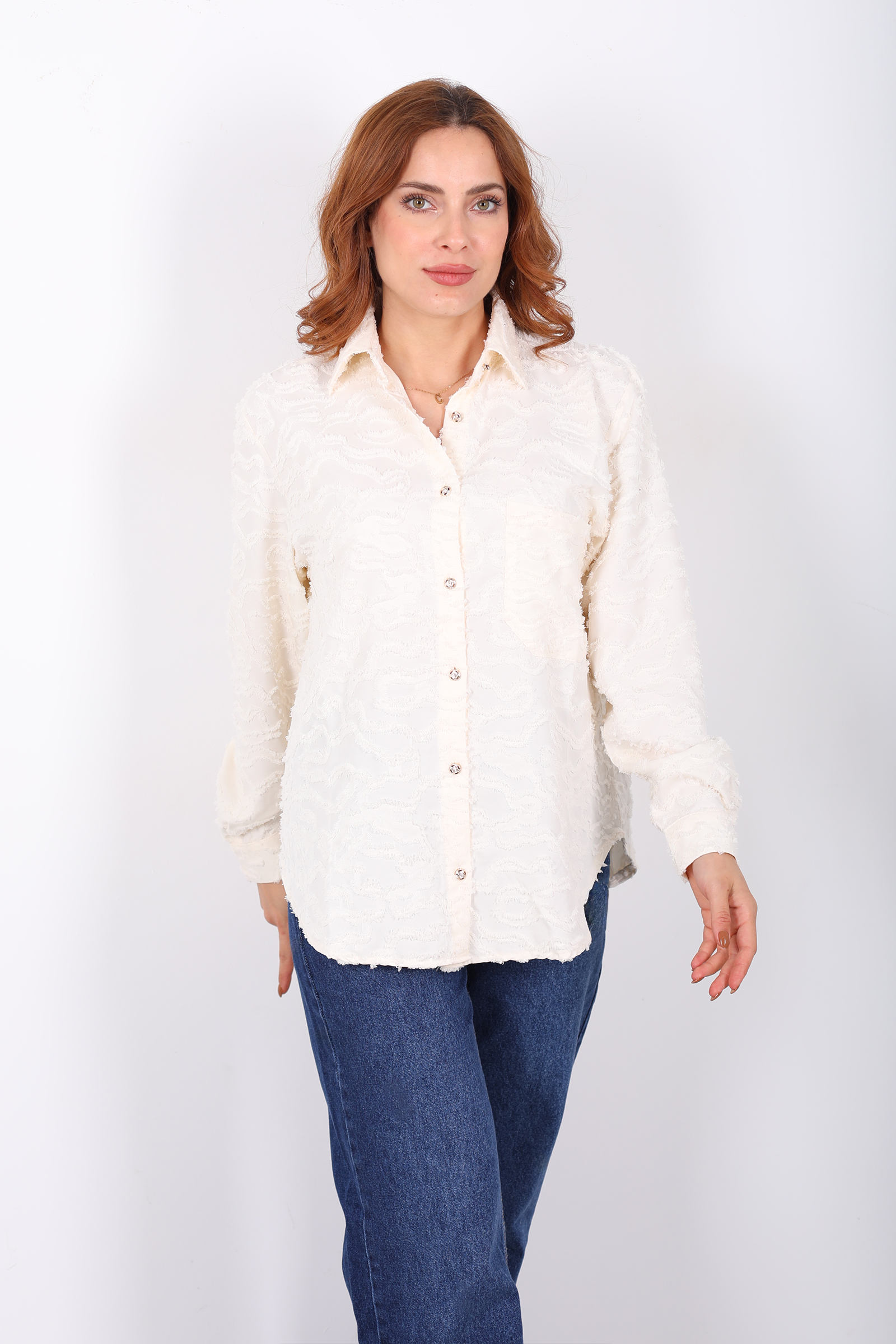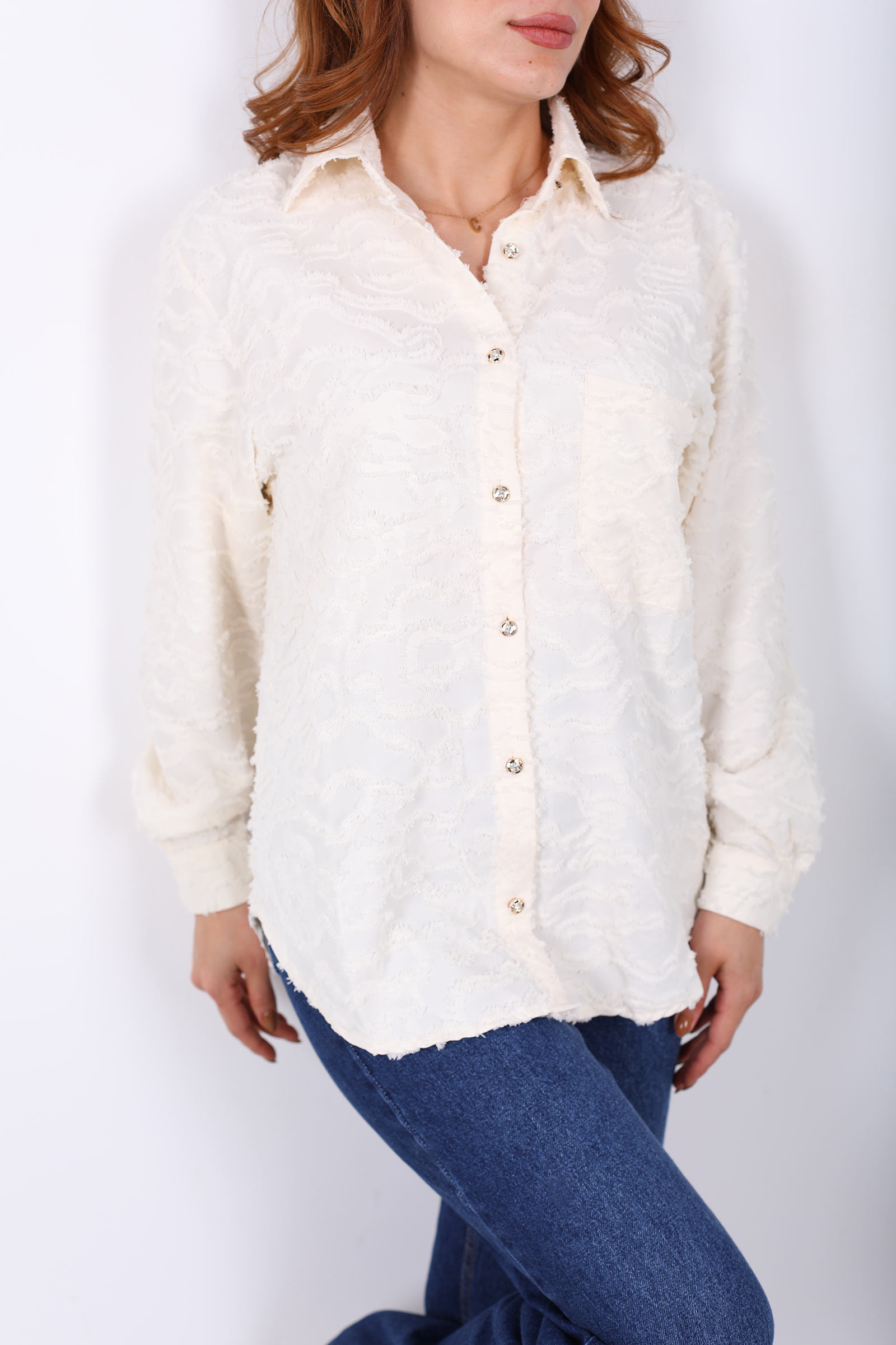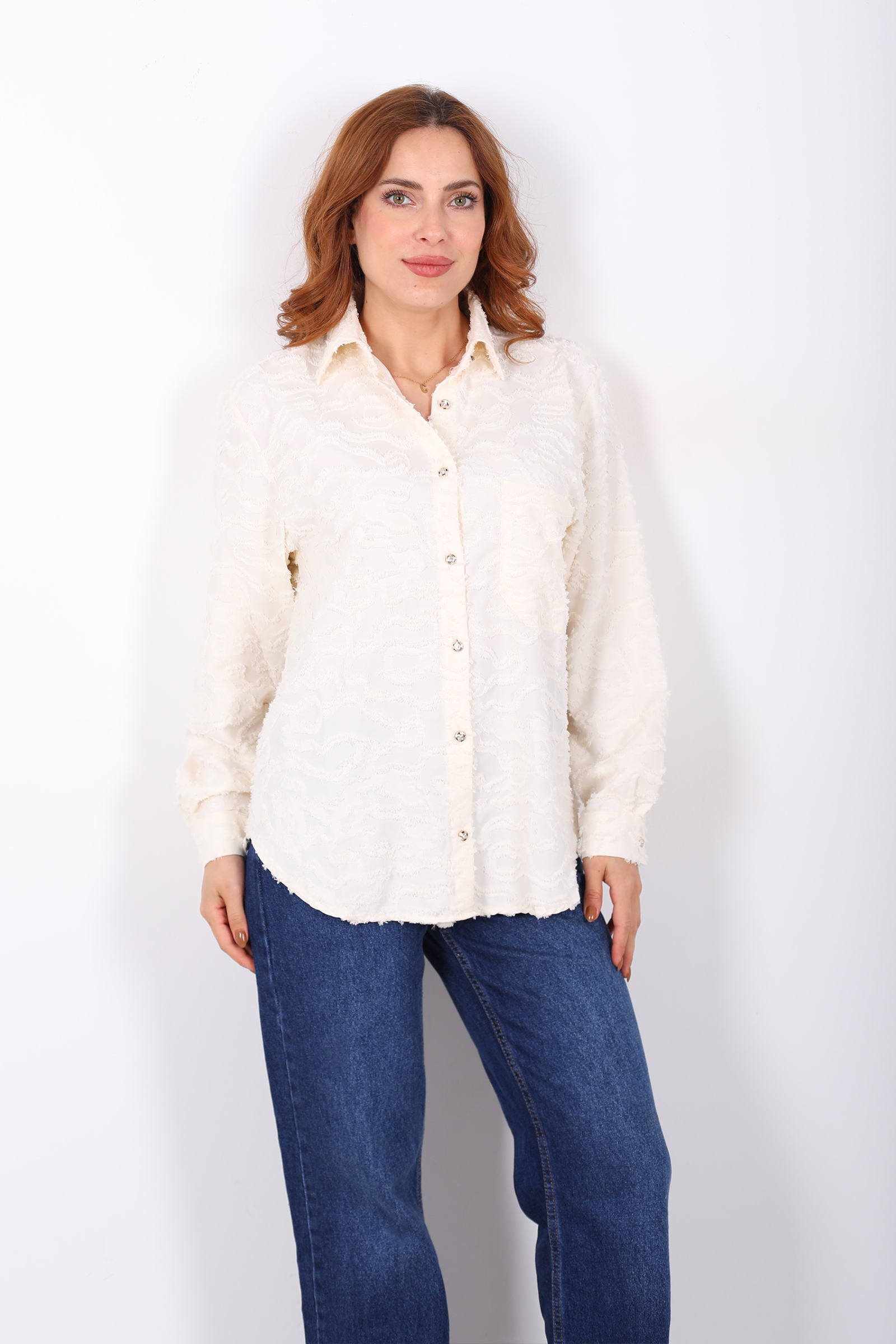 Düğmeli Krem Kadın Jakarlı Gömlek
