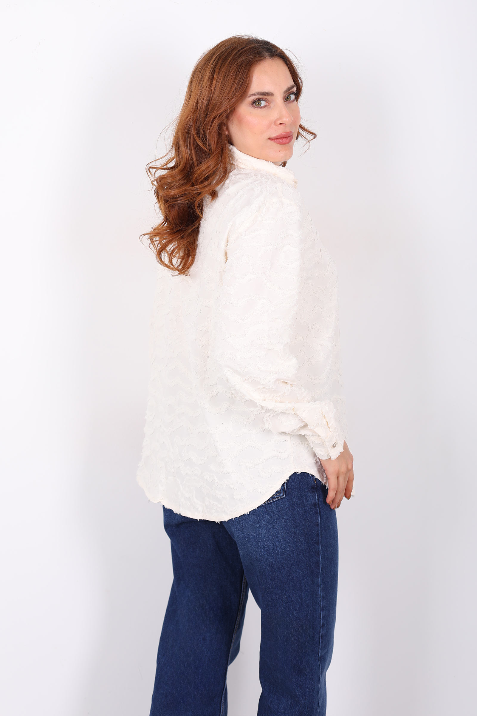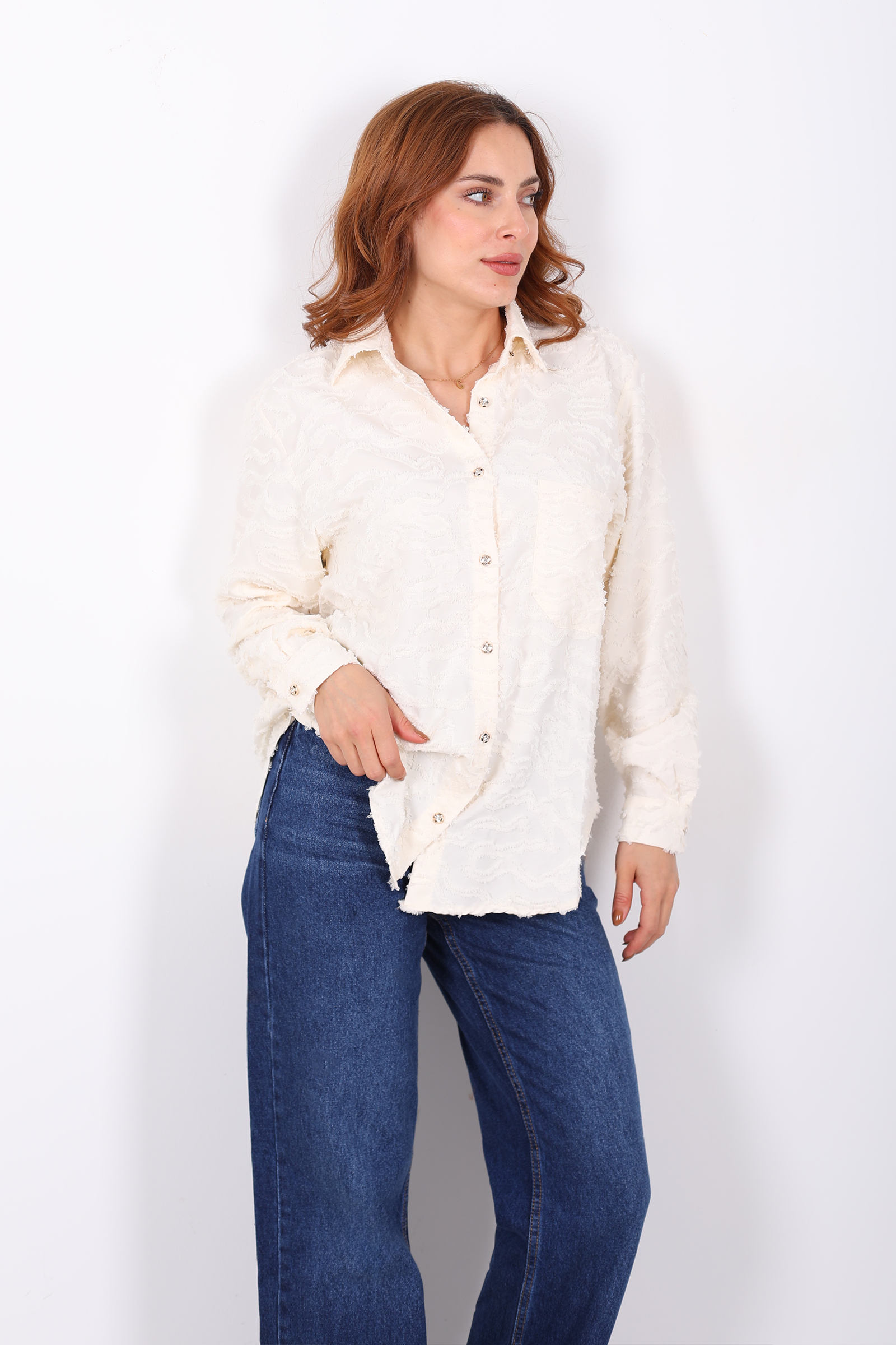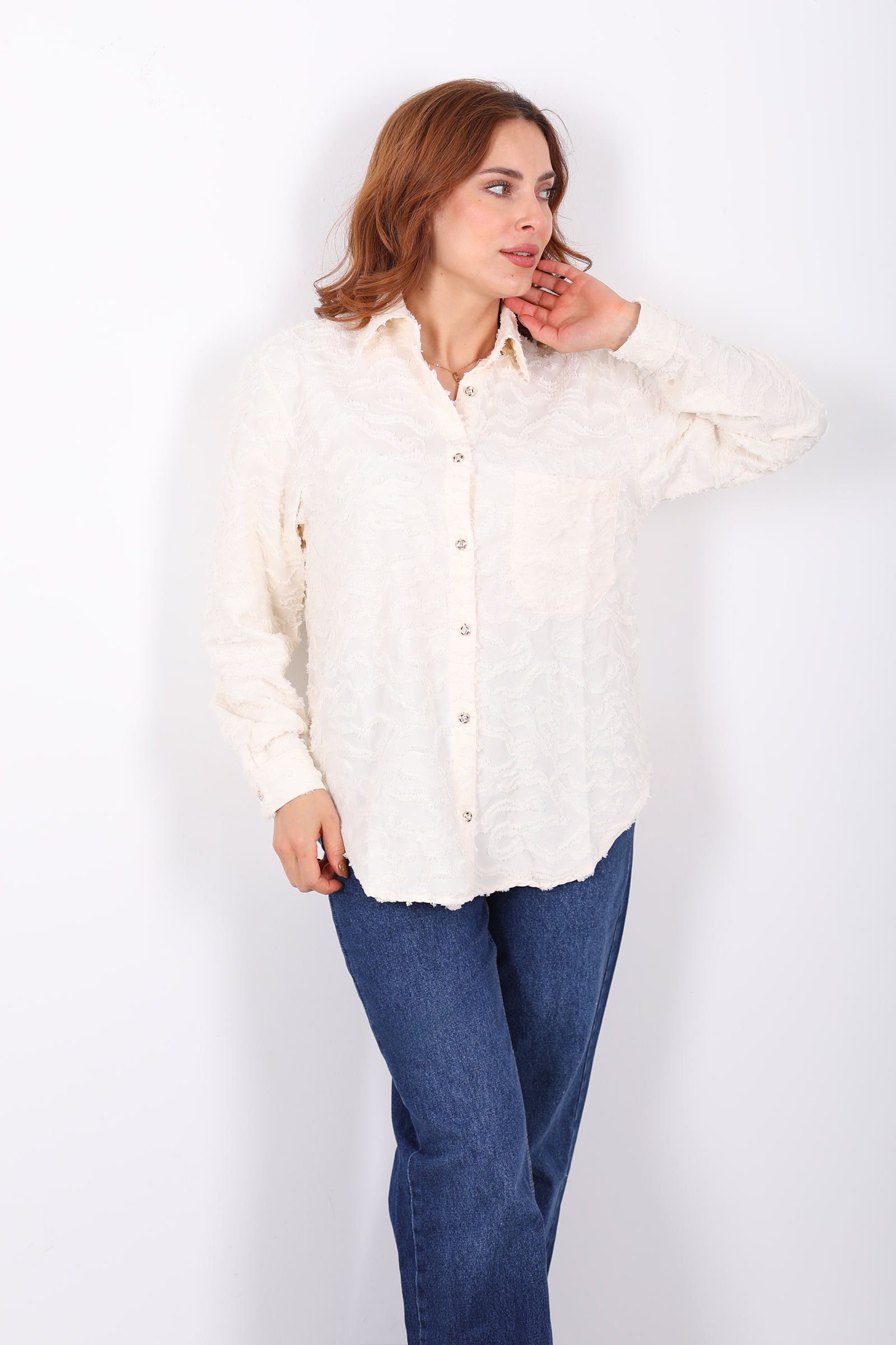 Düğmeli Krem Kadın Jakarlı Gömlek