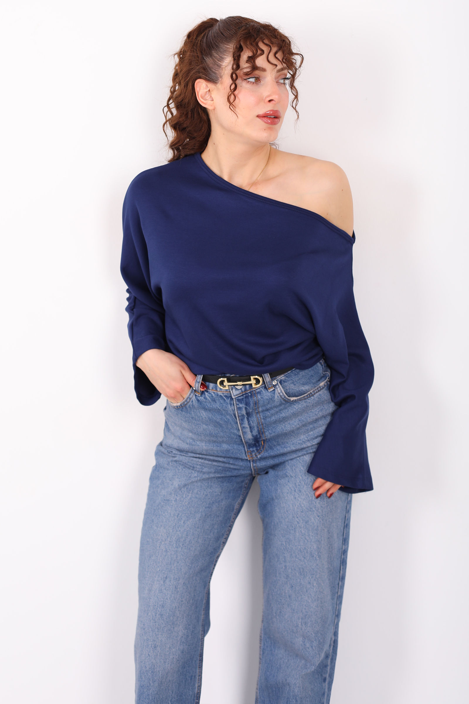 Yarasa kol formu, bluzun siluetini yumuşak ve rahat bir şekilde tamamlar; düşük omuz detayı ise omuz hattını zarifçe ortaya çıkarır. İnce kumaşı sayesinde nefes alan bir konfor sunarak mevsim geçişlerinde ideal bir tercih haline gelir. Jean, etek ya da kumaş pantolonlarla kusursuz uyum sağlayan bu bluz ile stiline hem sade hem çarpıcı bir ifade ekle.