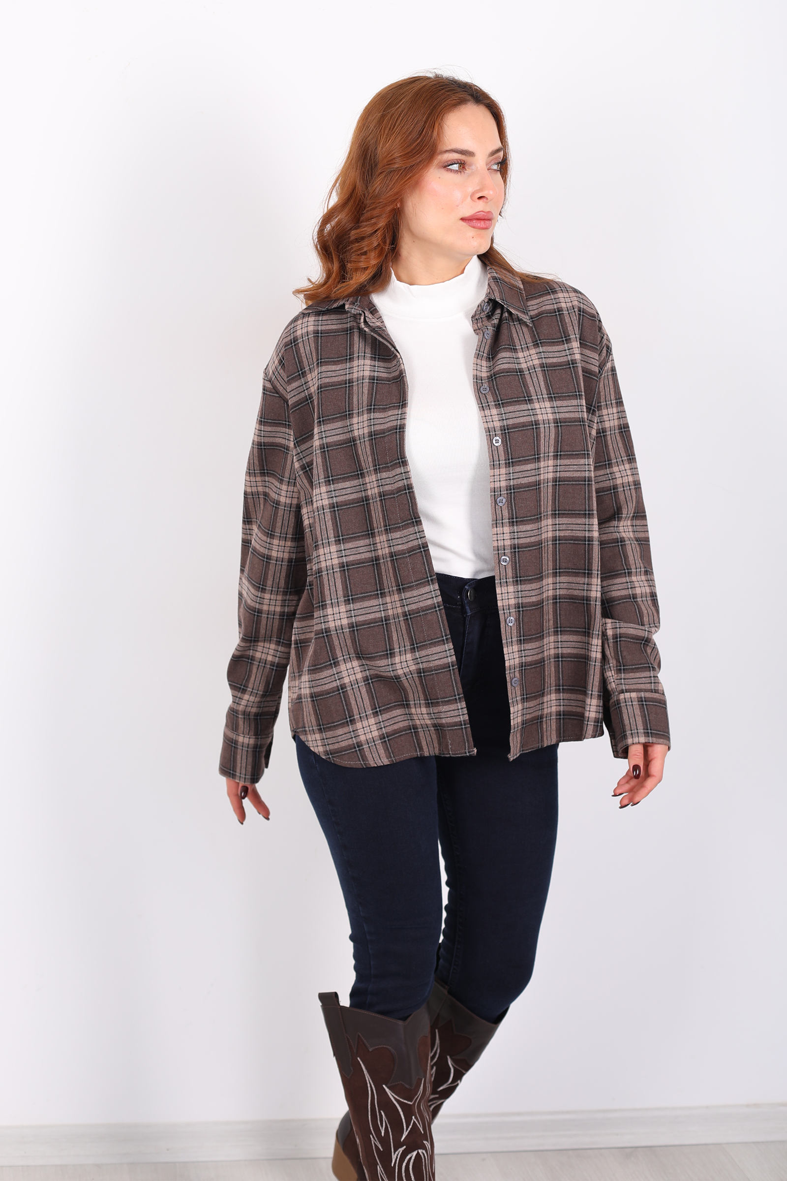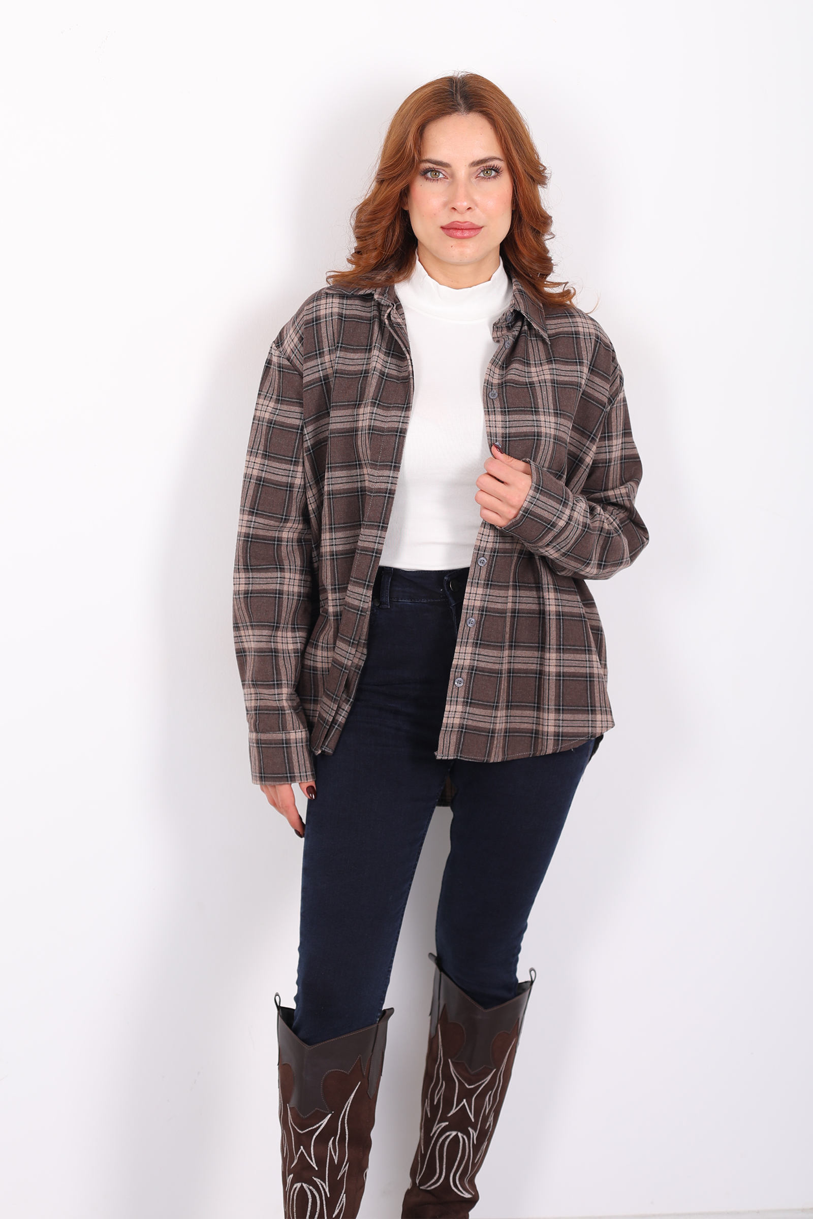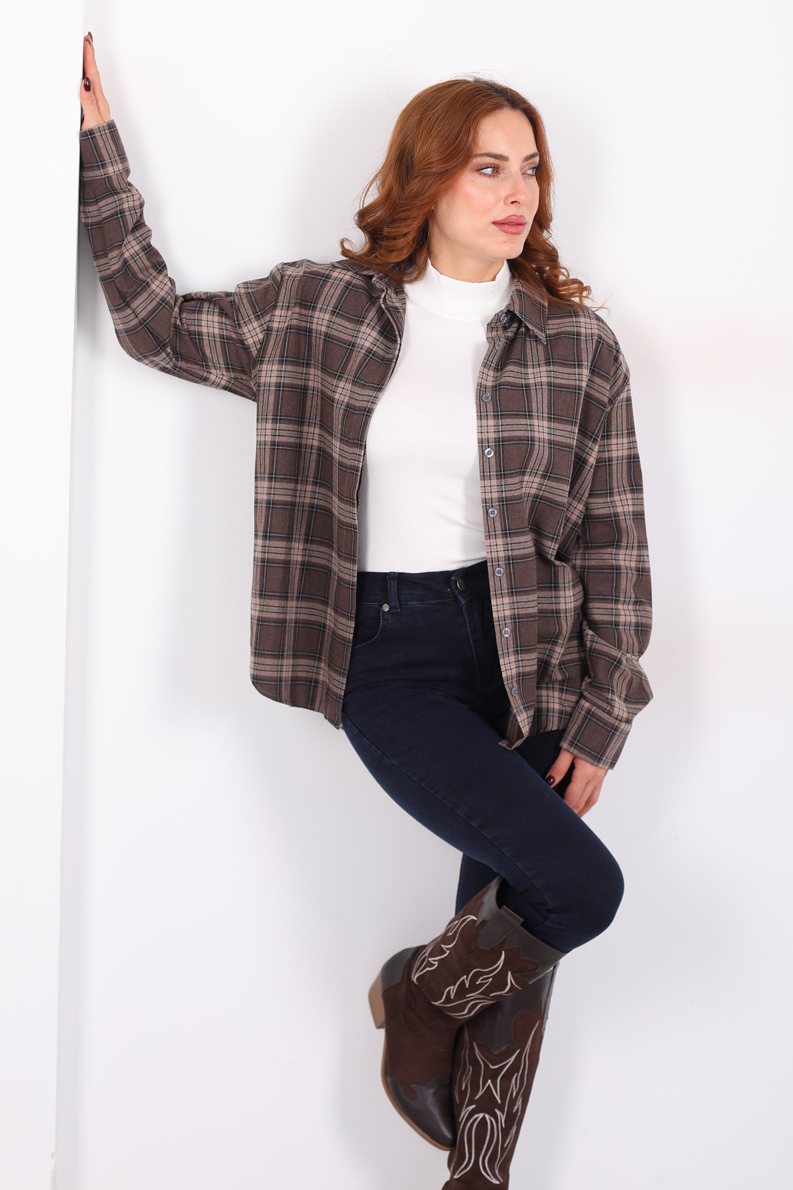 Ekose Desen Acı Kahve Kadın Oduncu Gömlek