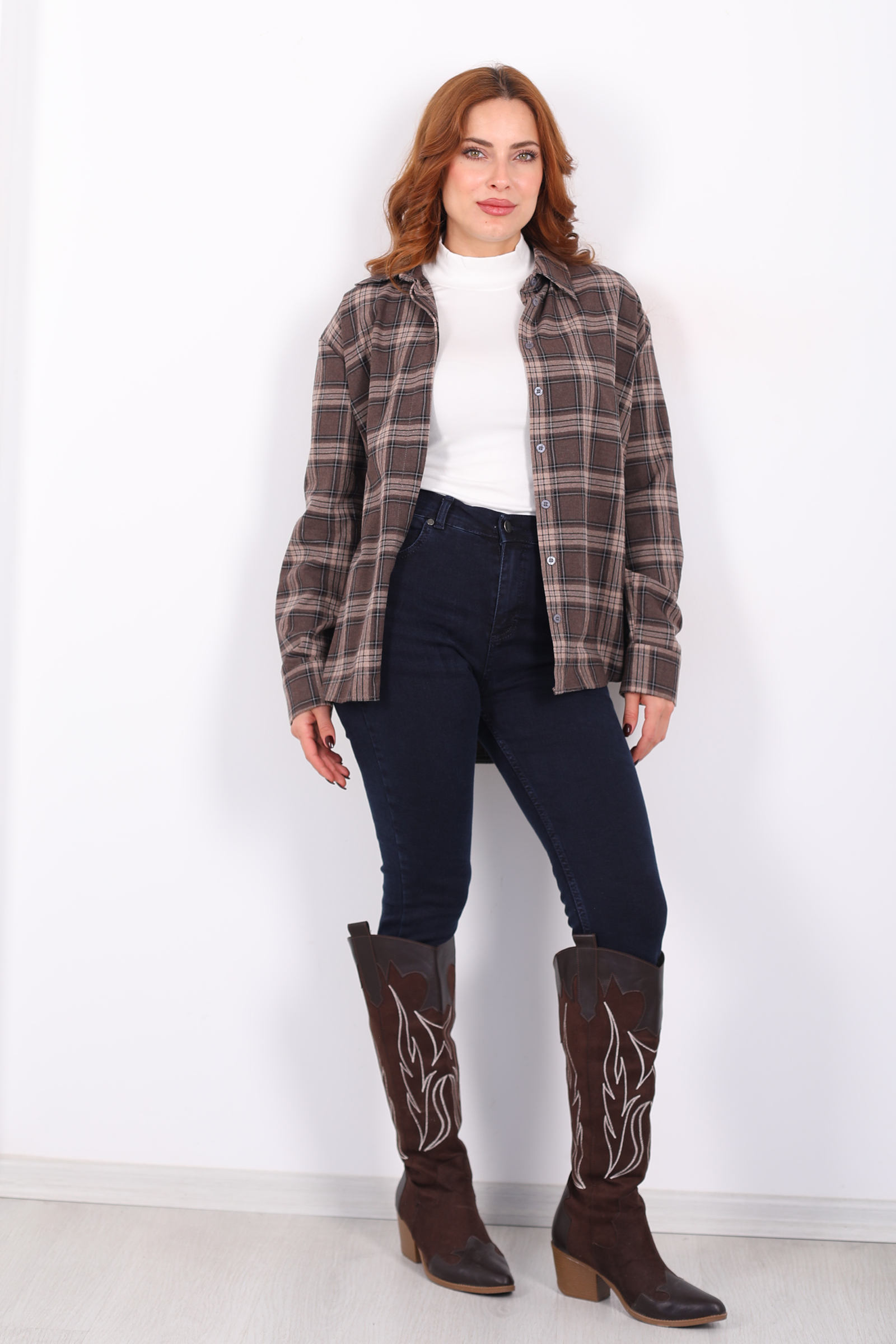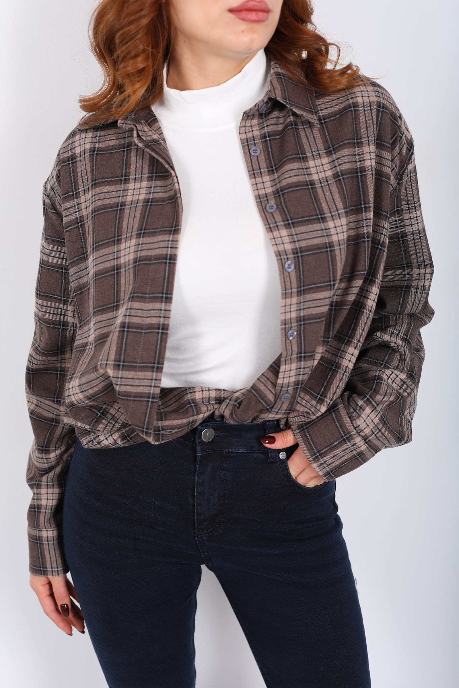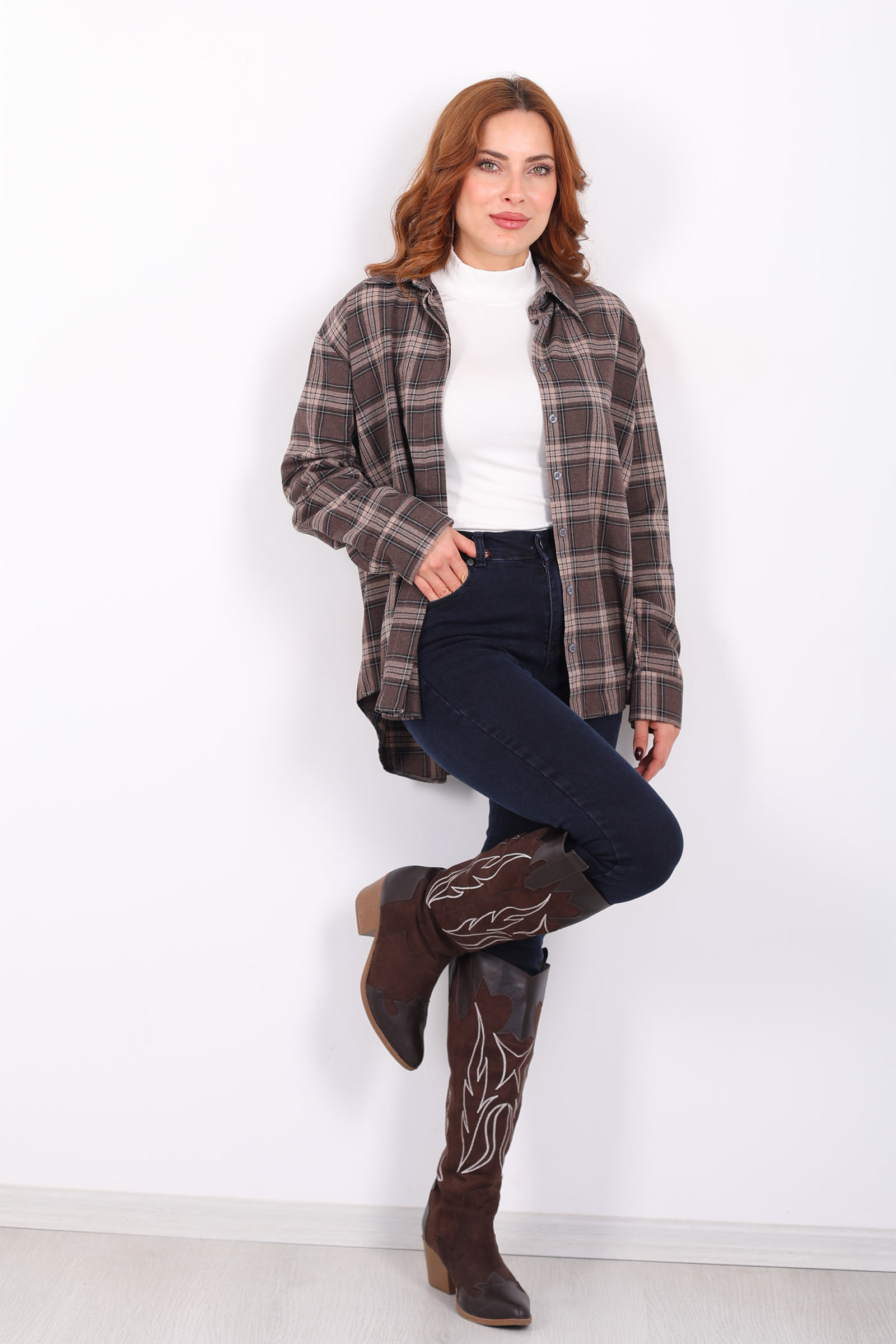 Ekose Desen Acı Kahve Kadın Oduncu Gömlek