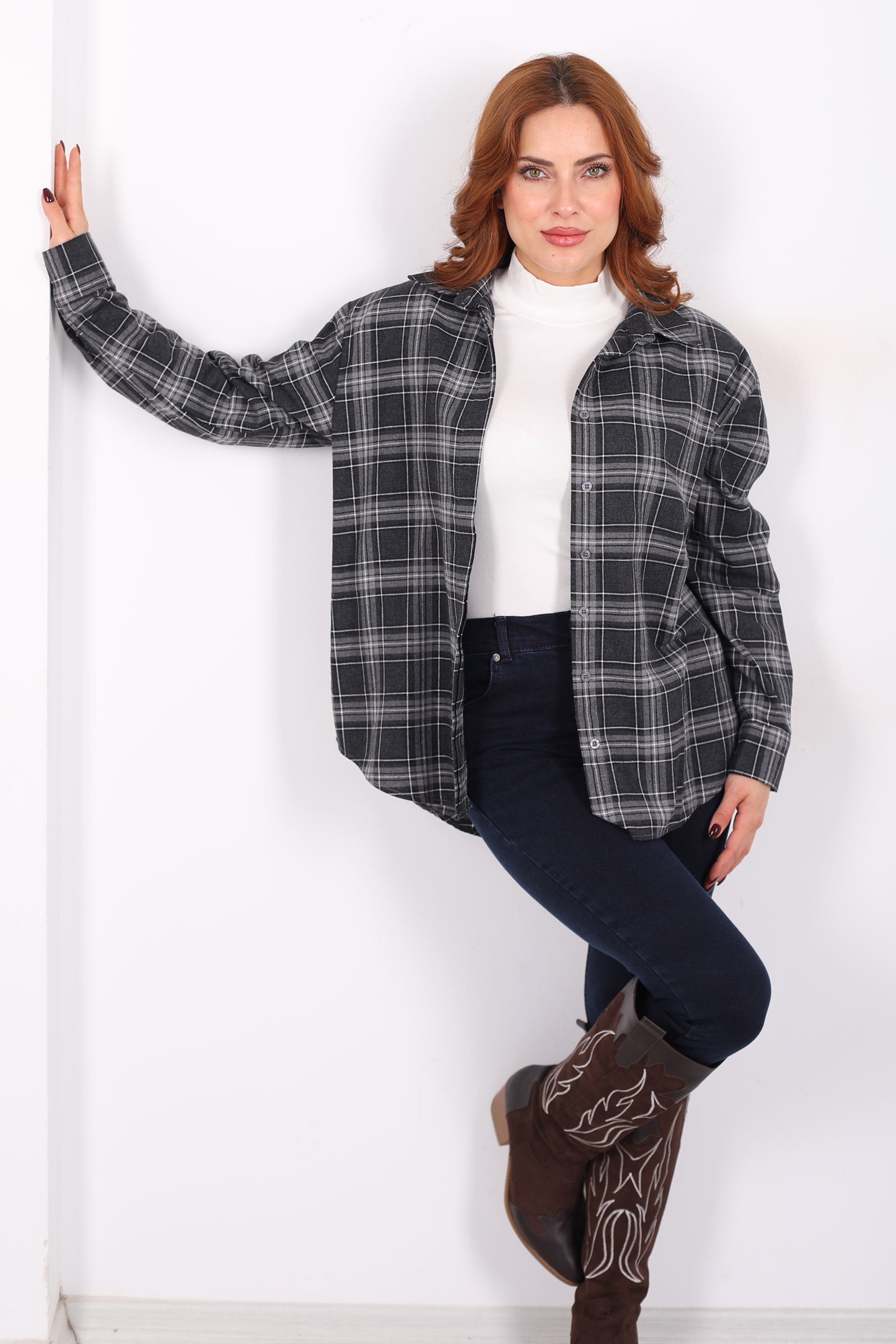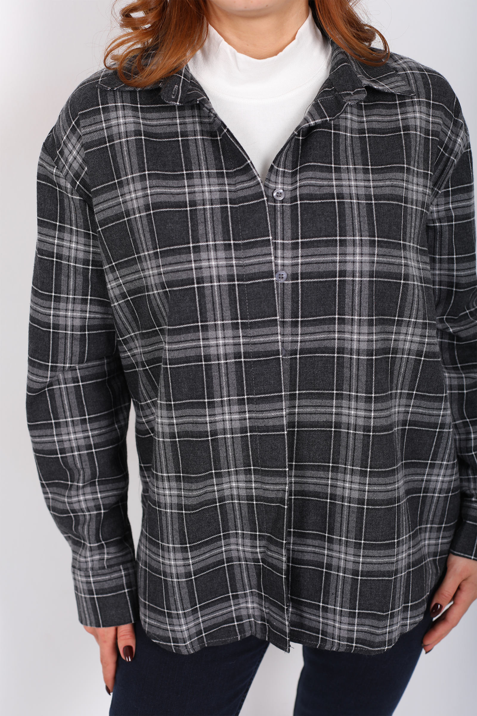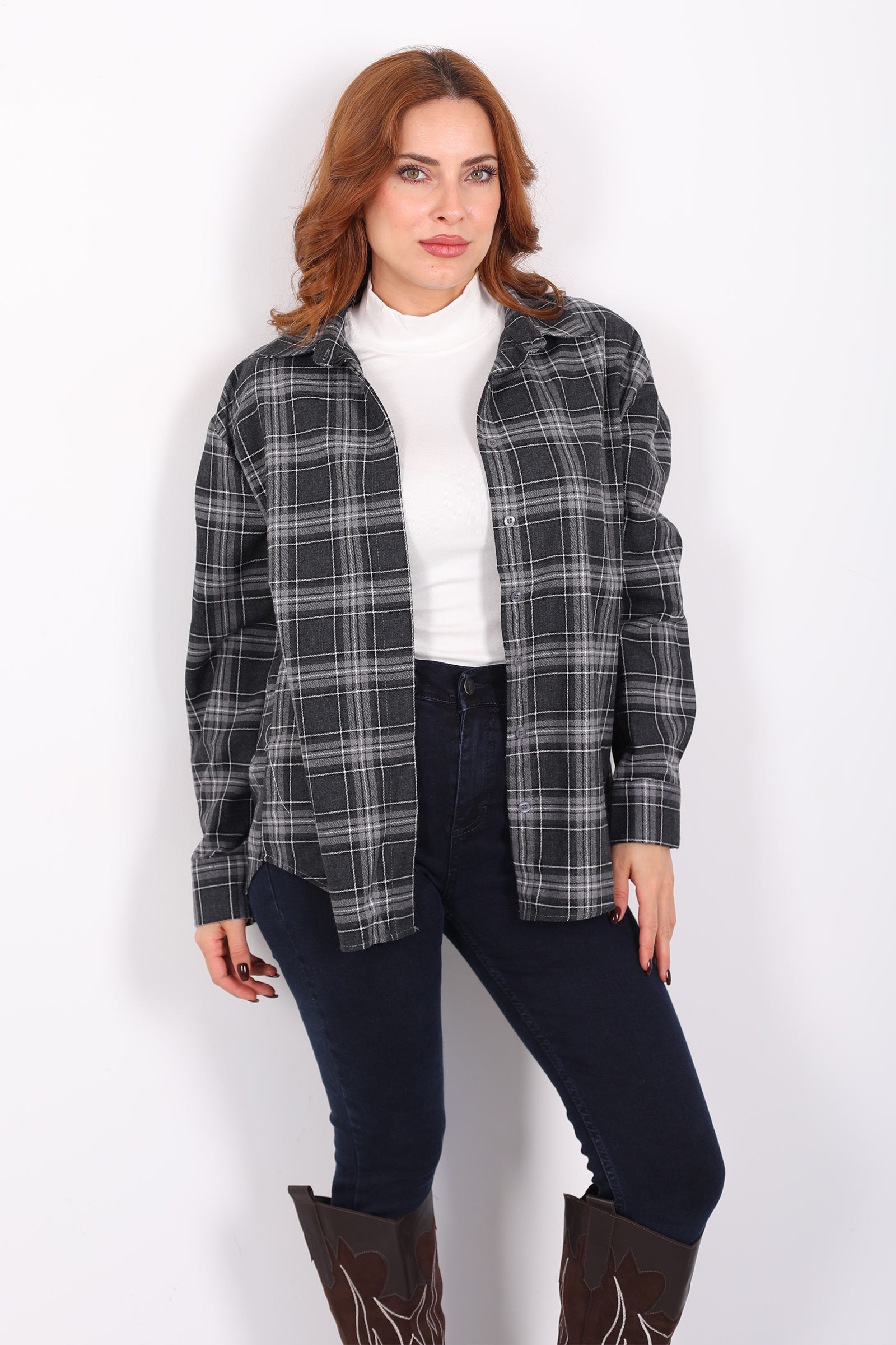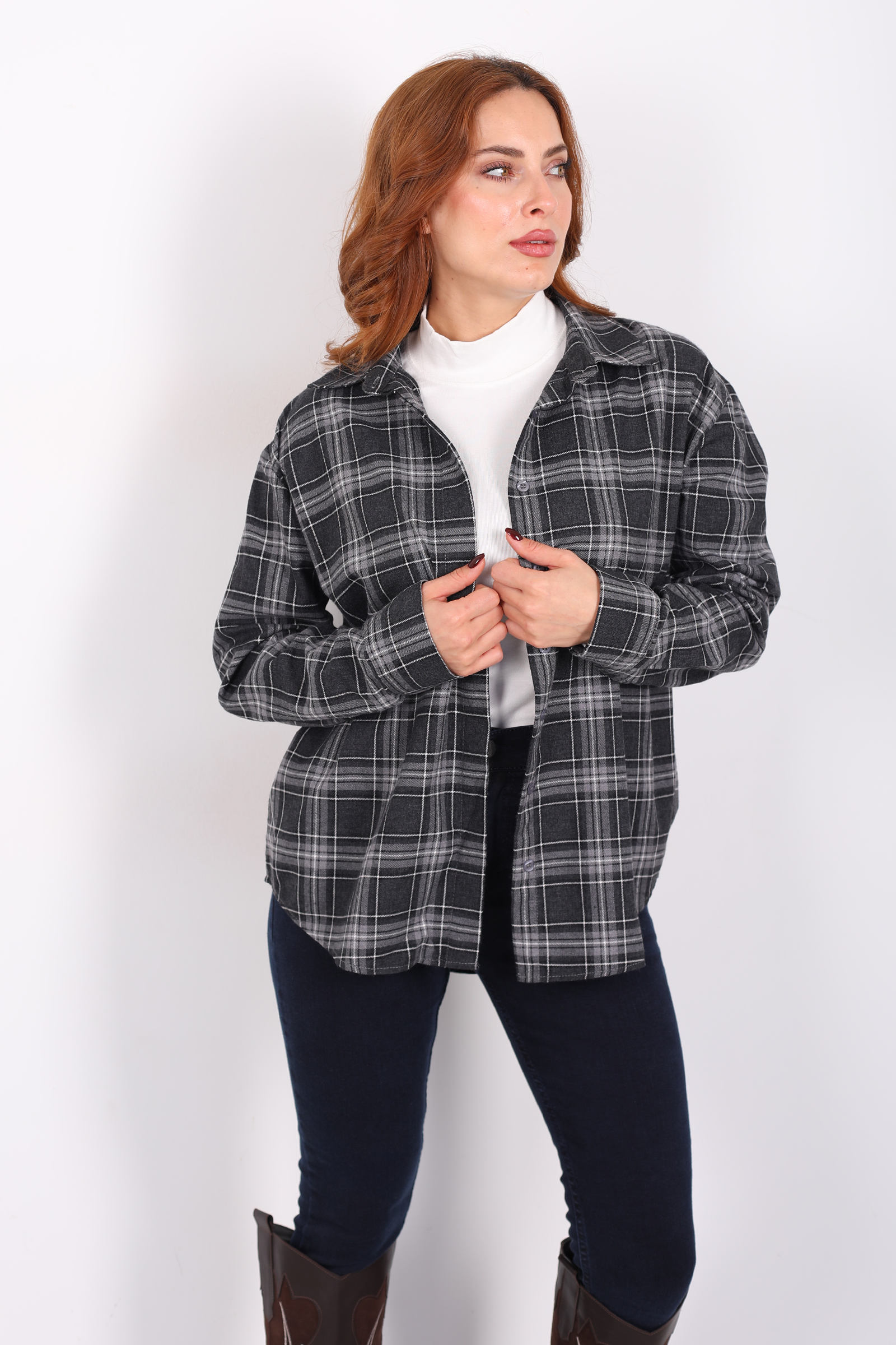 Ekose Desen Antrasit Kadın Oduncu Gömlek