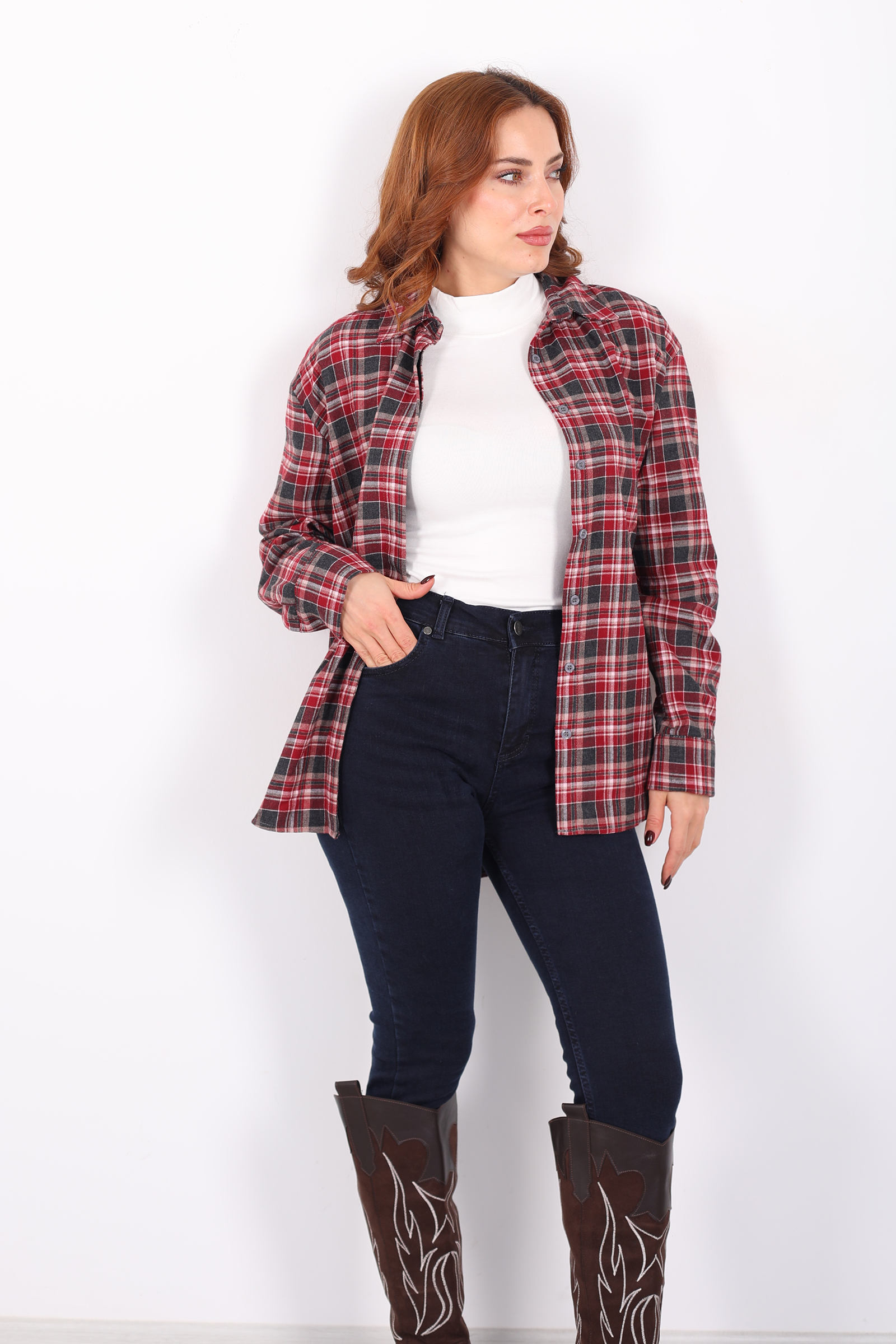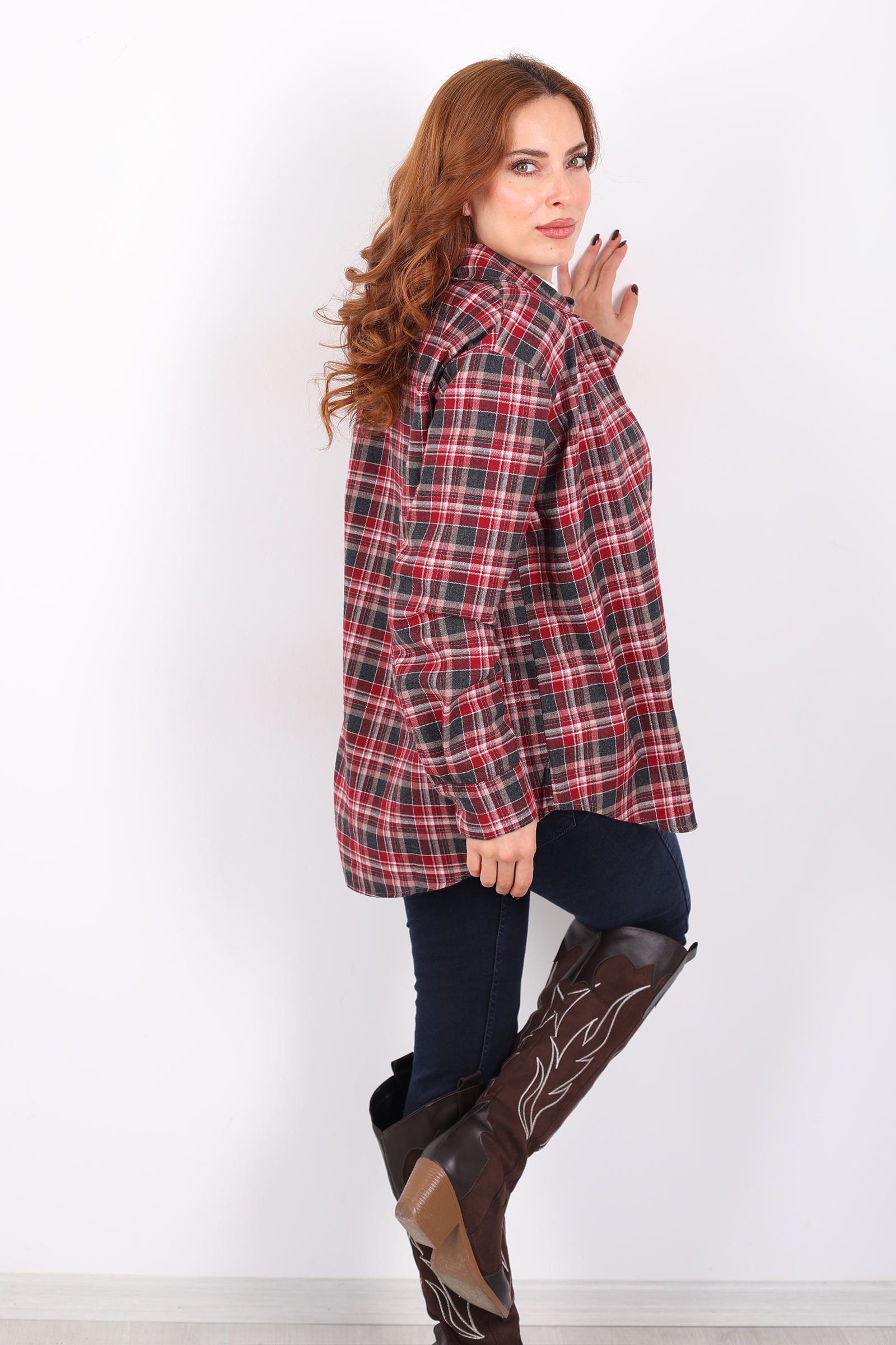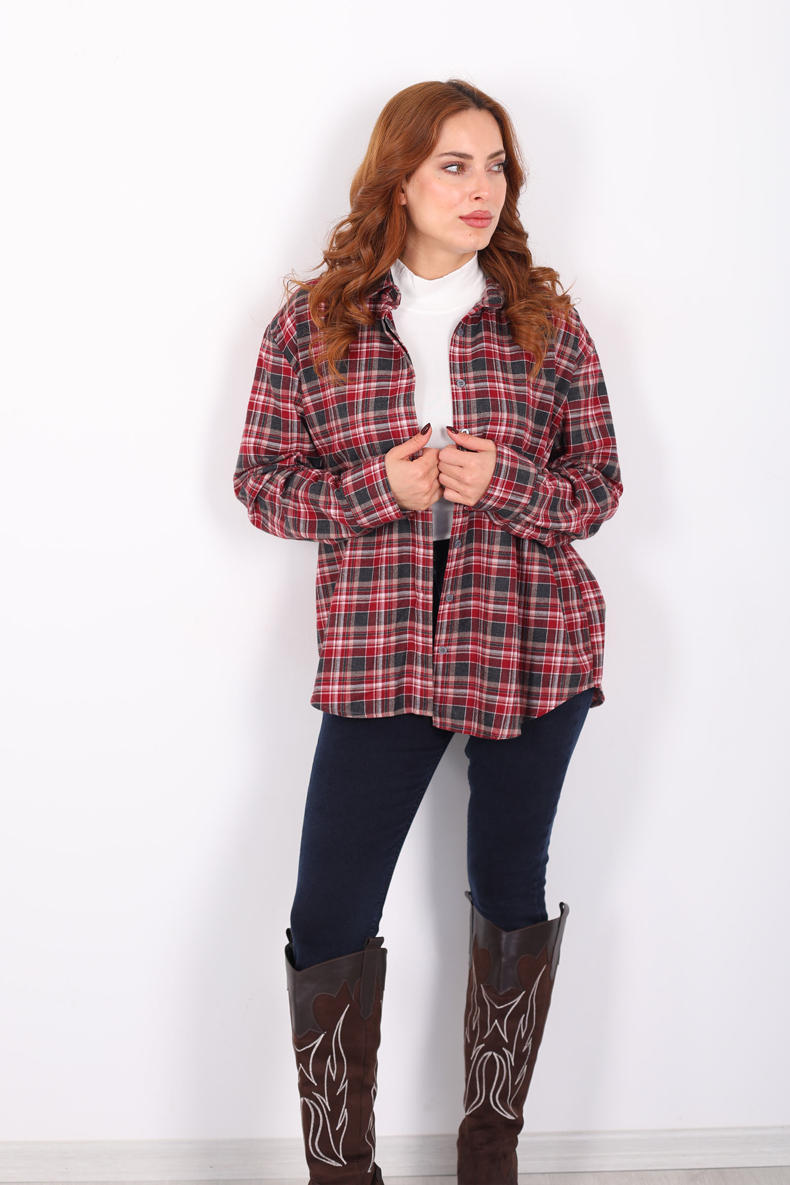 Ekose Desen Bordo Kadın Oduncu Gömlek