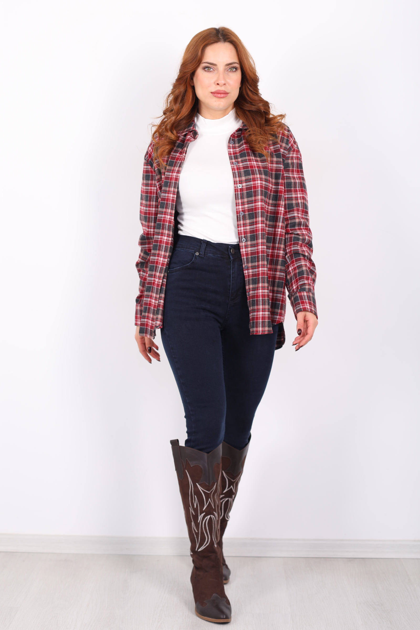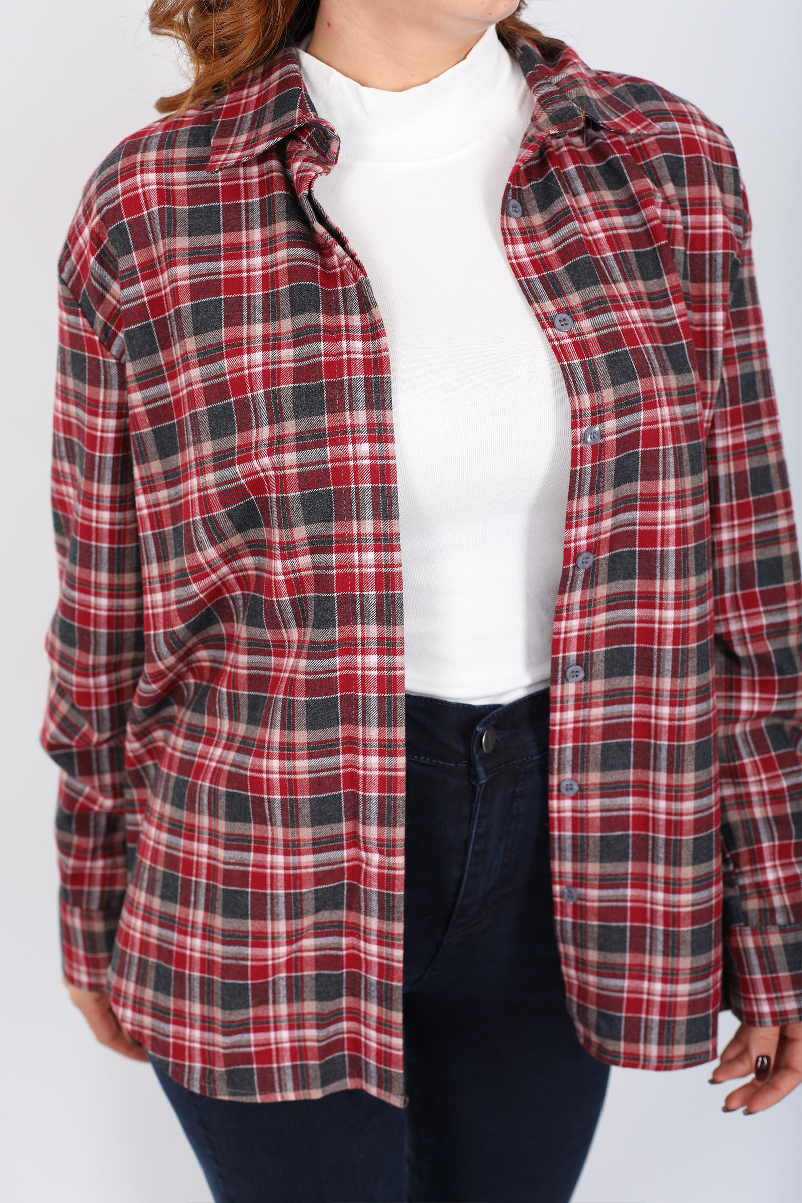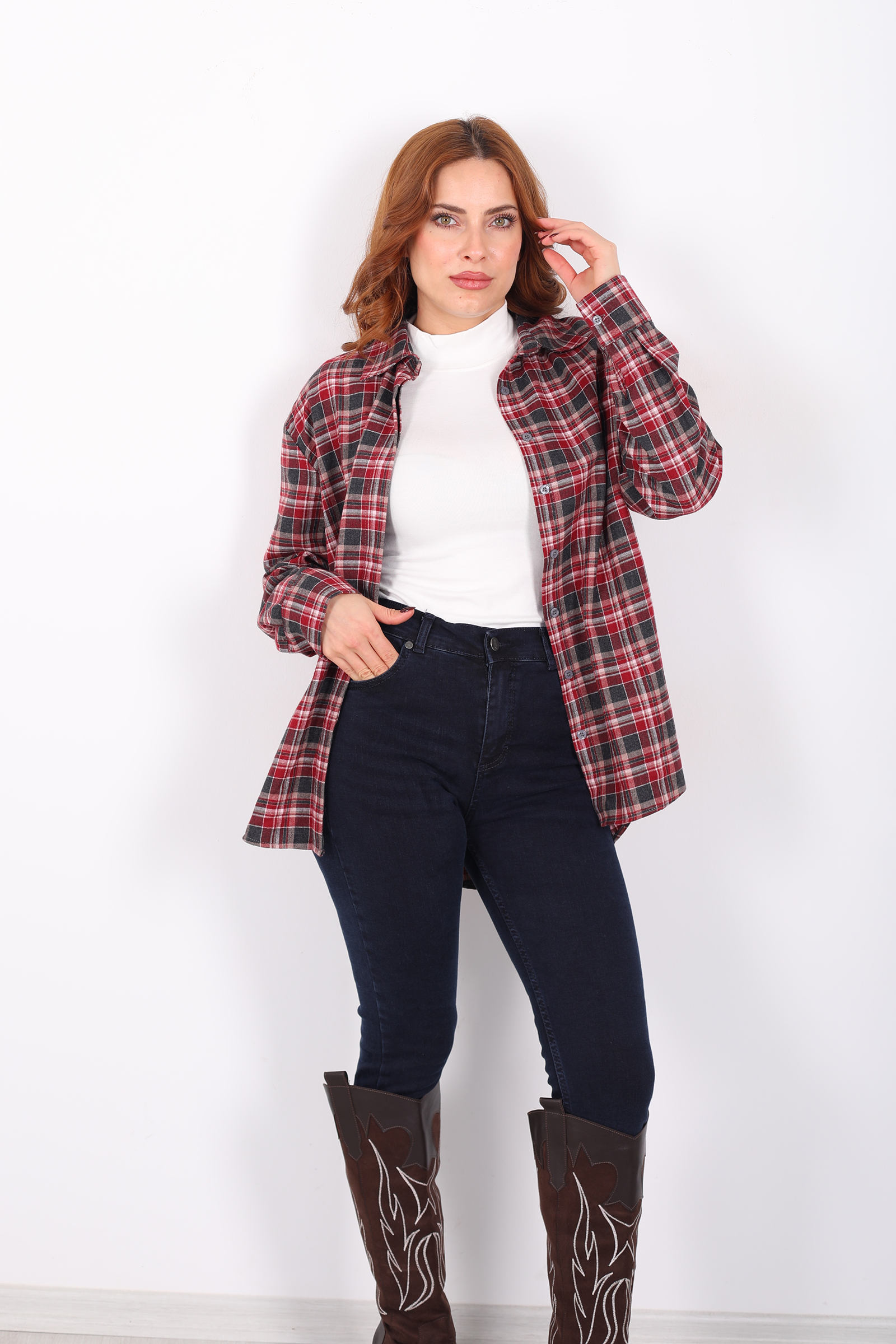 Ekose Desen Bordo Kadın Oduncu Gömlek