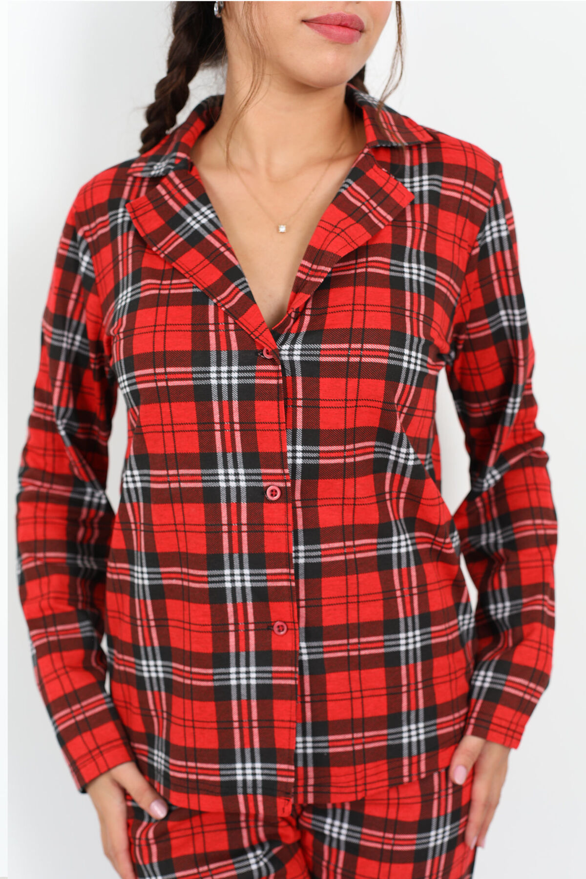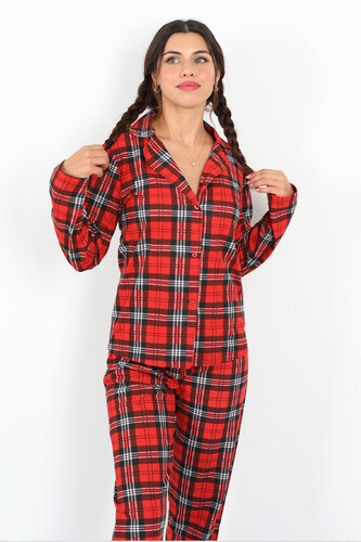 Şehrin renklerine meydan okuyan bu pijama takımı, kırmızının enerji dolu ışıltısını ekose deseniyle harmanlayarak hem şık hem iç ısıtan bir görünüm sunuyor. %40 pamuk ve %60 polyester kumaş içeriği sayesinde tenine nazik davranır ve konforlu bir uyku vadediyor. Geniş kalıbı ve özenli duruşuyla rahat ederken modern stilini evde bile ortama taşır.