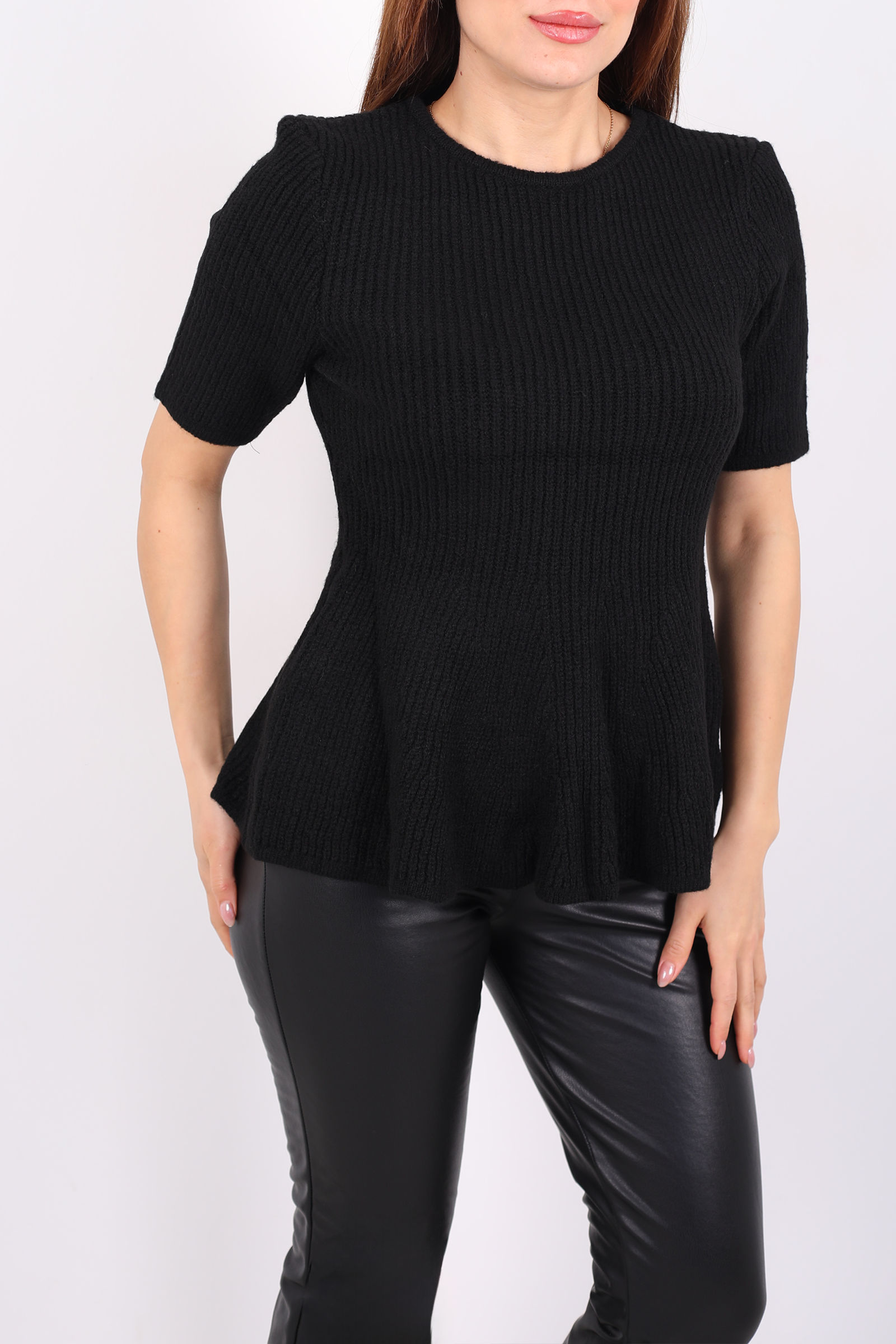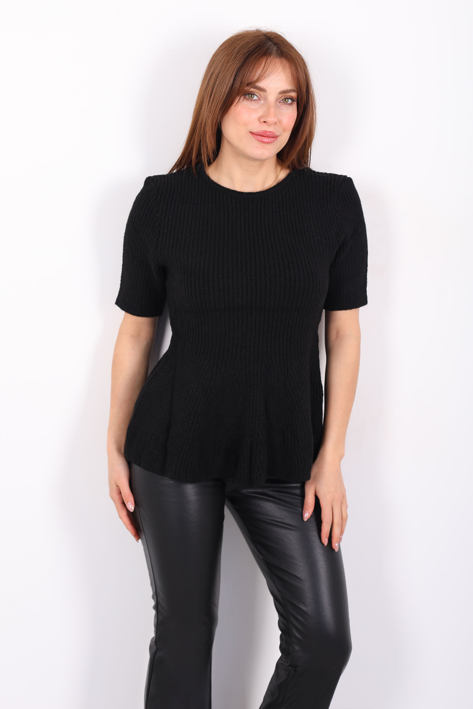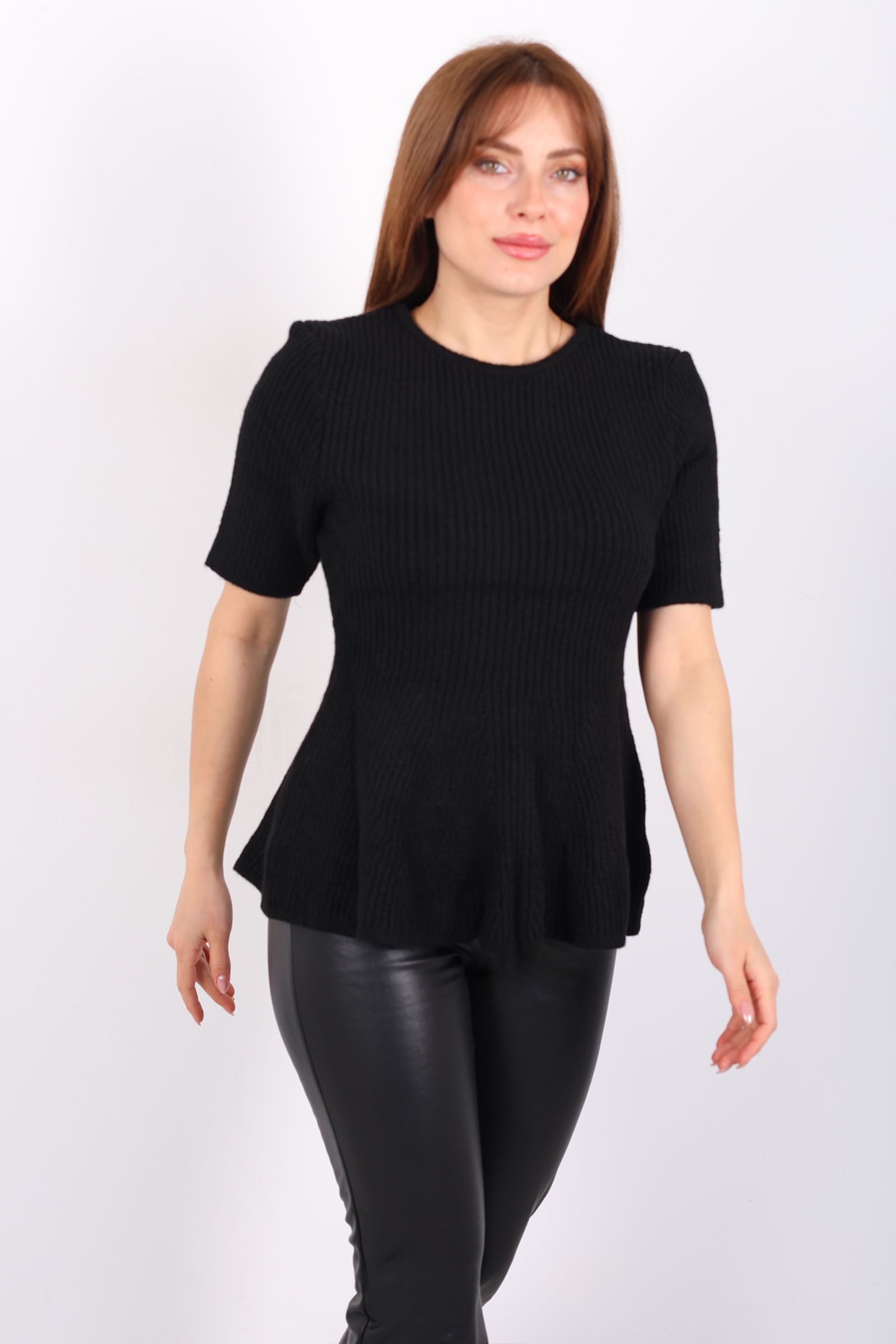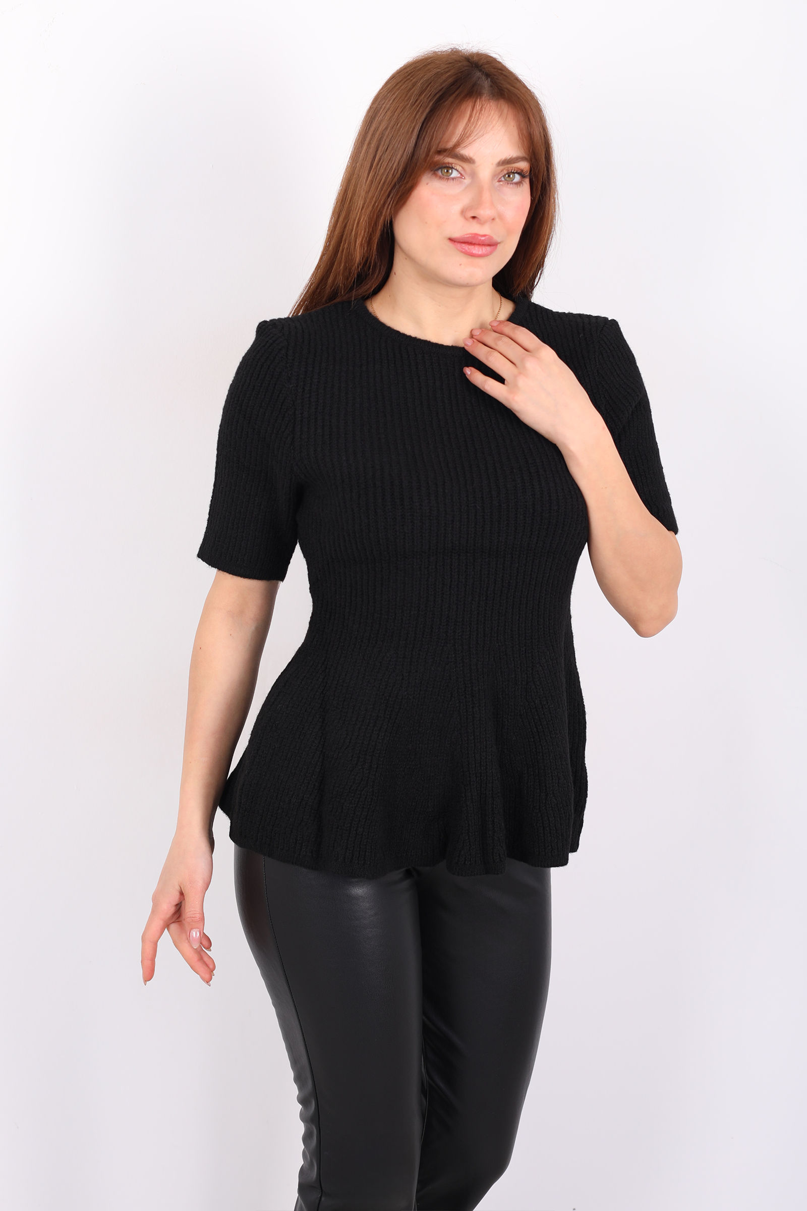 Siyah eteği volanlı kısa kol triko kazak, zarif ve modern tasarımıyla her kombine şıklık katar. Eteğindeki volan detayı, kazak tasarımına hareketli ve feminen bir hava eklerken, kısa kol kesimi rahat bir kullanım sunar. Yumuşak triko kumaşı, gün boyu konfor sağlar. Siyah rengi ise her ten rengiyle mükemmel uyum sağlar ve her mevsimde şıklığınızı artırır. Hem gündelik şıklığınızı hem de akşam kombinlerinizi tamamlayacak ideal bir parça.