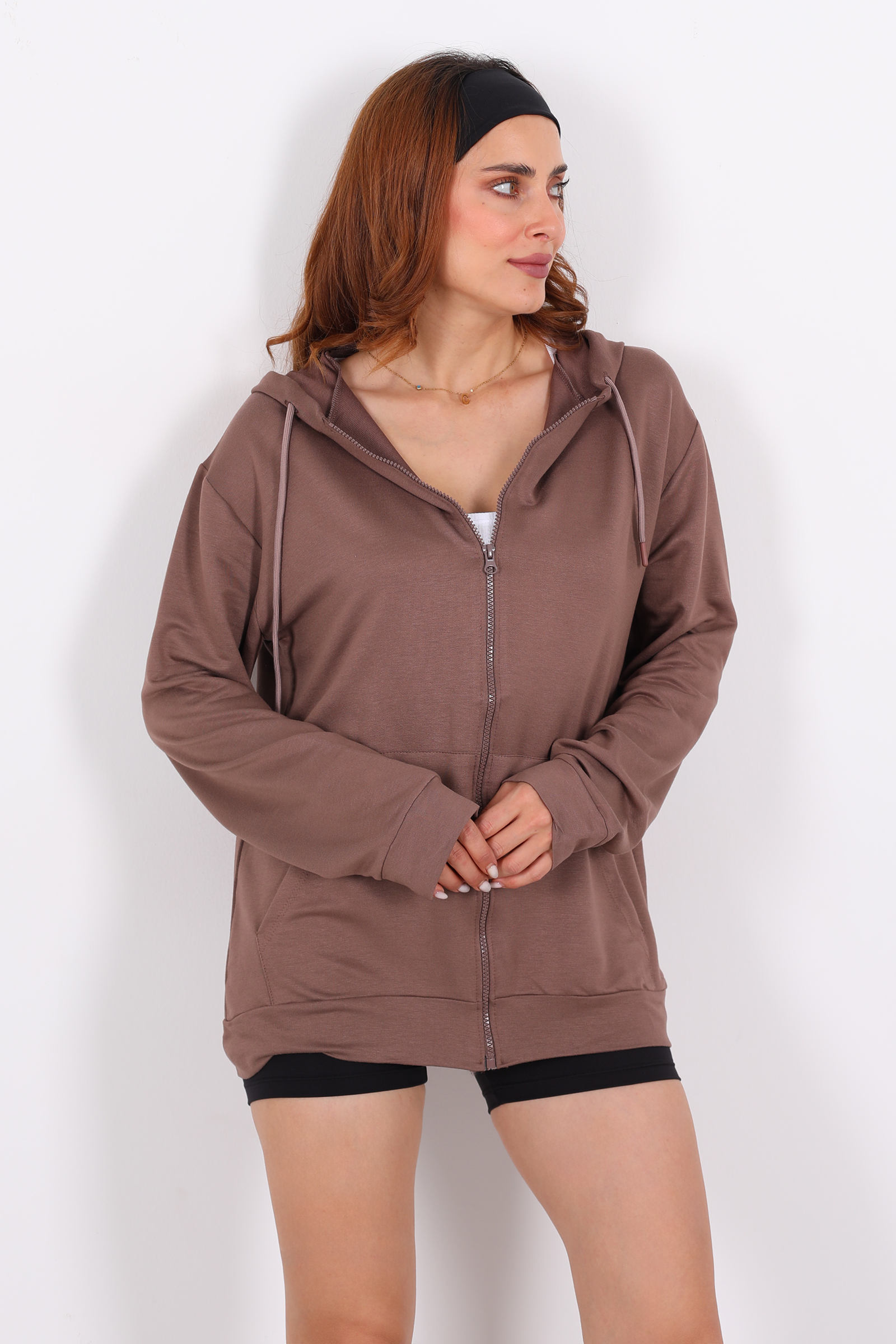 Doğanın sıcak tonlarında bir konfor deneyimi: bu kahverengi modal sweatshirt, zarif rengi ve fonksiyonel detaylarıyla her tarza hitap ediyor. Kapüşon kısmındaki fermuar ve gevşek kalıbı, hareket özgürlüğü isteyenler için ideal bir çözüm sunar. Hem kadın hem erkek kullanıcılar için tasarlanmış unisex kesimi sayesinde gardırobunuzun çok yönlü bir parçası haline gelir.Moda ile gündelik rahatlığı harmanlayan bu üst, kafe buluşmalarından şehir gezilerine, hafta sonu kaçamaklarından ev keyfine kadar pek çok durumda stilinizi tamamlar. Kahverengi tonunun sıcaklığı, krem, bej ya da nötr tonlarla birlikte mükemmel uyum yaratır.