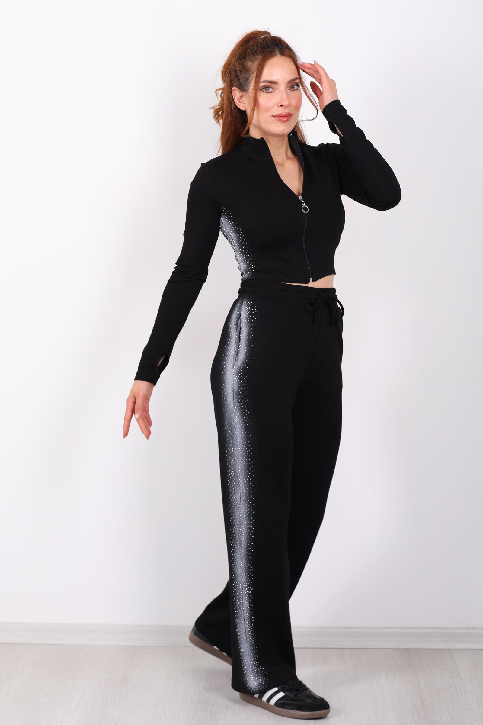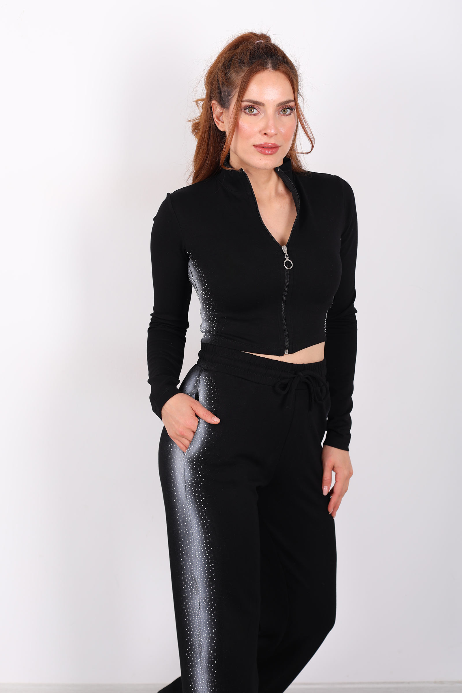 Fermuarlı Parmak Geçirmeli Siyah Kadın Taşlı Takım