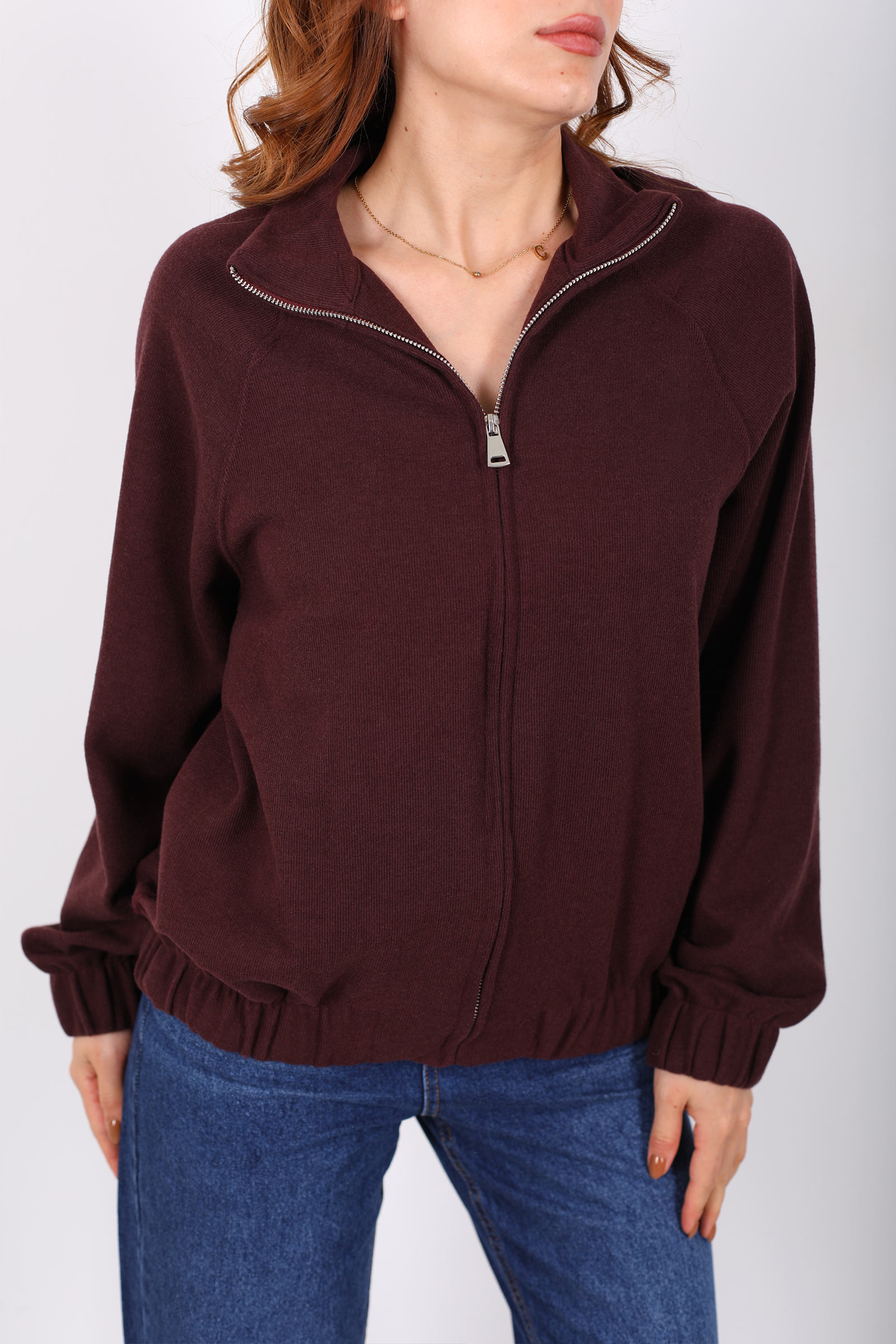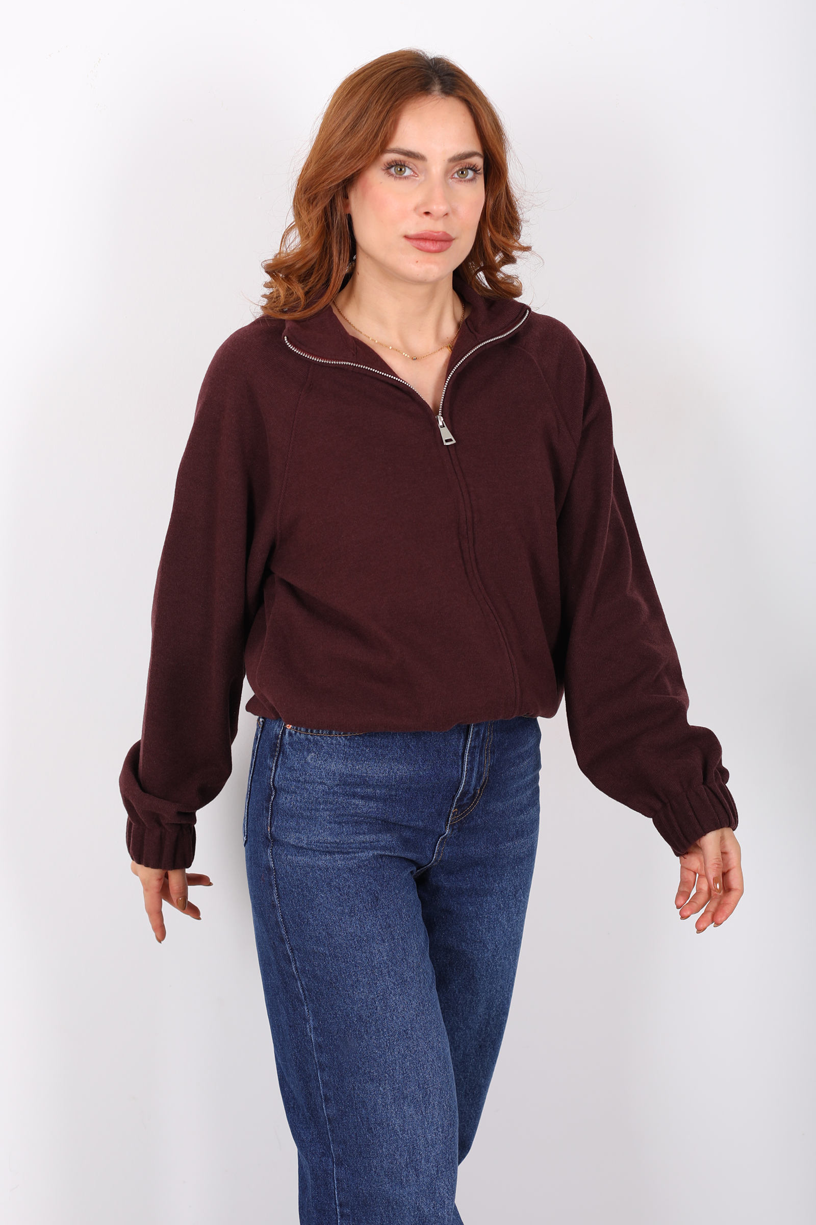 Fermuarlı Selanik Mürdüm Kadın Sweat