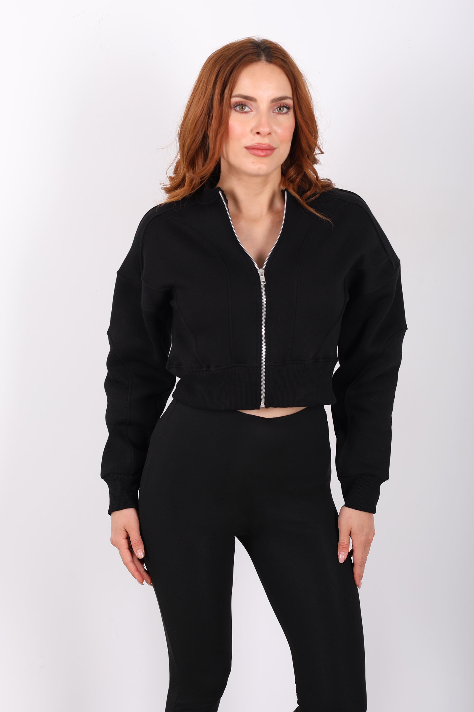 Fermuarlı Siyah Kadın Parçalı Sweat