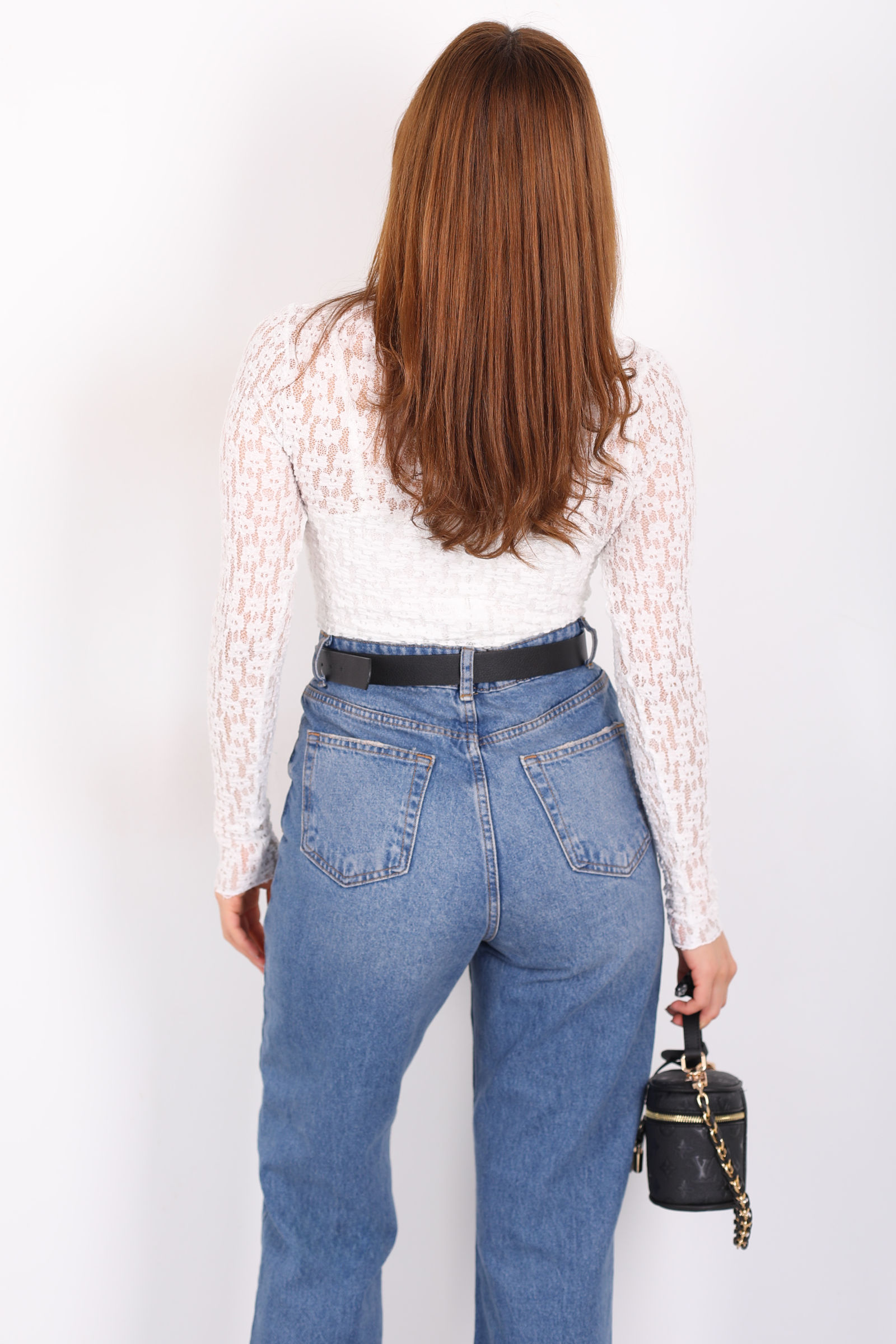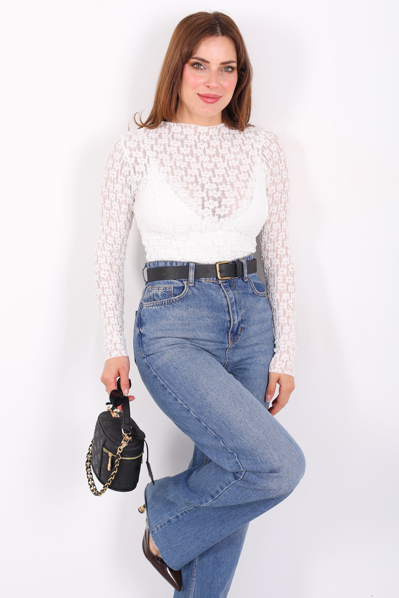 Geniş Yaka Çiçek Dantel Beyaz Kadın Bluz