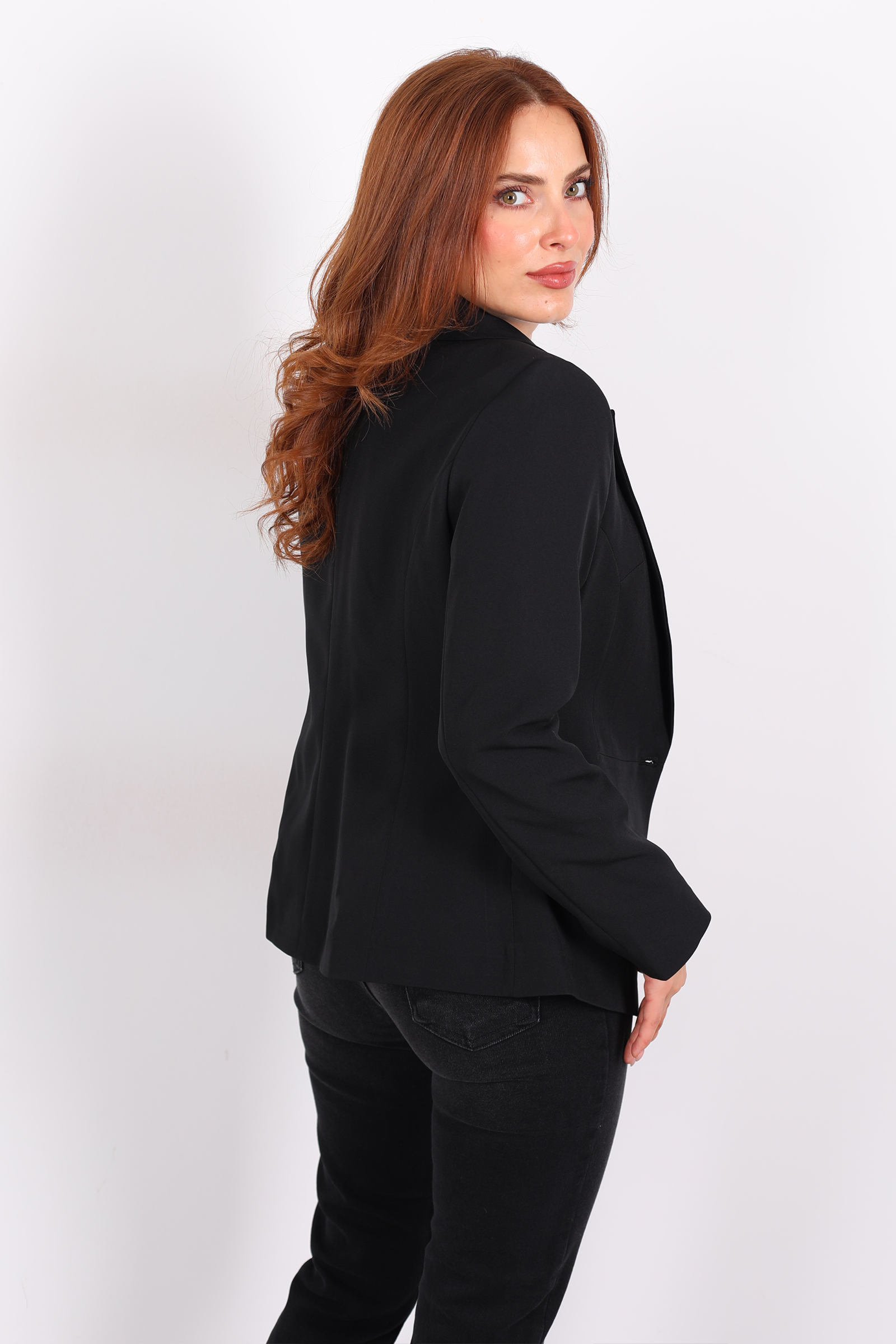 Siyahın zamansız ciddiliği ile altın düğmelerin parlak zarafeti bir araya gelerek bu blazer ceketle güçlü ama sofistike bir duruş yaratıyor. Ceket, hem ofiste hem de akşam şıklığında fark yaratmak isteyen kadınlar için ideal bir parça.Ceketin kumaşı muhtemelen orta ağırlıkta, dokulu bir dokuma bu şekilde hem formu korunur hem de uzun süreli kullanımda dayanıklılık sağlar.