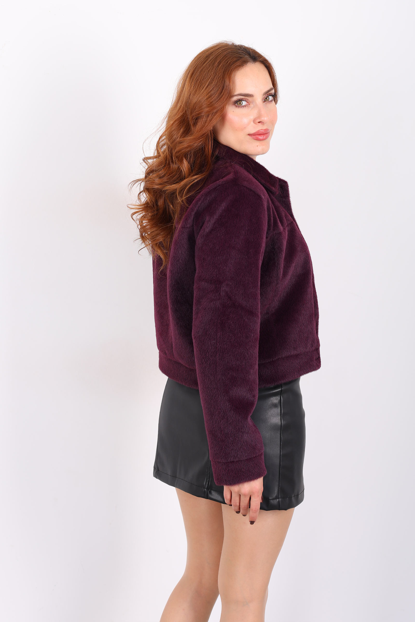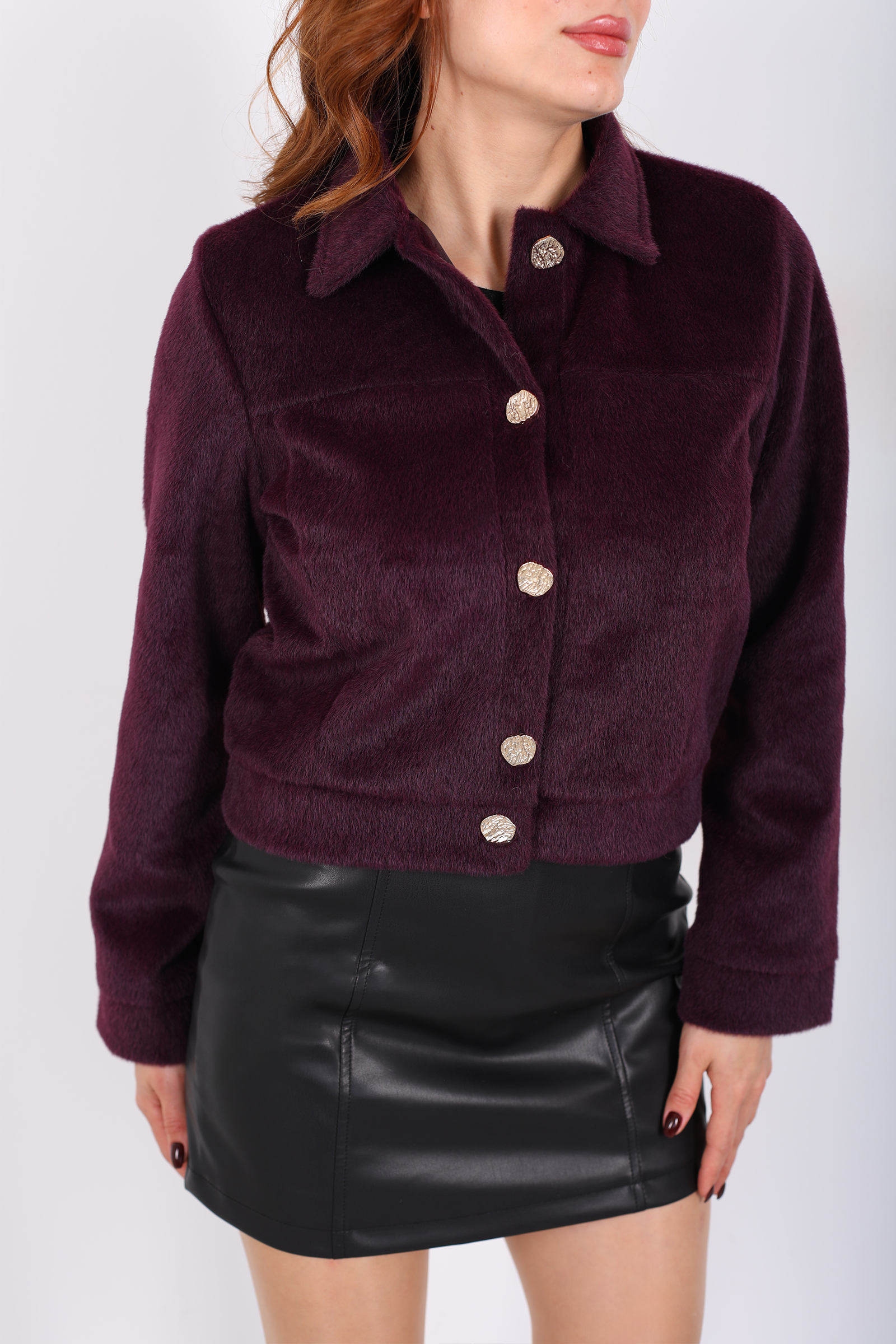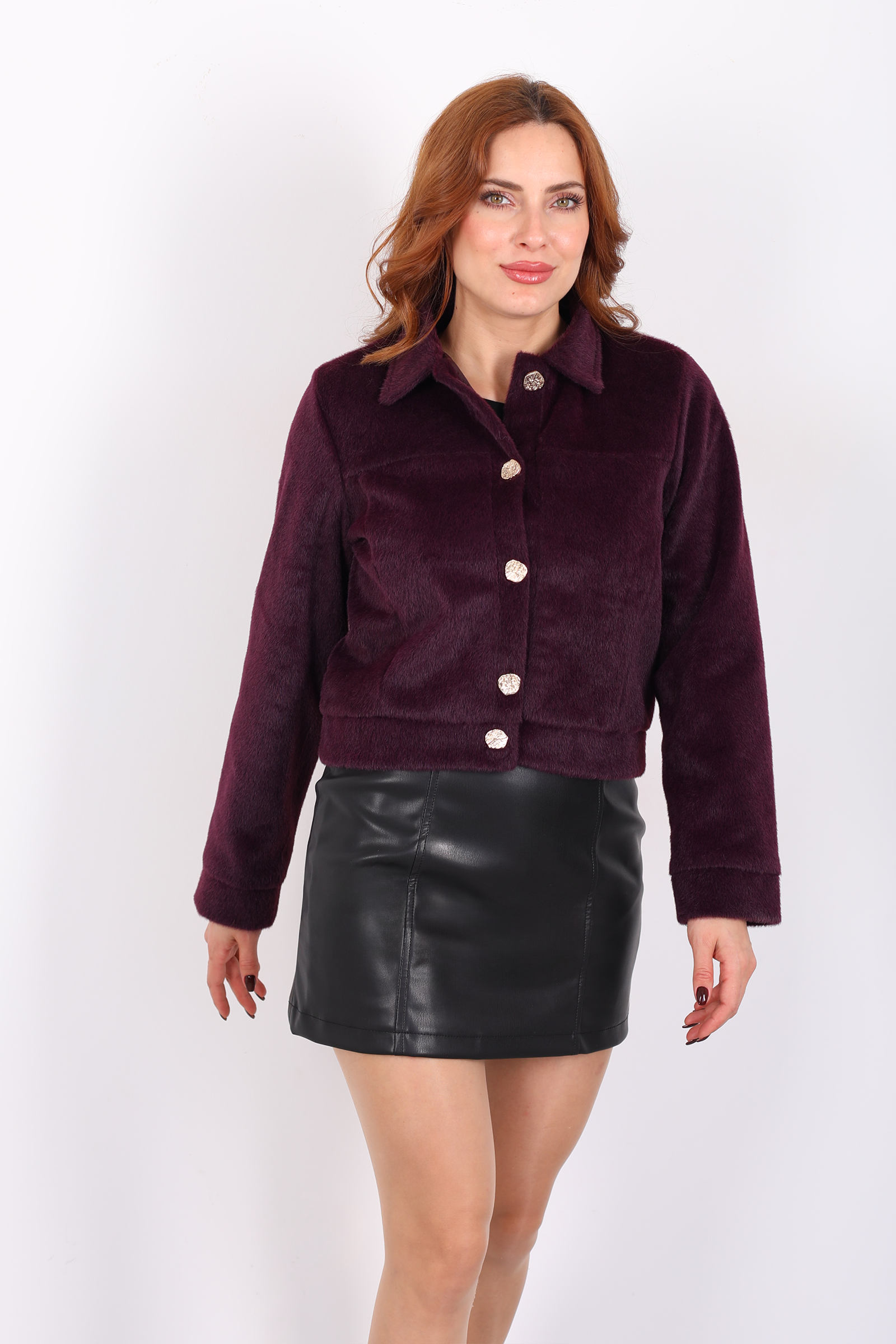 Gold Düğmeli Tay Tüyü Mürdüm Kadın Ceket