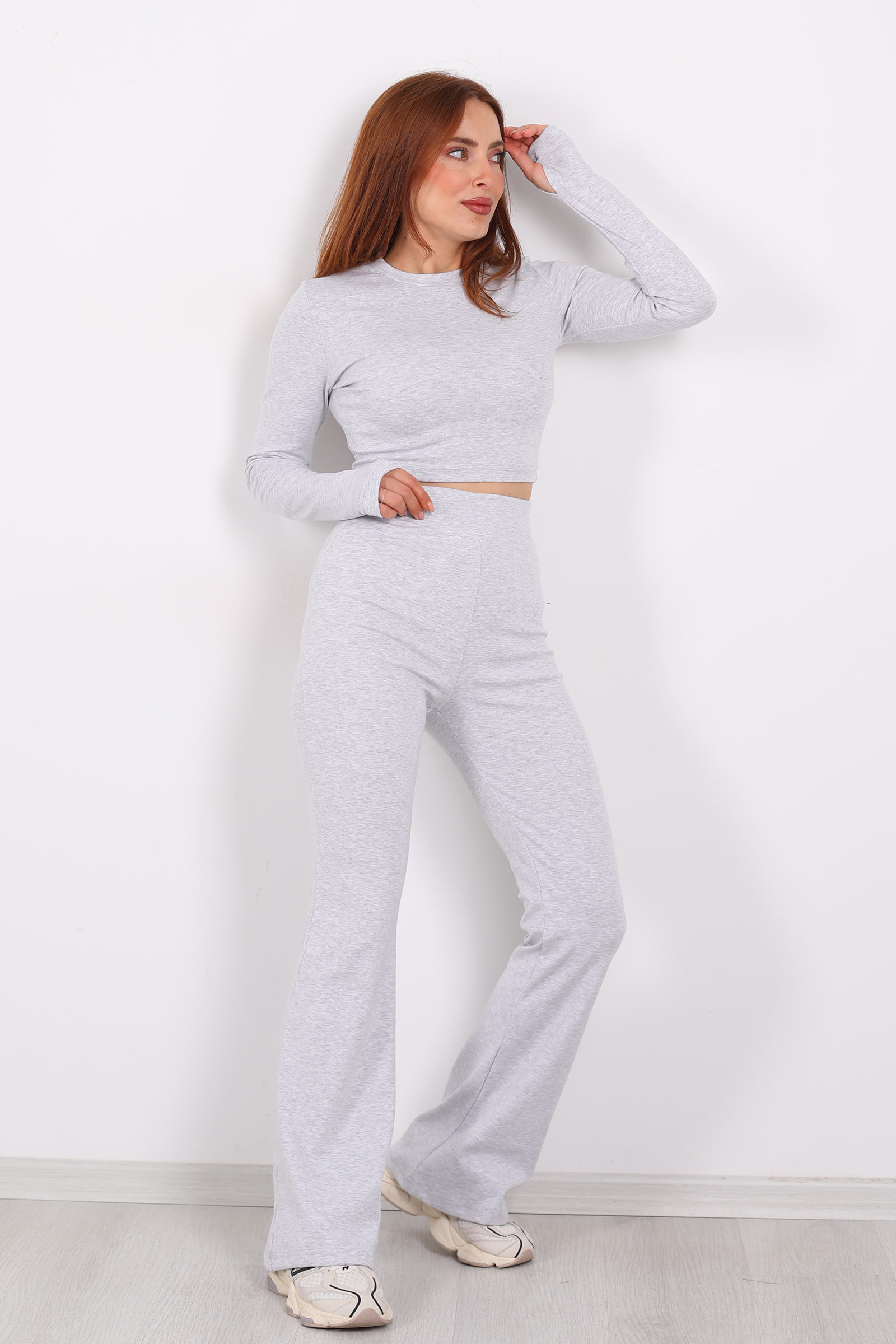 Nötr ve modern bir hava yakalamak isteyenler için gri tonlu bu crop tayt takımı, hem spor hem gündelik şıklığı bir araya getiriyor. Hafif ve esnek kumaşı sayesinde hareket halindeyken maksimum konfor sağlar; üstün nefes alabilirlik ile gün boyu cildinize dost bir his sunar.