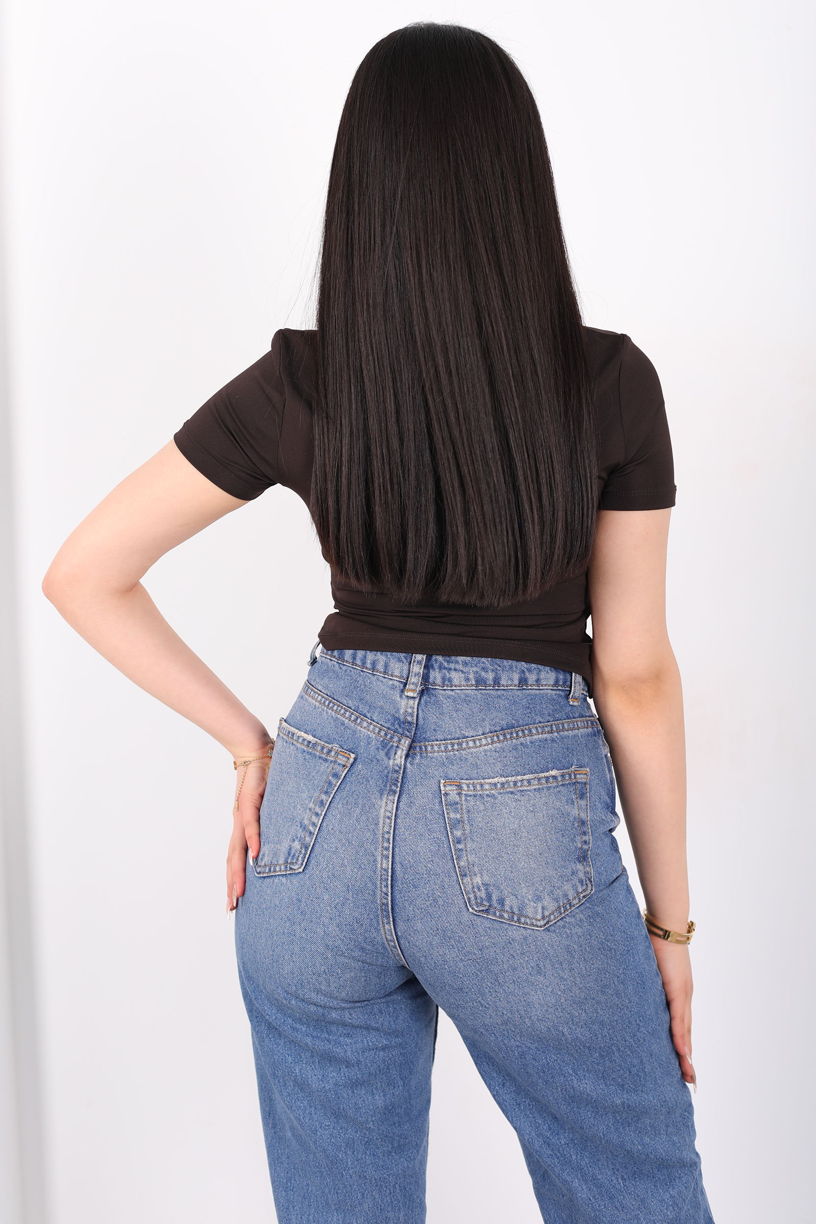 Boyundan Geçirmeli Kadın Acı Kahve Crop Top