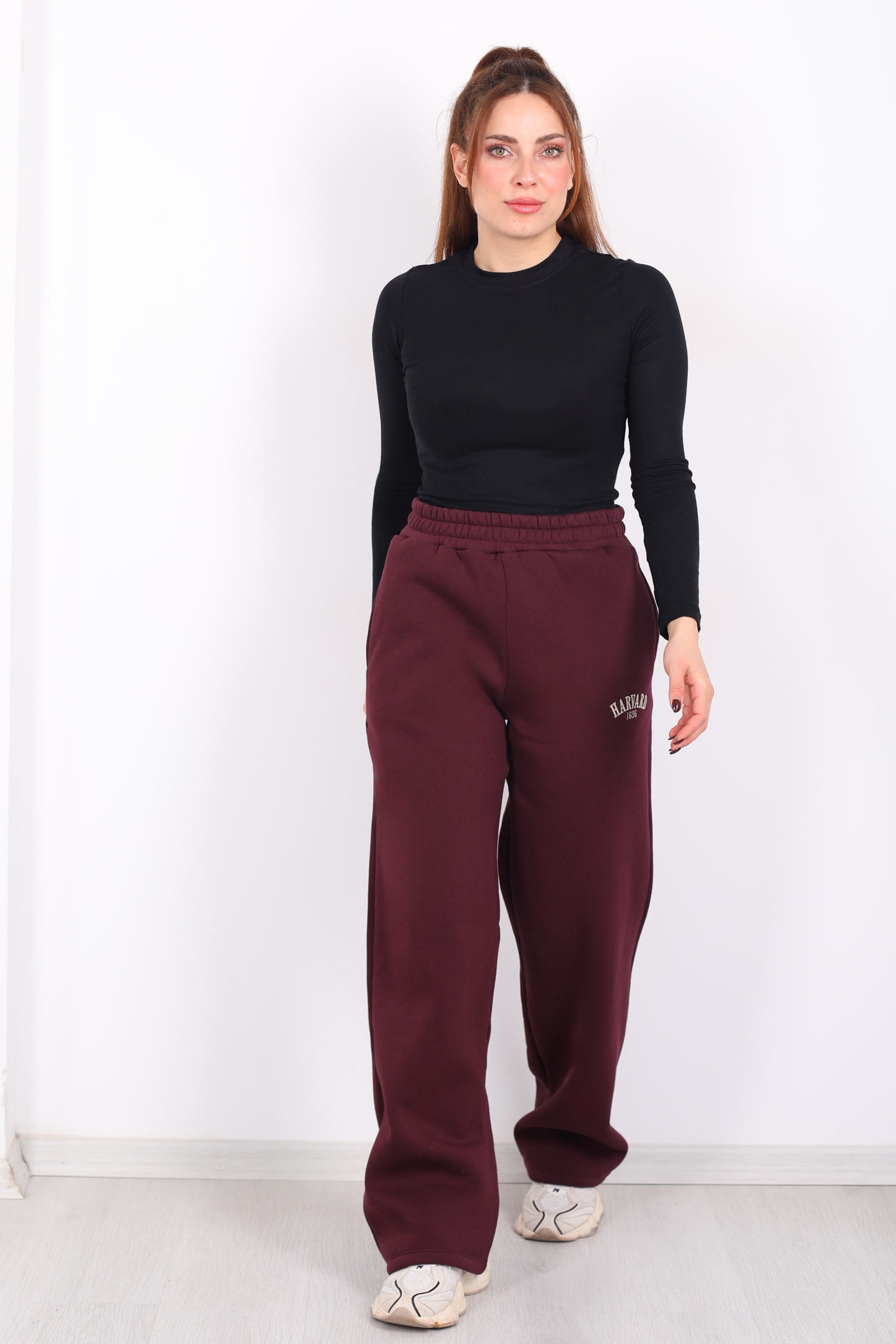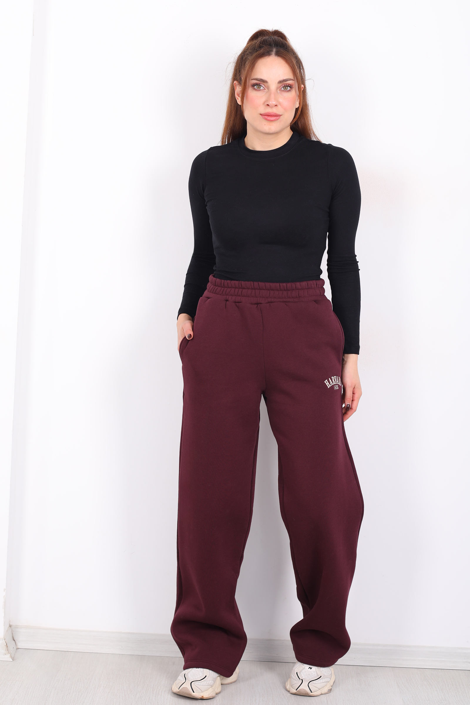Bordo rengin derin sıcaklığını spor giyimin modern ritmiyle birleştiren bu geniş paça eşofman altı, Harvard baskısıyla sade sportif tarza dikkat çekici bir vurgu ekliyor. Üç iplik kumaşın yumuşak yapısı, sabah kahvesinden akşam yürüyüşlerine kadar gün boyu rahatlık sağlar; geniş paça kesimi ise adımlarınıza zarif bir akış kazandırır. Bel ve paça lastikleri, hareket ederken konforu korur; fonksiyonel yan cepler pratik bir dokunuş sunar. Minimal çizgide ama etkileyici bir duruş arayanlar için ideal bir günlük seçim.