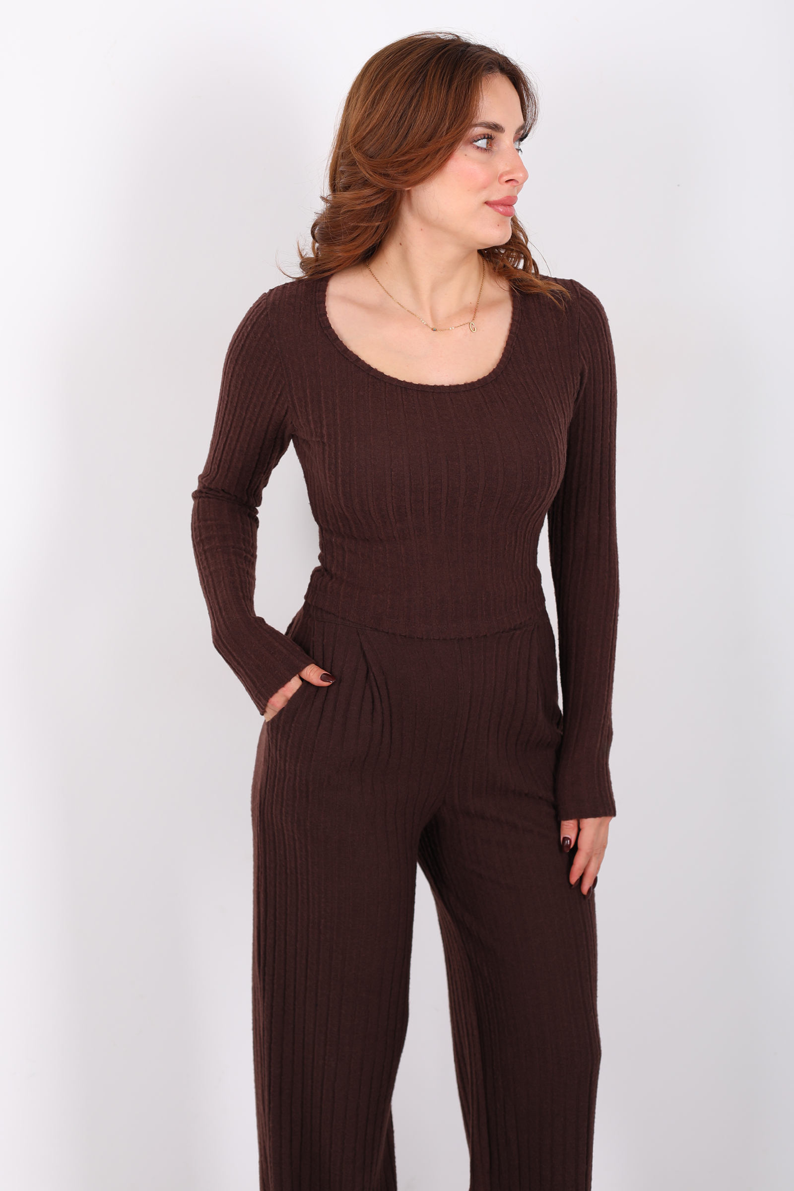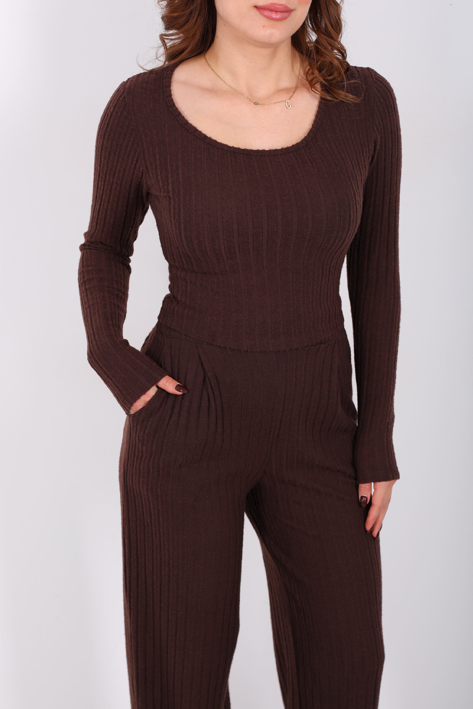 Günün her anına uyum sağlayan Havuz Yaka Kendinden Fitilli Acı Kahve Kadın Pantolon Takım, rahatlığı estetikle buluşturan stil dolu bir seçenektir. Sıcak acı kahve tonu, hareketli ve dinamik tasarım detaylarıyla birleşerek gardırobunuza doğal bir zarafet katar. Üst parçanın havuz yaka kesimi, boyun hattını nazikçe çerçeveler ve modern bir duruş sağlar. Alt parçanın kendinden fitilli dokusu ise konforlu bir kullanım sunarken tasarıma özgün bir karakter katar.