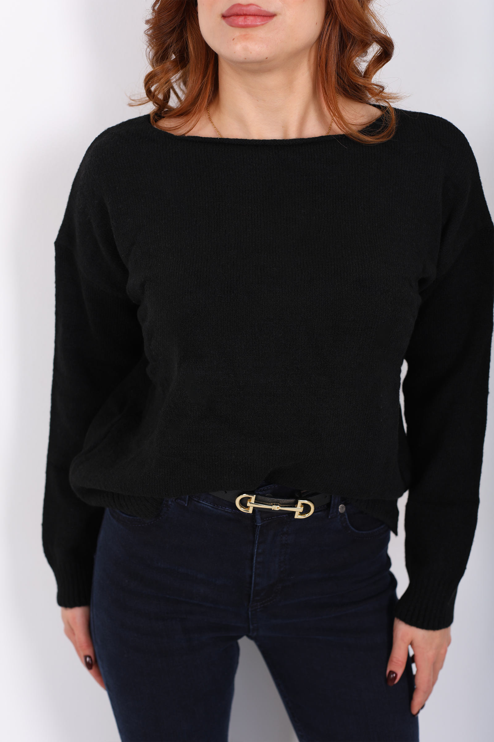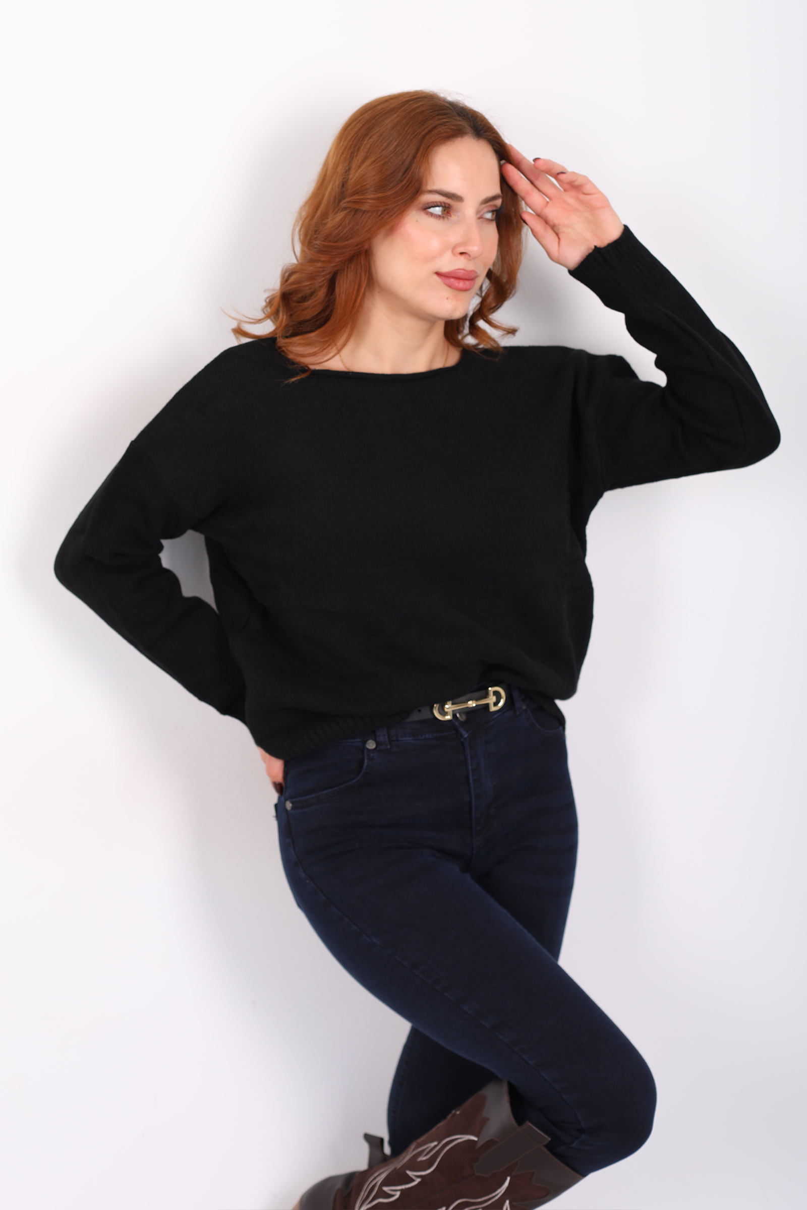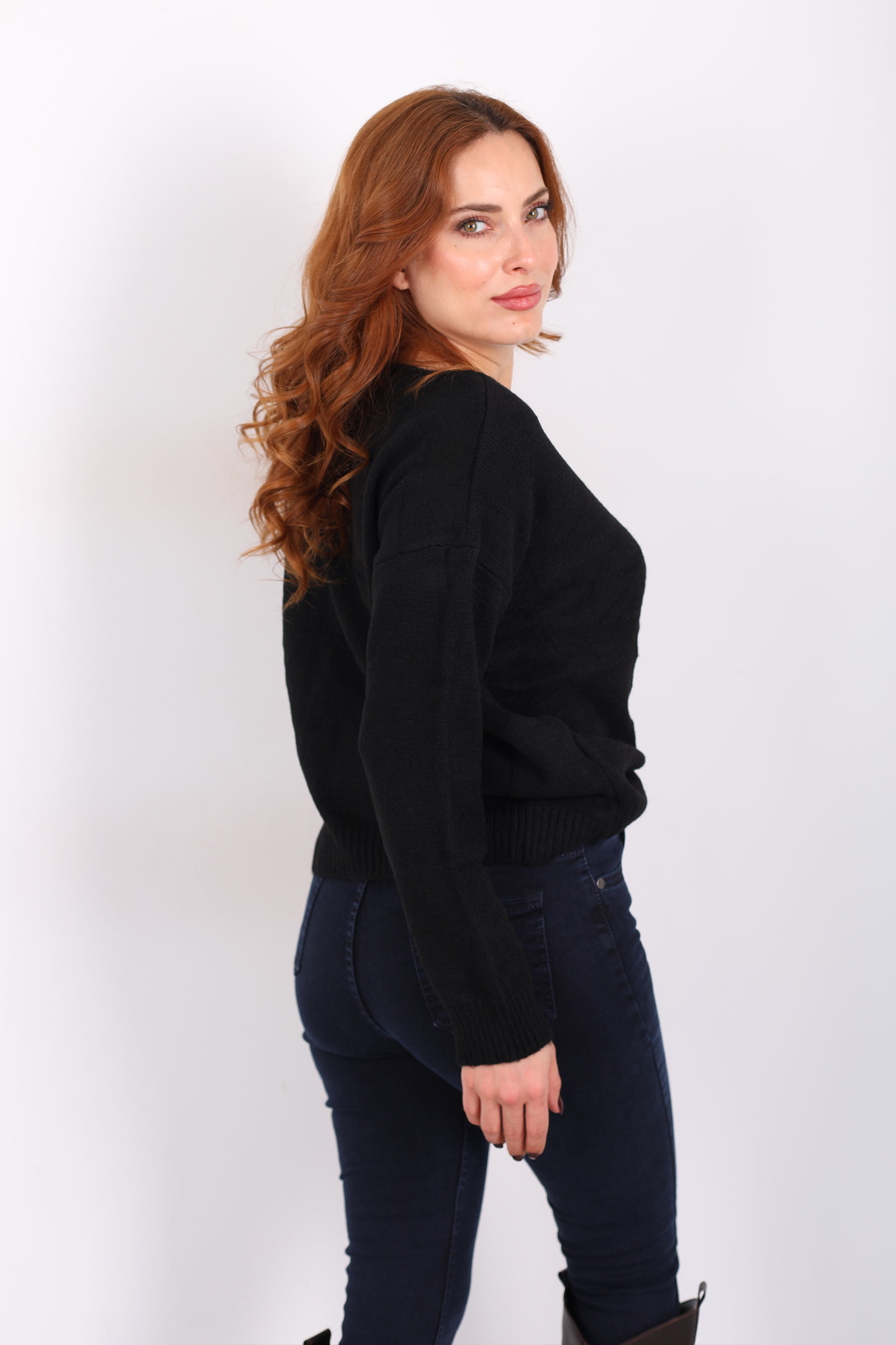 Dik Yaka Dikiş Detaylı Siyah Kadın Triko Kazak