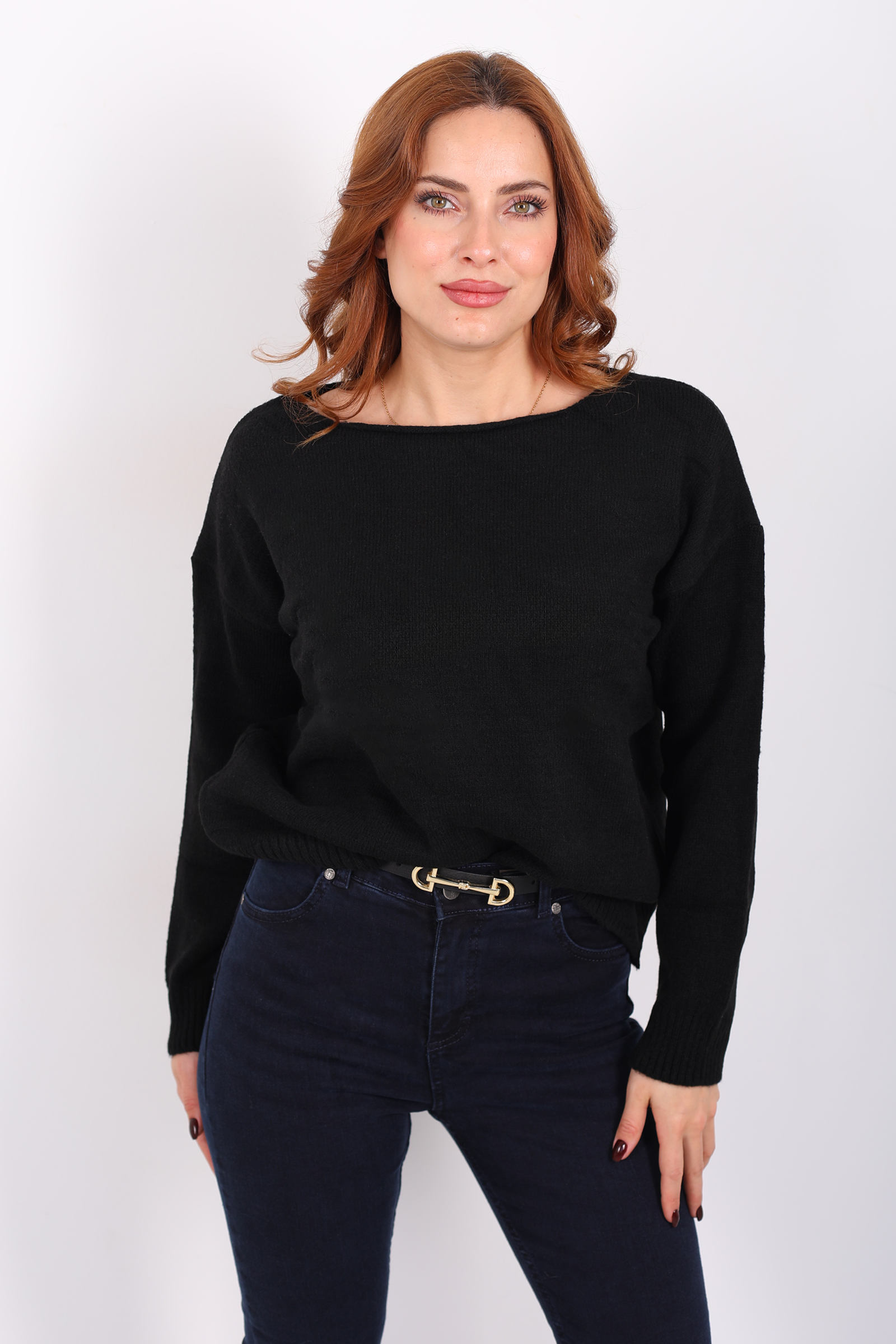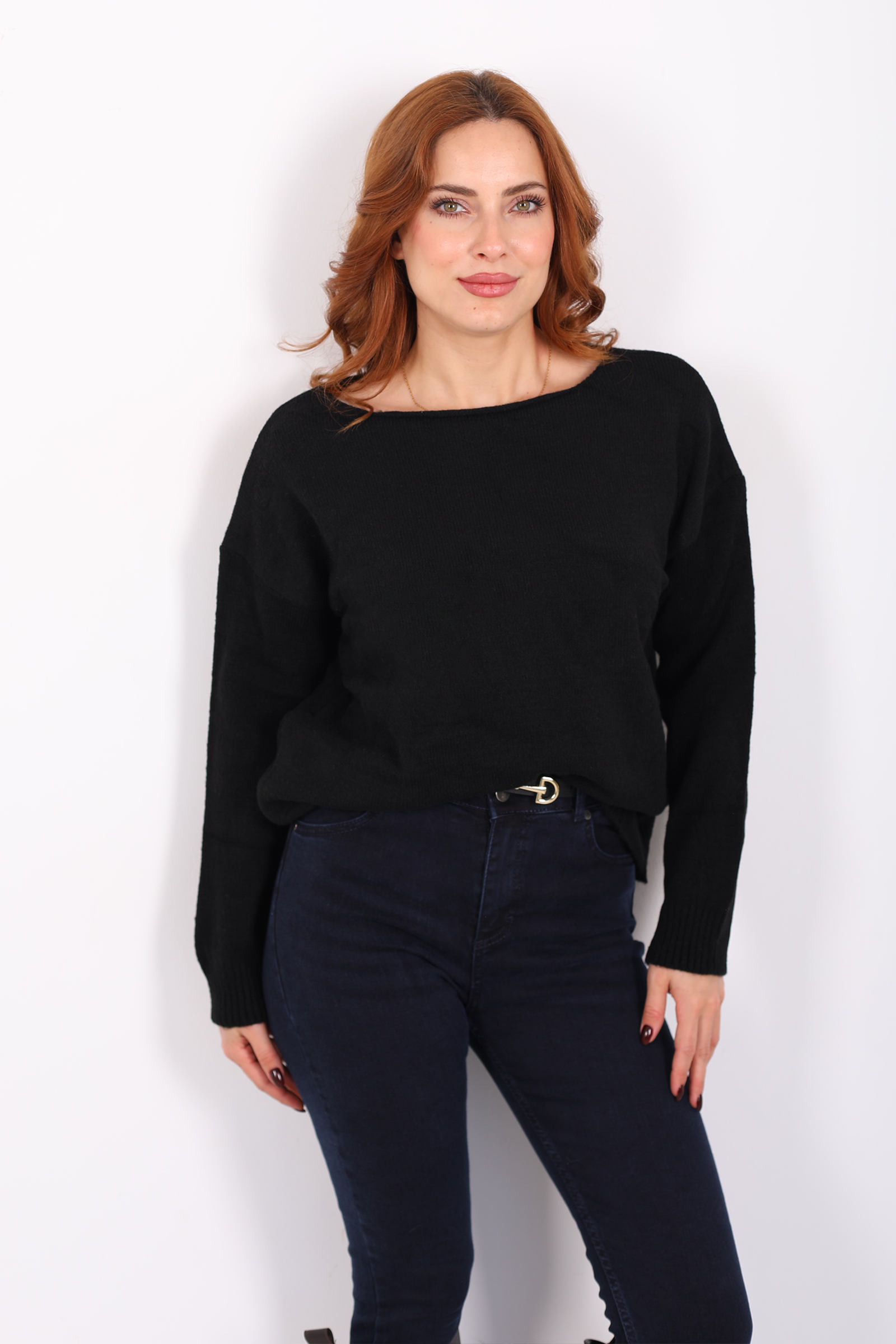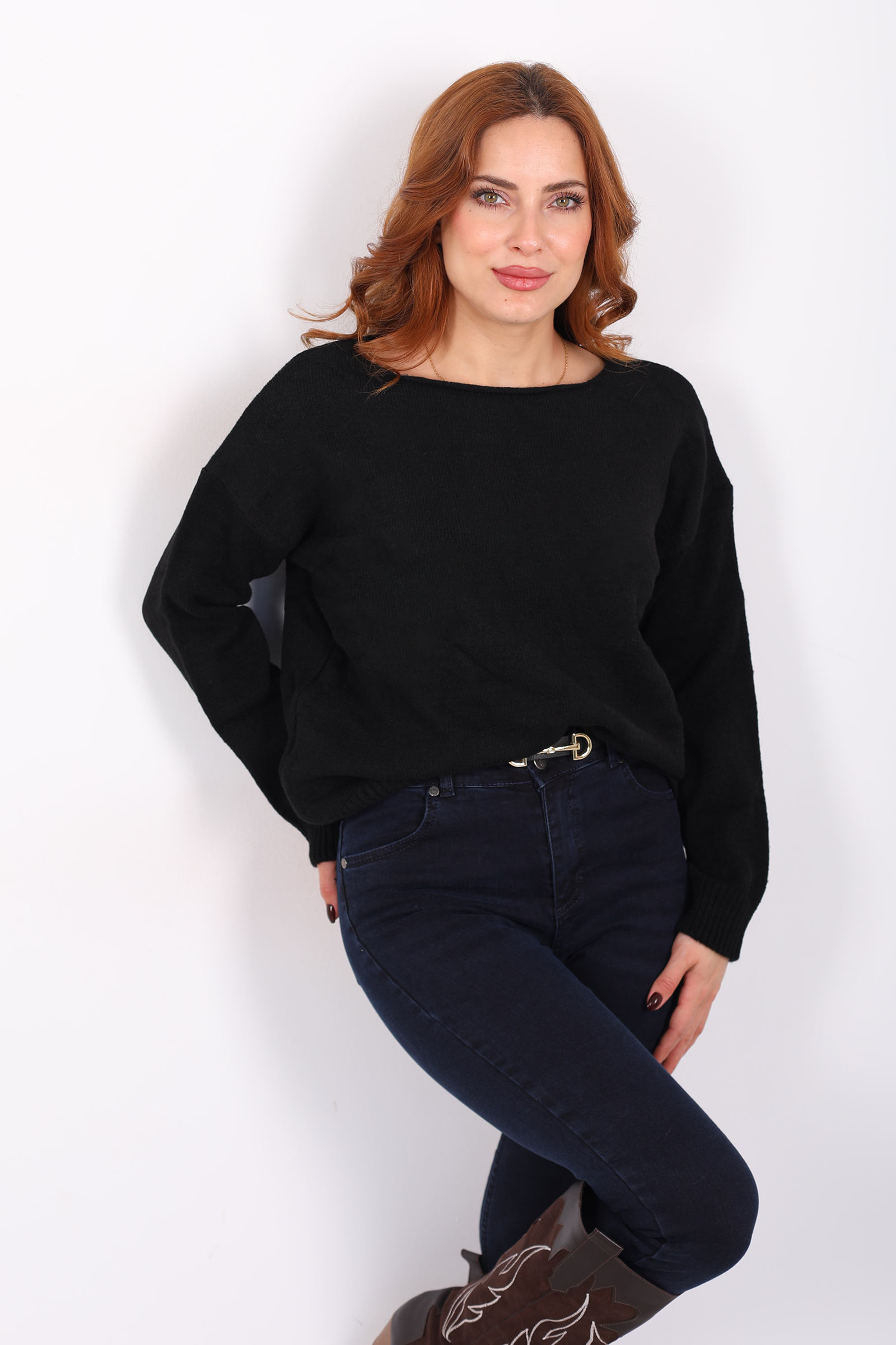 Dik Yaka Dikiş Detaylı Siyah Kadın Triko Kazak