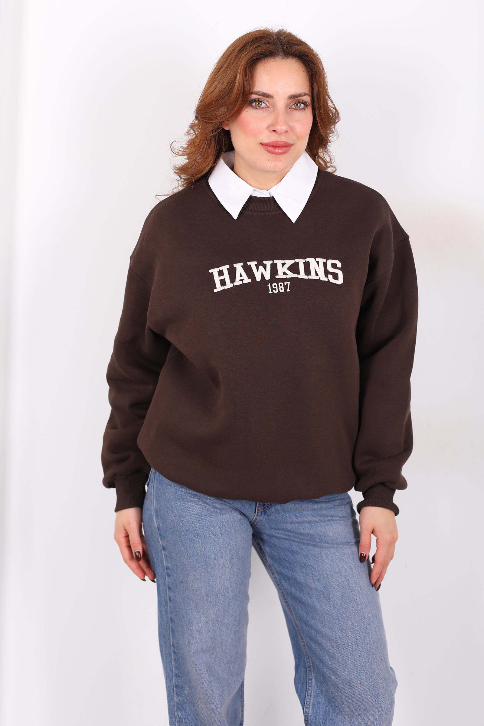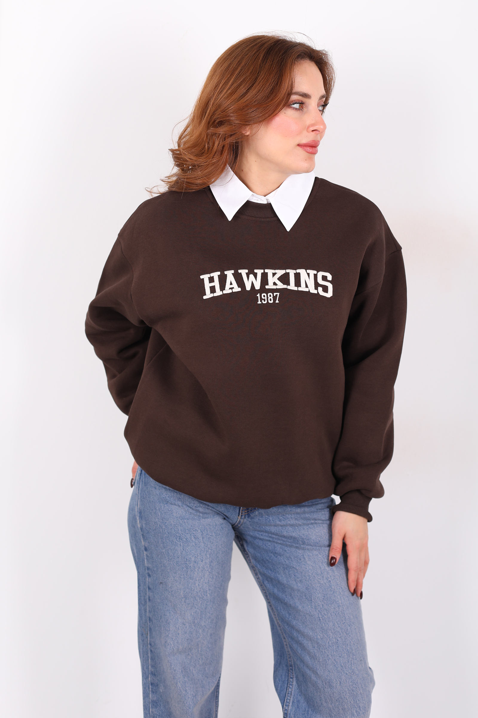 Sıcak tonların sakinliğiyle spor stilini bir araya getiren bu acı kahve tonlu Hawkins baskılı sweatshirt, gardırobunuza güçlü bir karakter katmak için tasarlandı. “Üç iplik” kumaş yapısı, daha yoğun ve dayanıklı doku sağlar; böylece hem mevsim geçişlerinde hem de soğuk günlerde stilinizi korur.Acı kahve renginin nötr ama dikkat çekici ifadesi, jean, eşofman ya da rahat pantolonlarla gün boyu uyum sağlar.