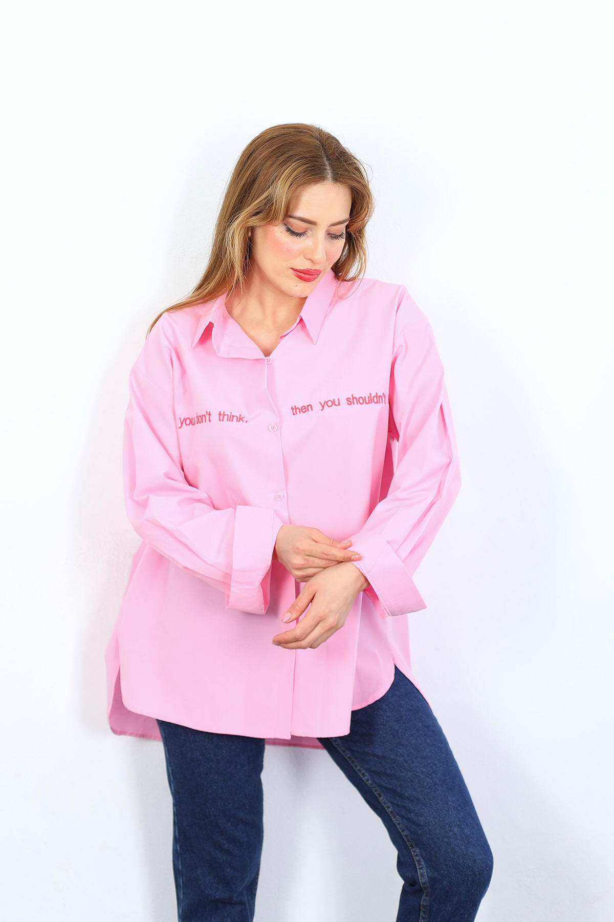 Günlük stilinize enerjik bir dokunuş katmak isteyenler için ideal olan bu pembe gömlek, "If You Don't" yazı nakışıyla kendini ifade ediyor. Oversize kesimi ve pamuk-polyamid karışımı kumaşıyla rahat bir kullanım sunarken, modern tasarımıyla da dikkatleri üzerinize çekiyor. Sıcak yaz günlerinde ferah bir seçenek arayanlar için mükemmel bir tercih.Jean pantolon veya şortlarla rahat ve şık bir kombin oluşturabilirsiniz.