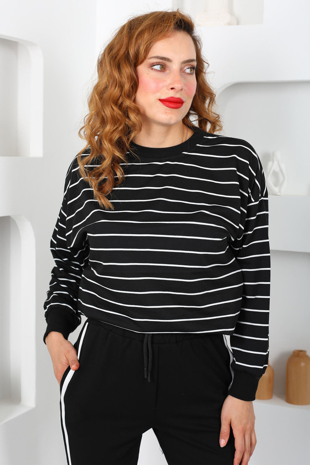 Bisiklet Yaka Oversize Siyah Kadın Triko Crop