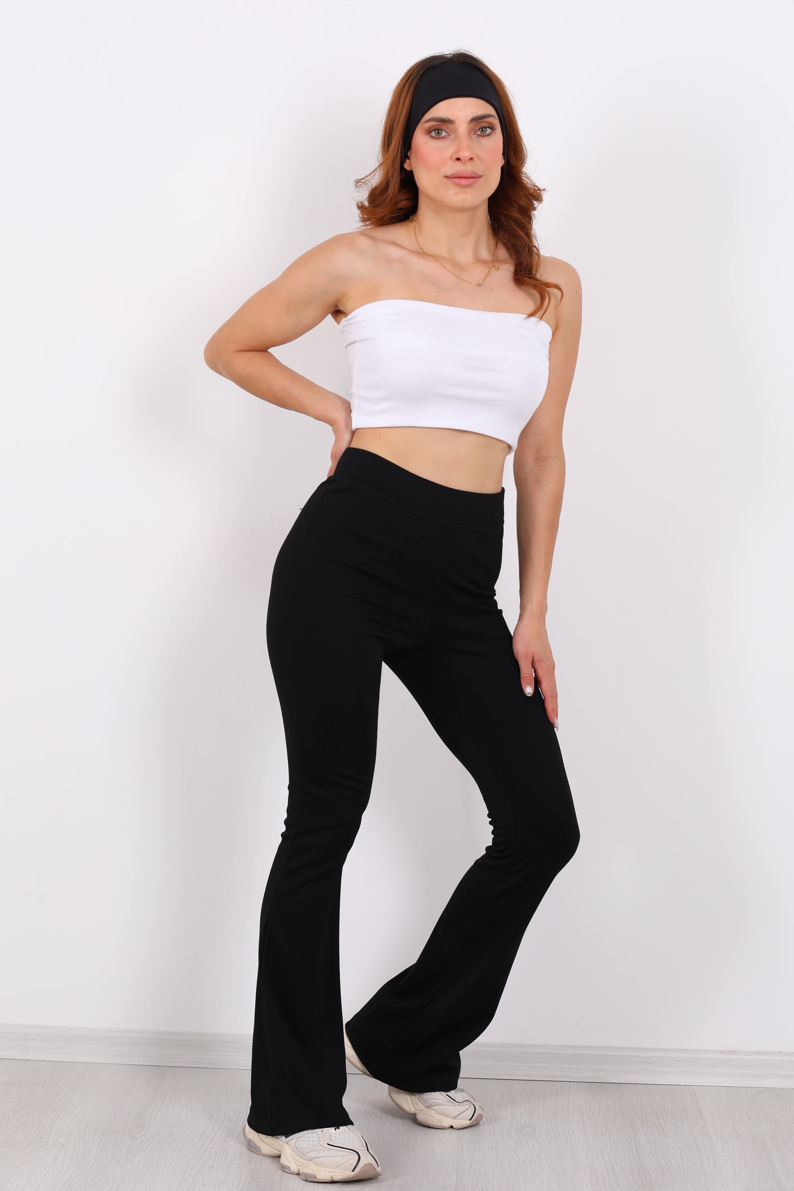 Narin kemer detayına ve İspanyol paça kesimine sahip bu siyah tayt, gardırobunuza zarif ama dikkat çeken bir stil dokunuşu katıyor. Kumaşının pamuk içeriği yumuşak his vererek konfor sunarken, paçanın dahil ettiği döküm hâli tarzınıza okunaklı bir hava katıyor. Gerek sakin şehir günlerinde gerek akşam buluşmalarında kullanabileceğiniz bu model, hem rahatlığı hem estetiği birlikte sunacak şekilde tasarlanmış.